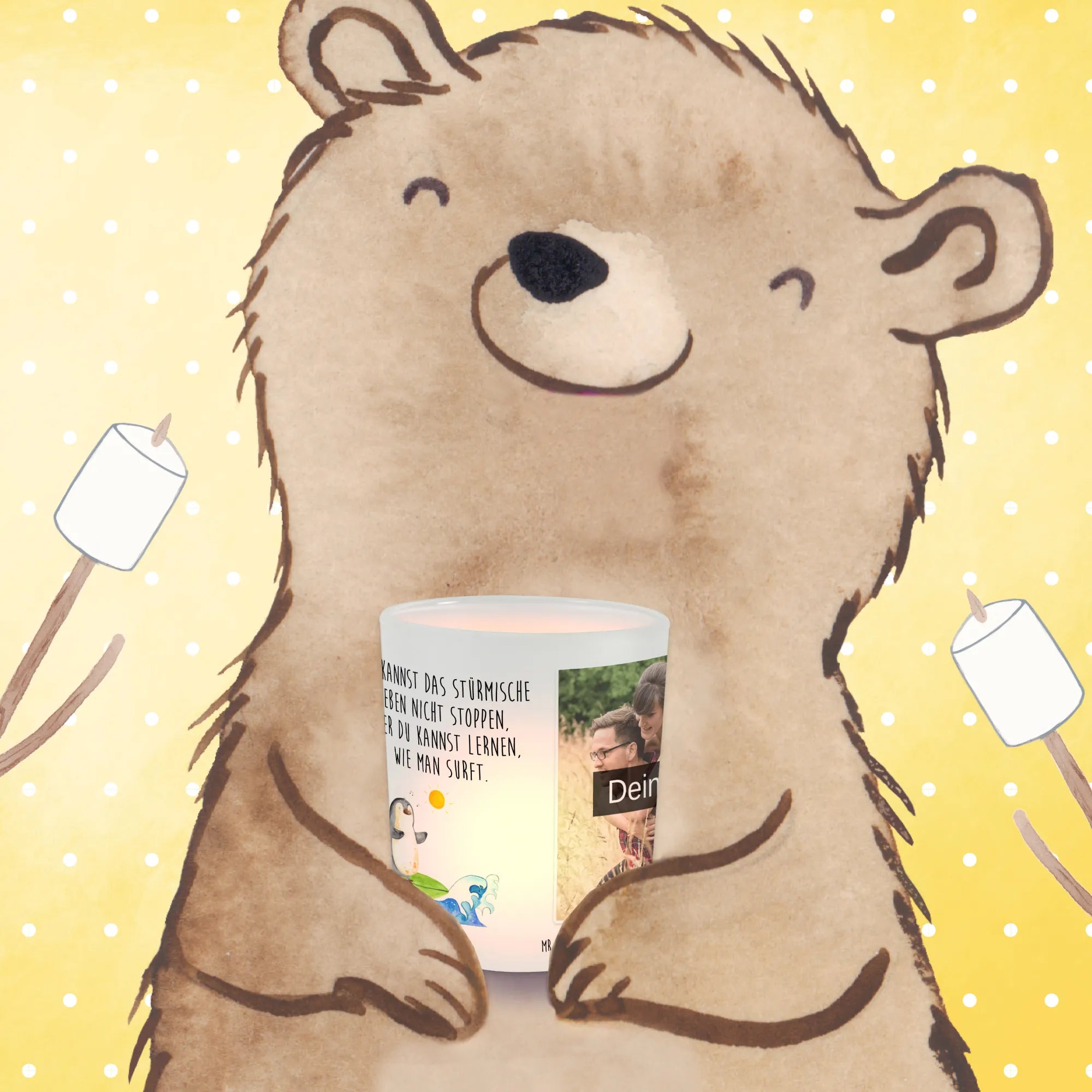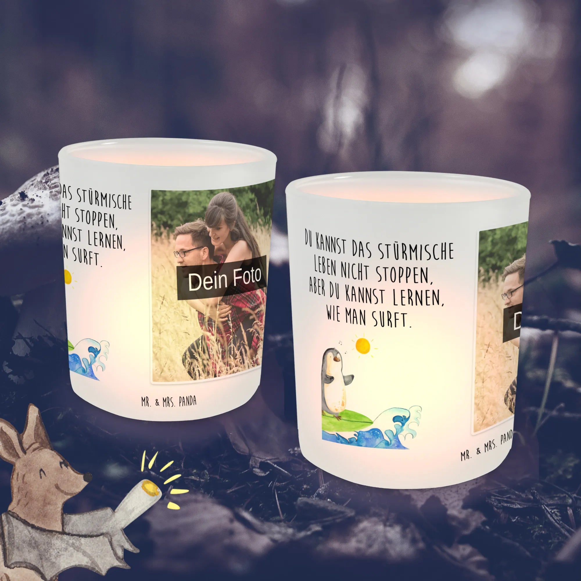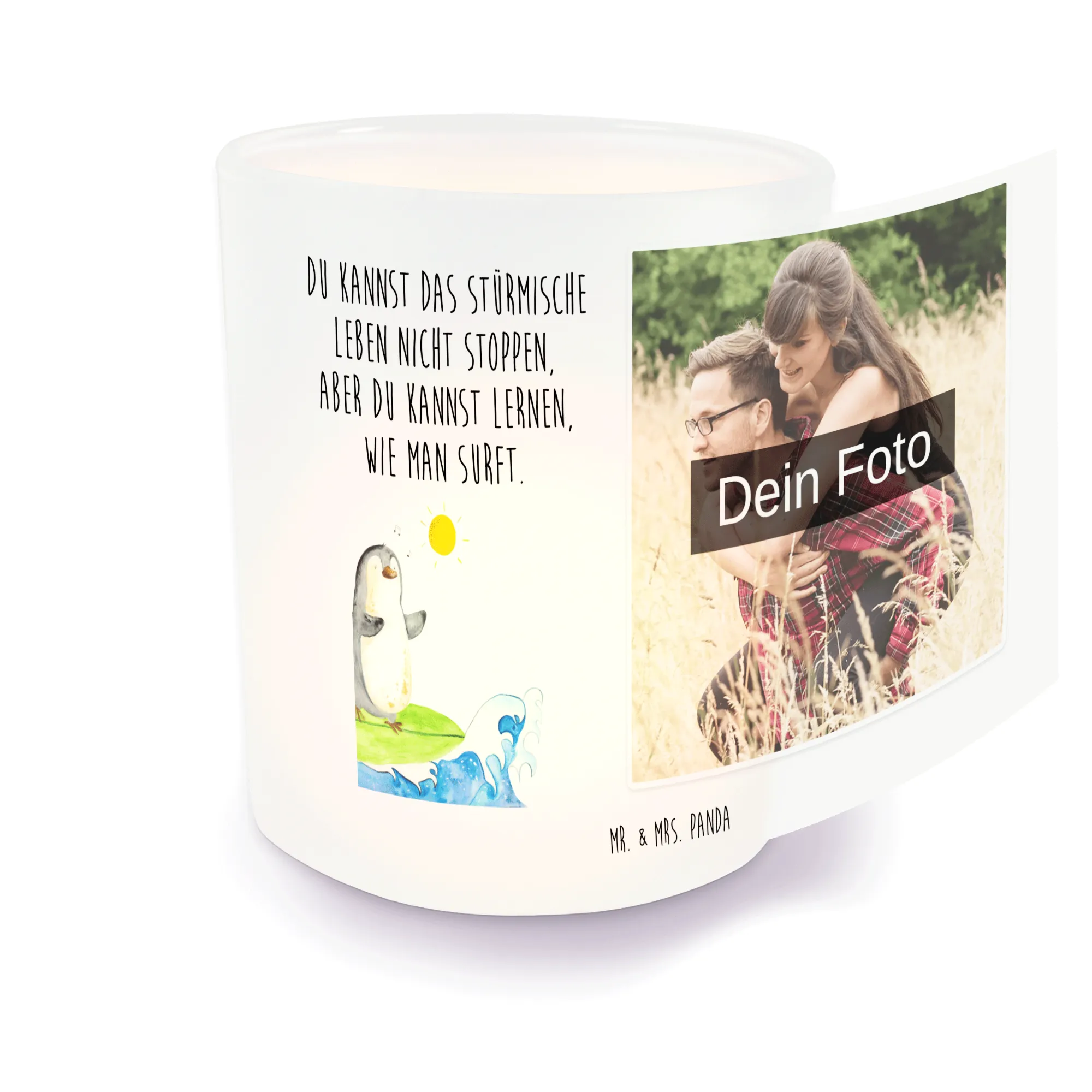 Personalisiertes Foto Windlicht Pinguin Surfer