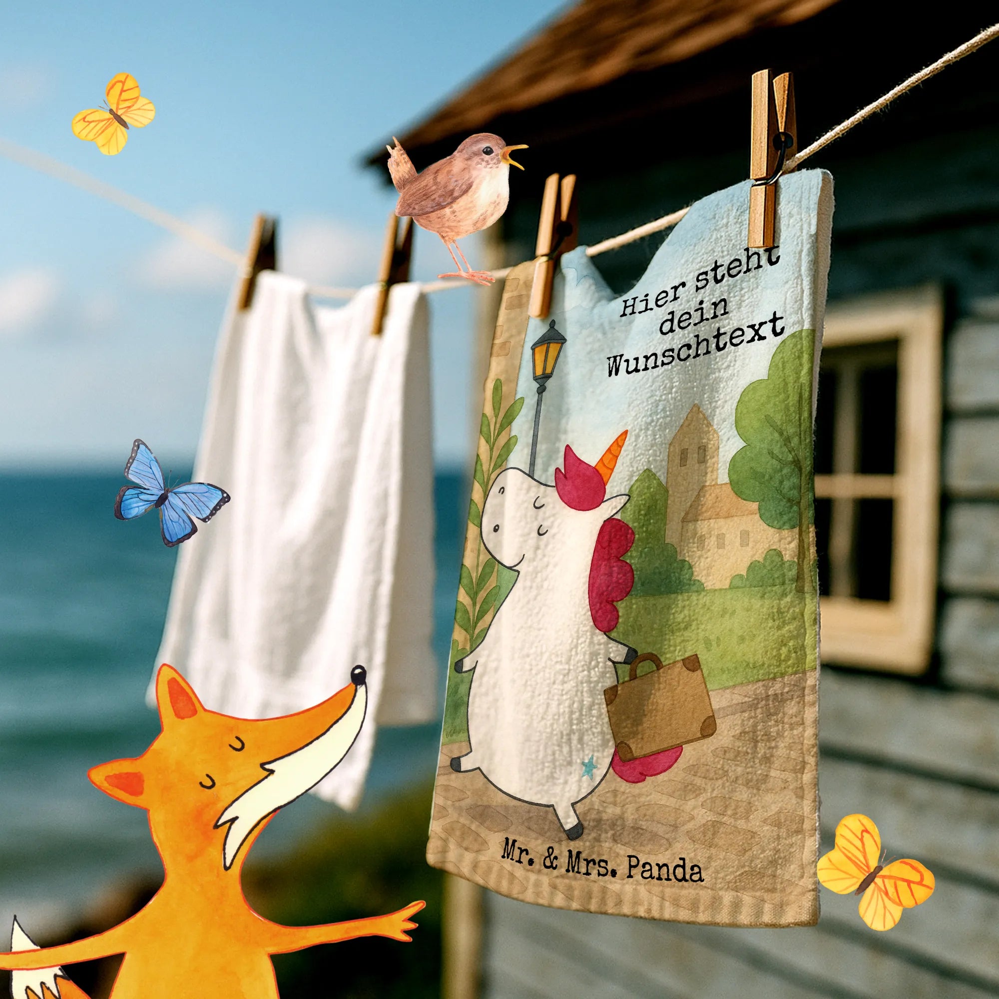 Personalisiertes Gästehandtuch Einhorn Koffer Design