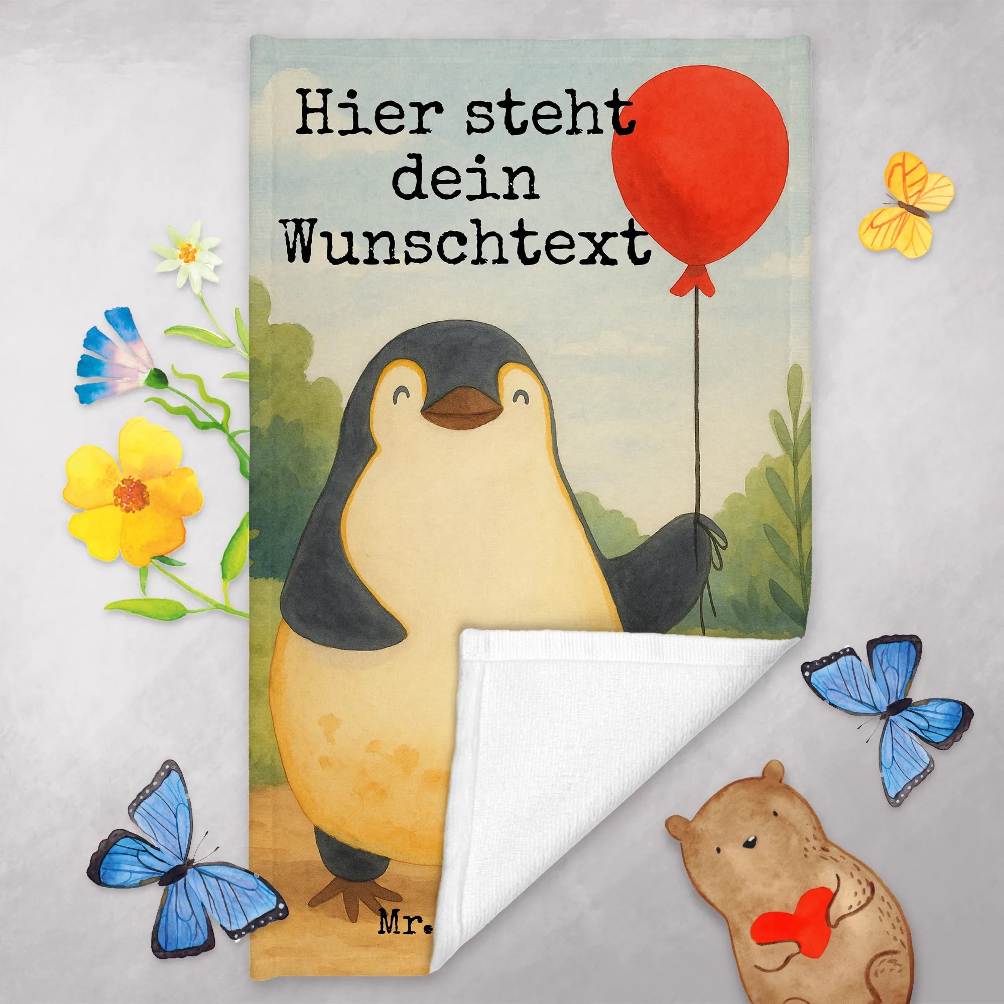 Personalisiertes Gästehandtuch Pinguin Luftballon Design