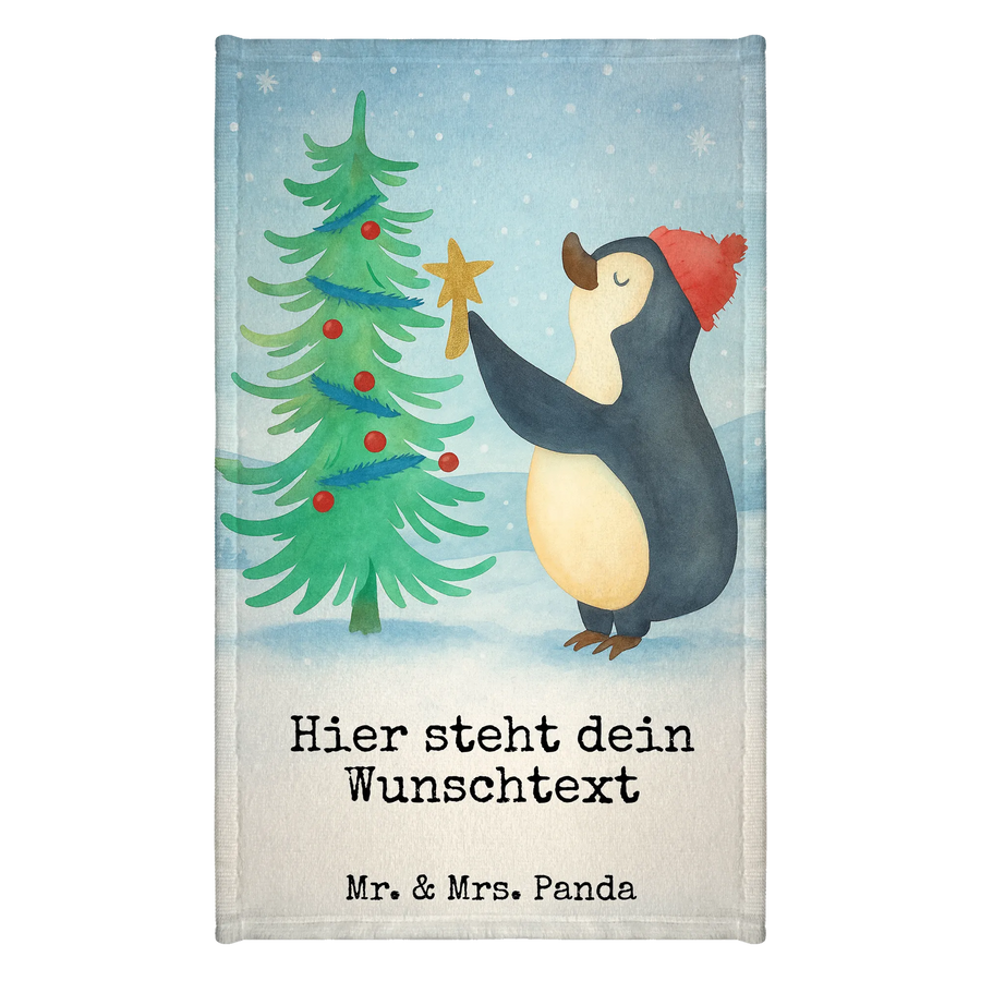 Personalisiertes Gästehandtuch Pinguin Weihnachtsbaum Design – Mr. & Mrs. Panda
