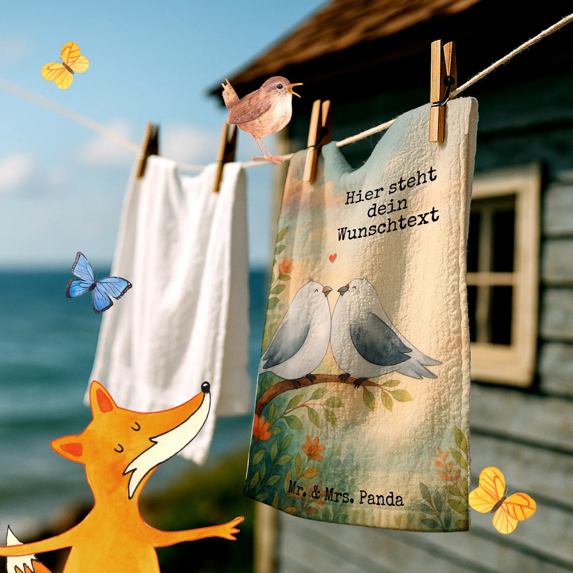 Personalisiertes Gästehandtuch Turteltauben Liebe Design