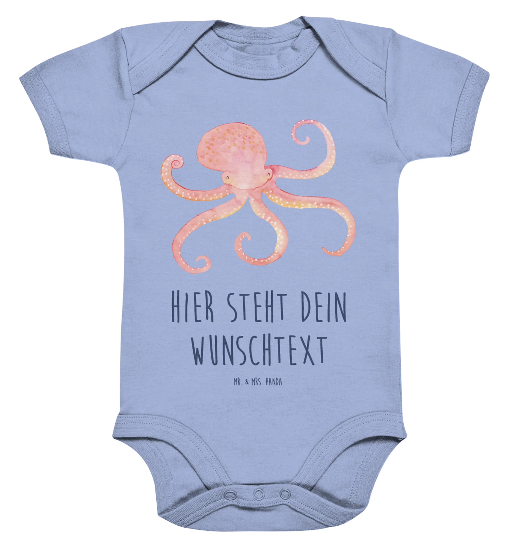 Der personalisierte Baby Body mit dem fröhlichen Tintenfisch-Motiv aus der bezaubernden Small World Kollektion von Mr. & Mrs. Panda ist der perfekte Begleiter für die kleinsten Abenteurer! In einem zarten Dusty Blue sorgt er nicht nur für einen stylischen Auftritt, sondern auch für ein Gefühl von Wohlbehagen, denn er besteht aus hochwertiger, ökologischer Baumwolle, die sanft zur Haut Deines Babys ist.
