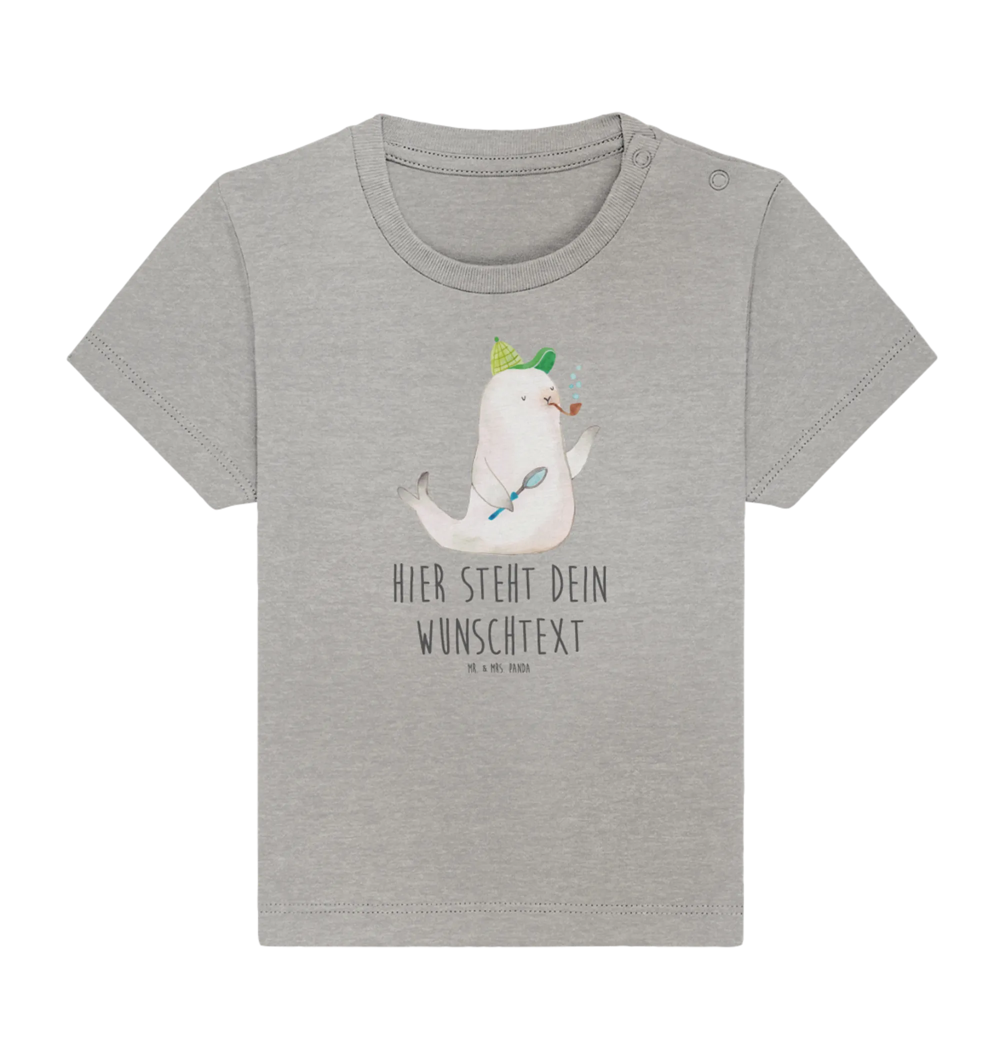 Personalized Baby Shirt seal sherlock - 12th - 18th month - Heather Grey