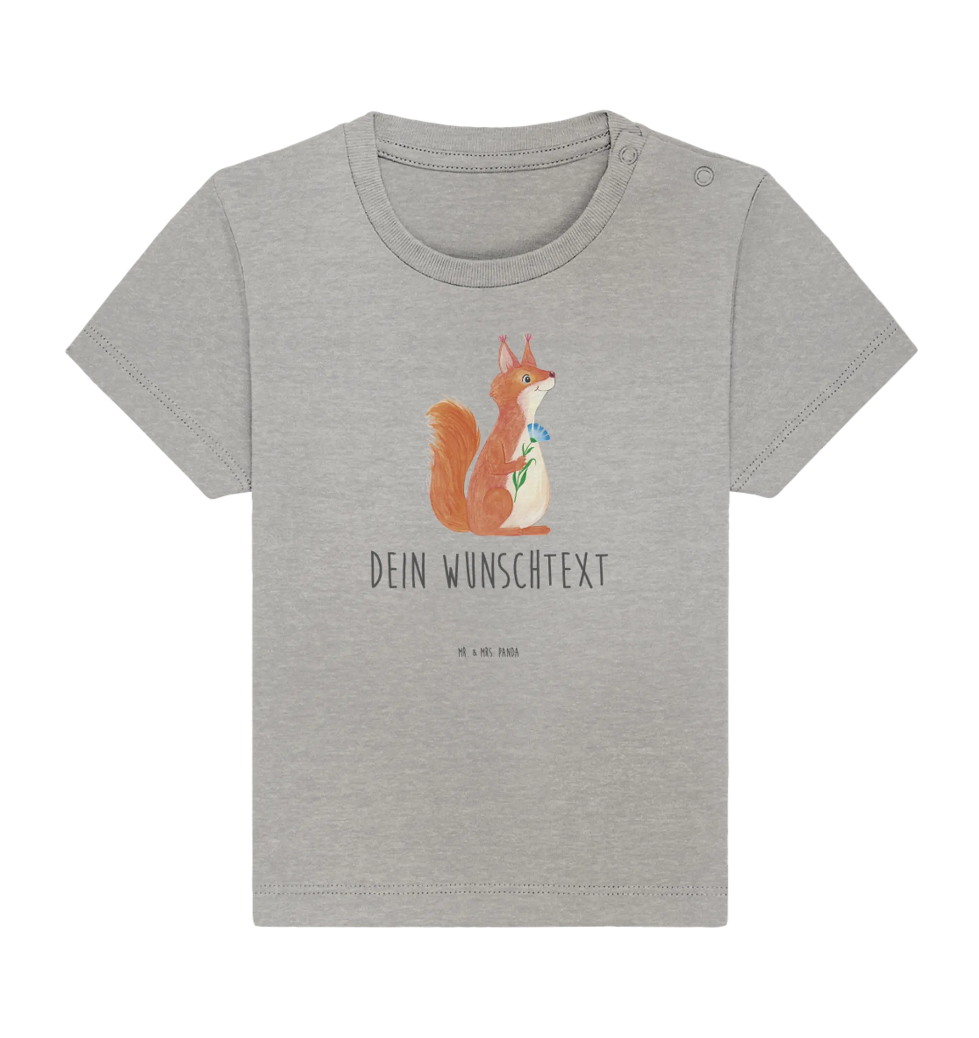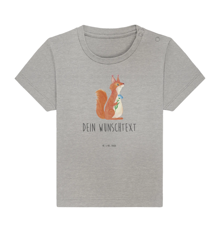 Personalized Baby Shirt Squirrel flower - 12th - 18th month - Heather Grey