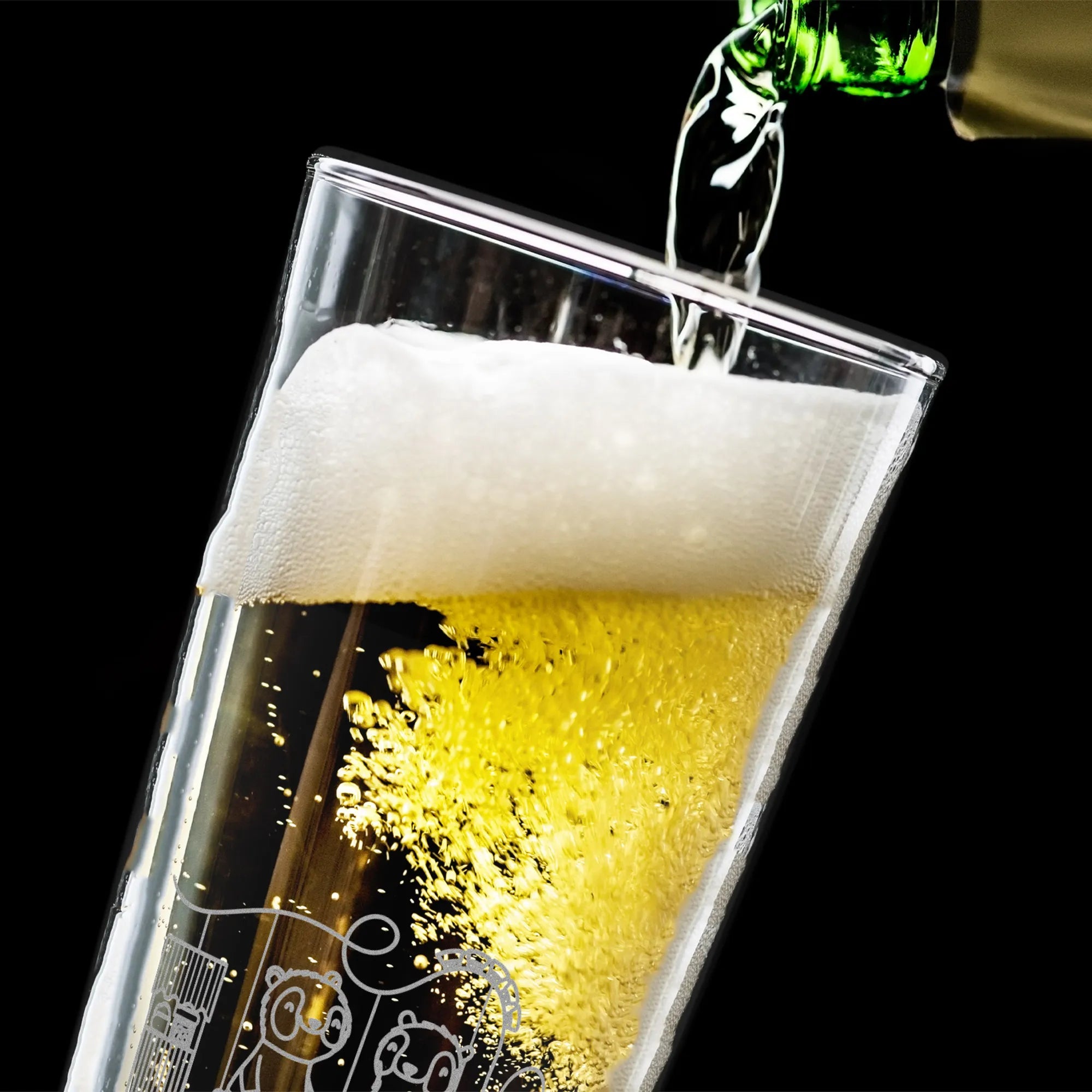 Personalized Beer Glass pandas visit amusement park