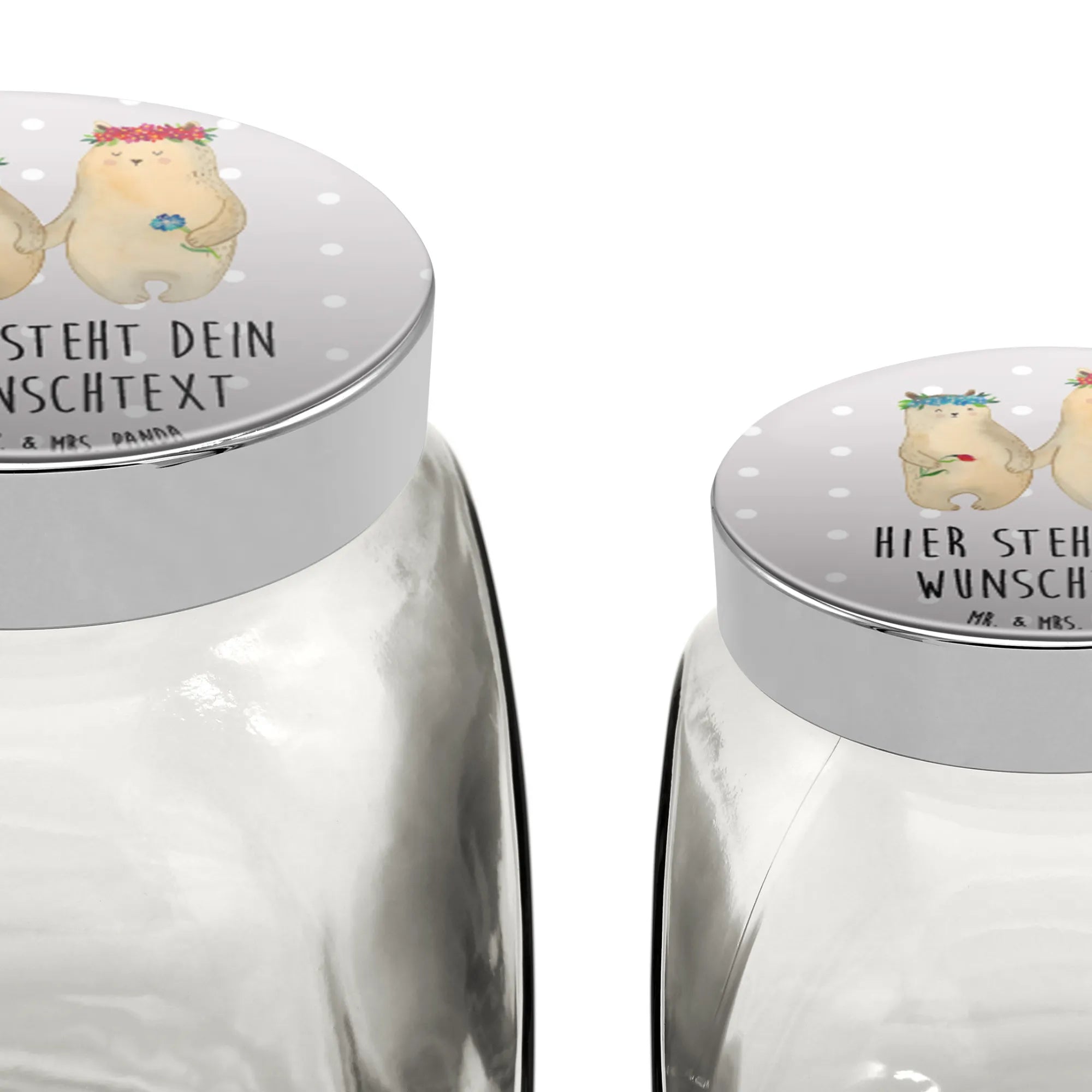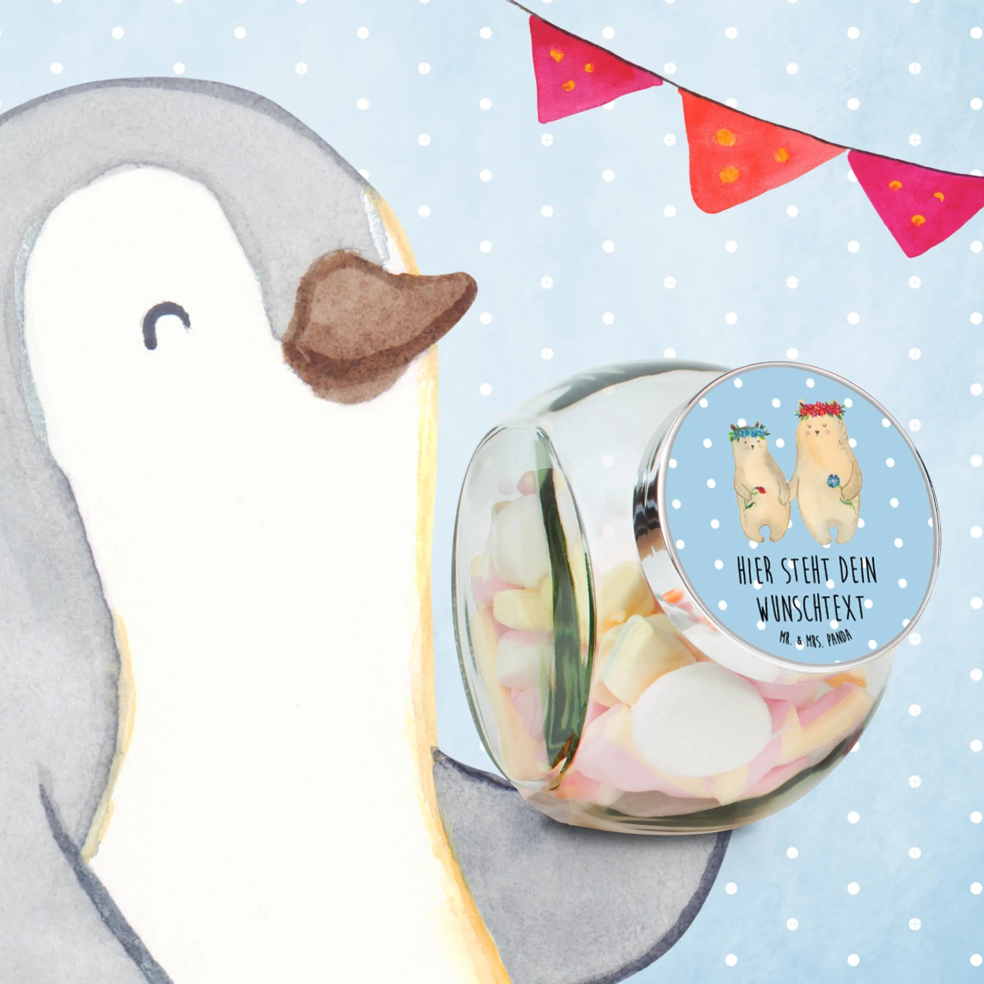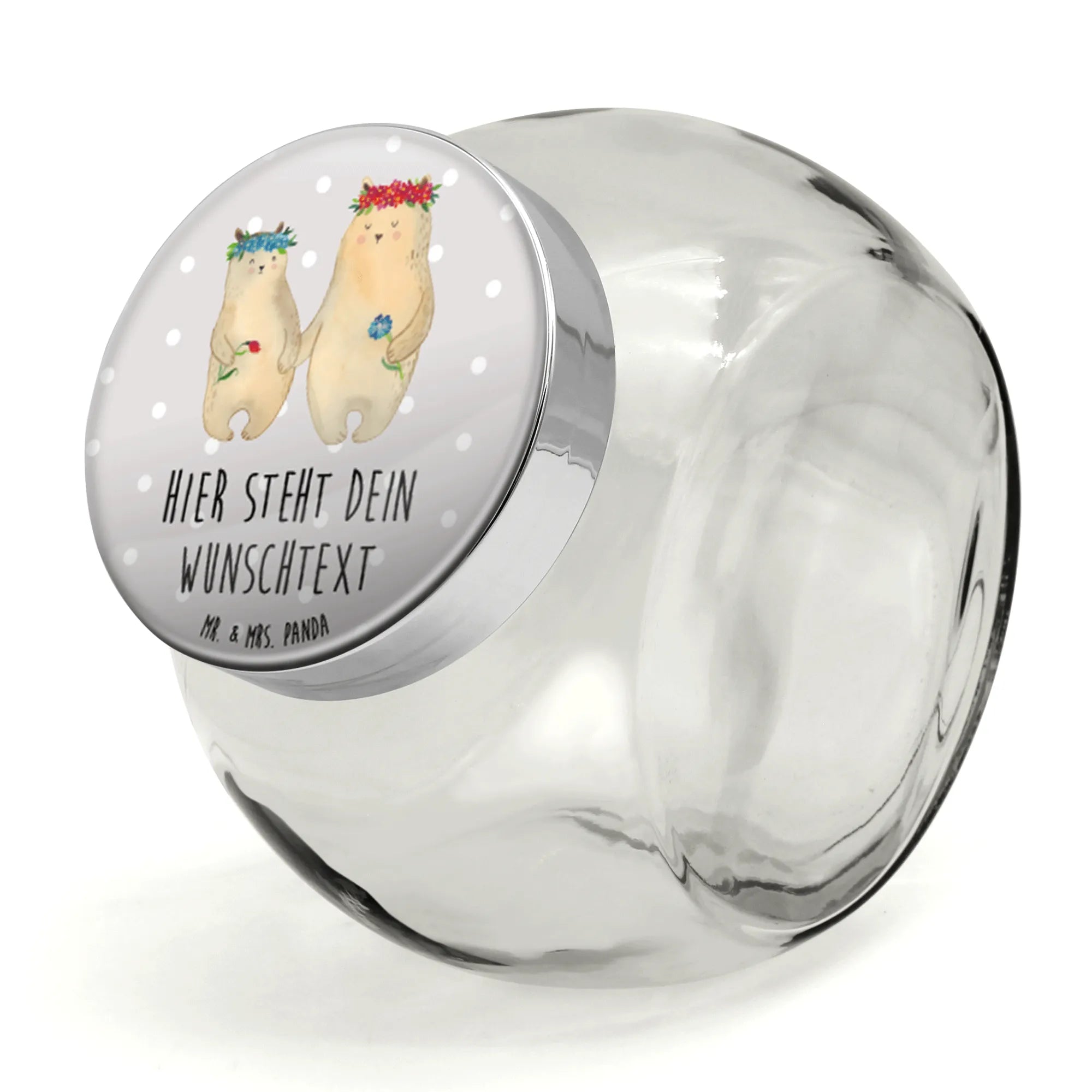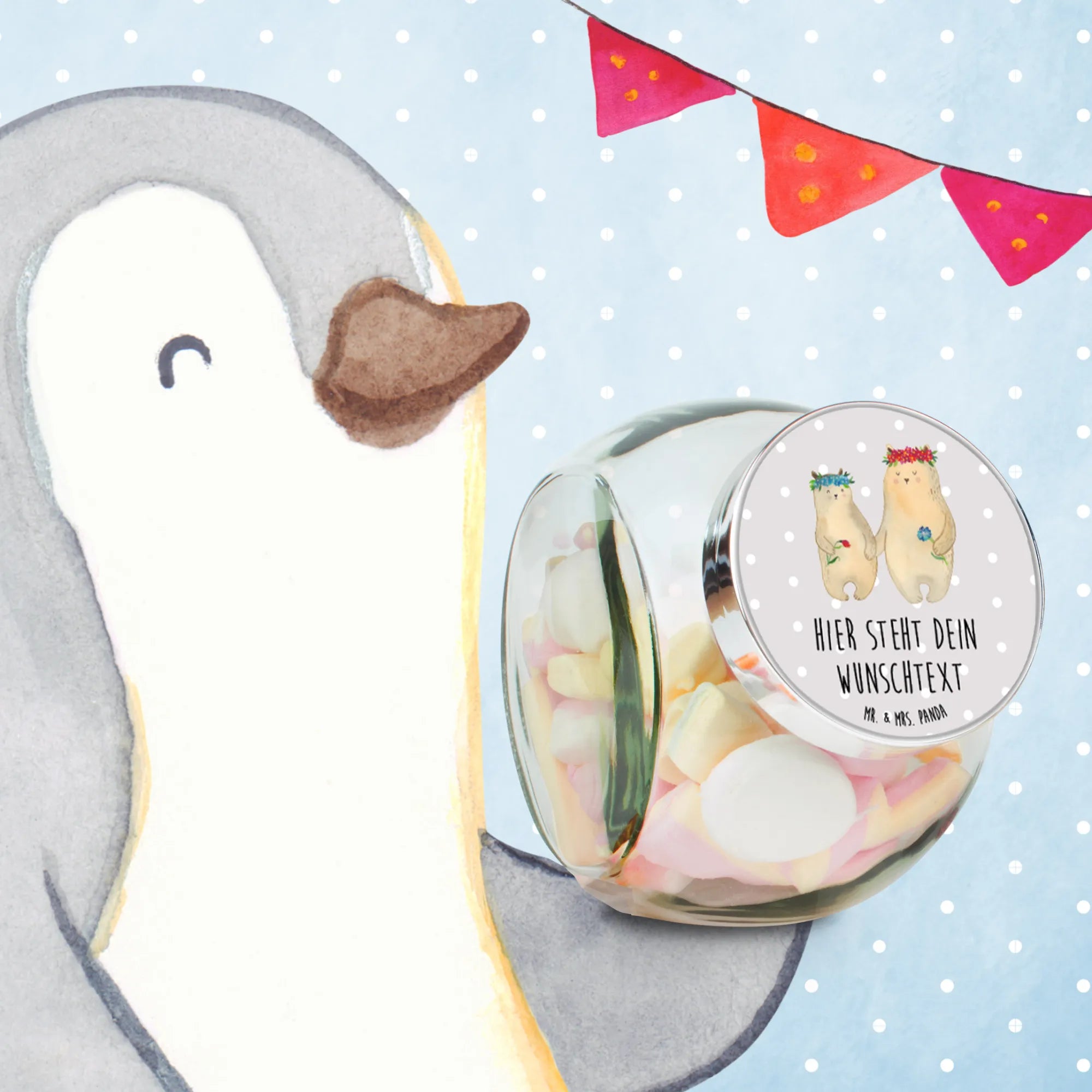 Personalized Candy Jar Bears with flower crown - XL 2000ml - Grey Pastel