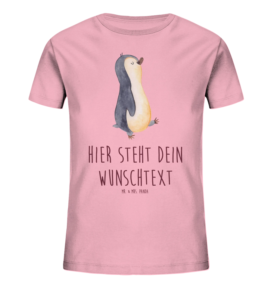 Personalized Children's T-Shirt Penguin march - 12-14 years (152/164) - Cotton Pink