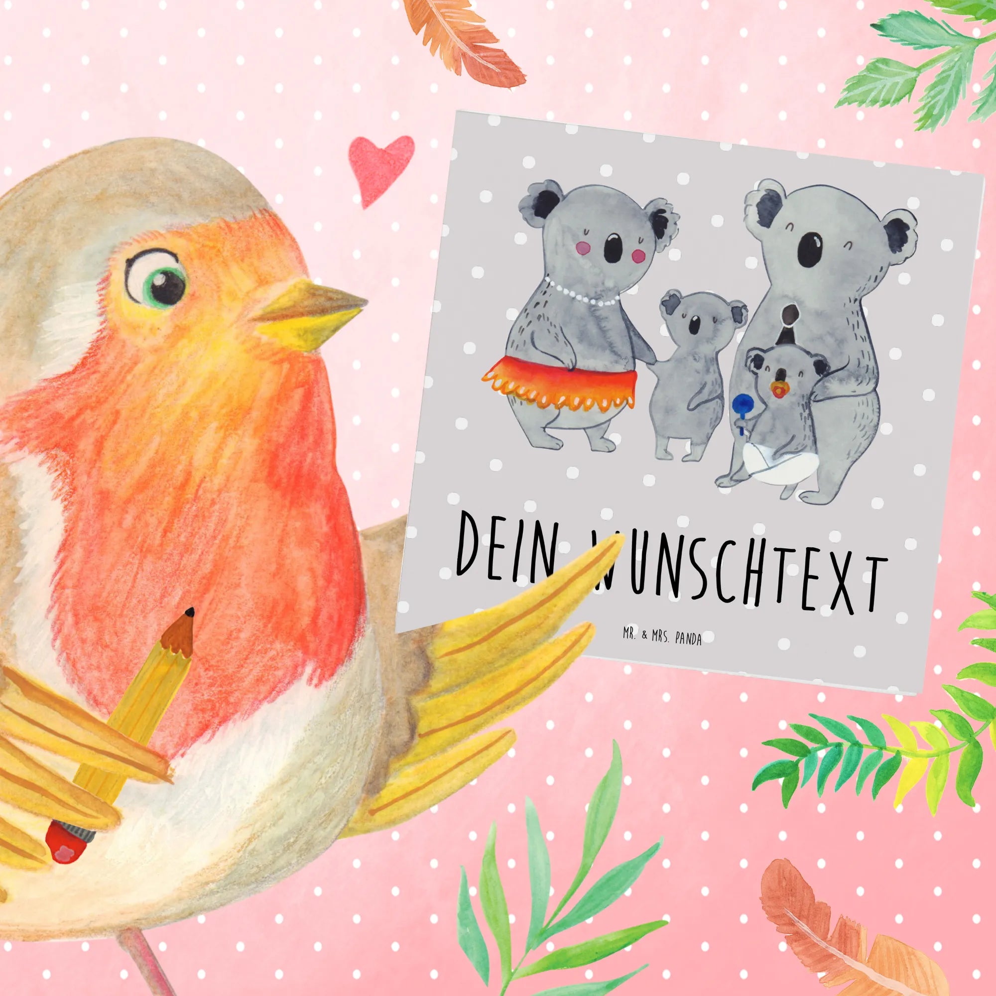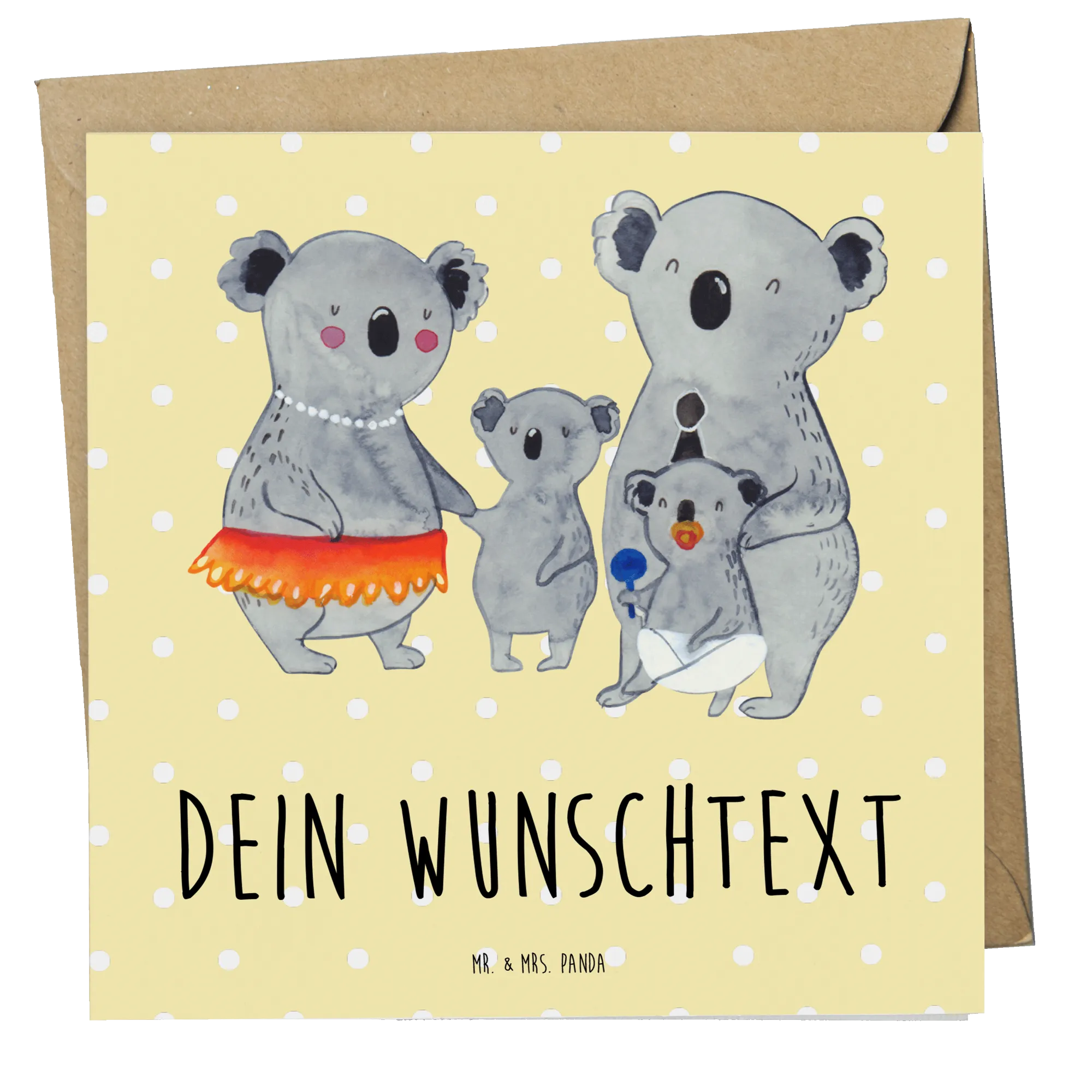 Personalized Deluxe Card Koala Family - Yellow Pastel
