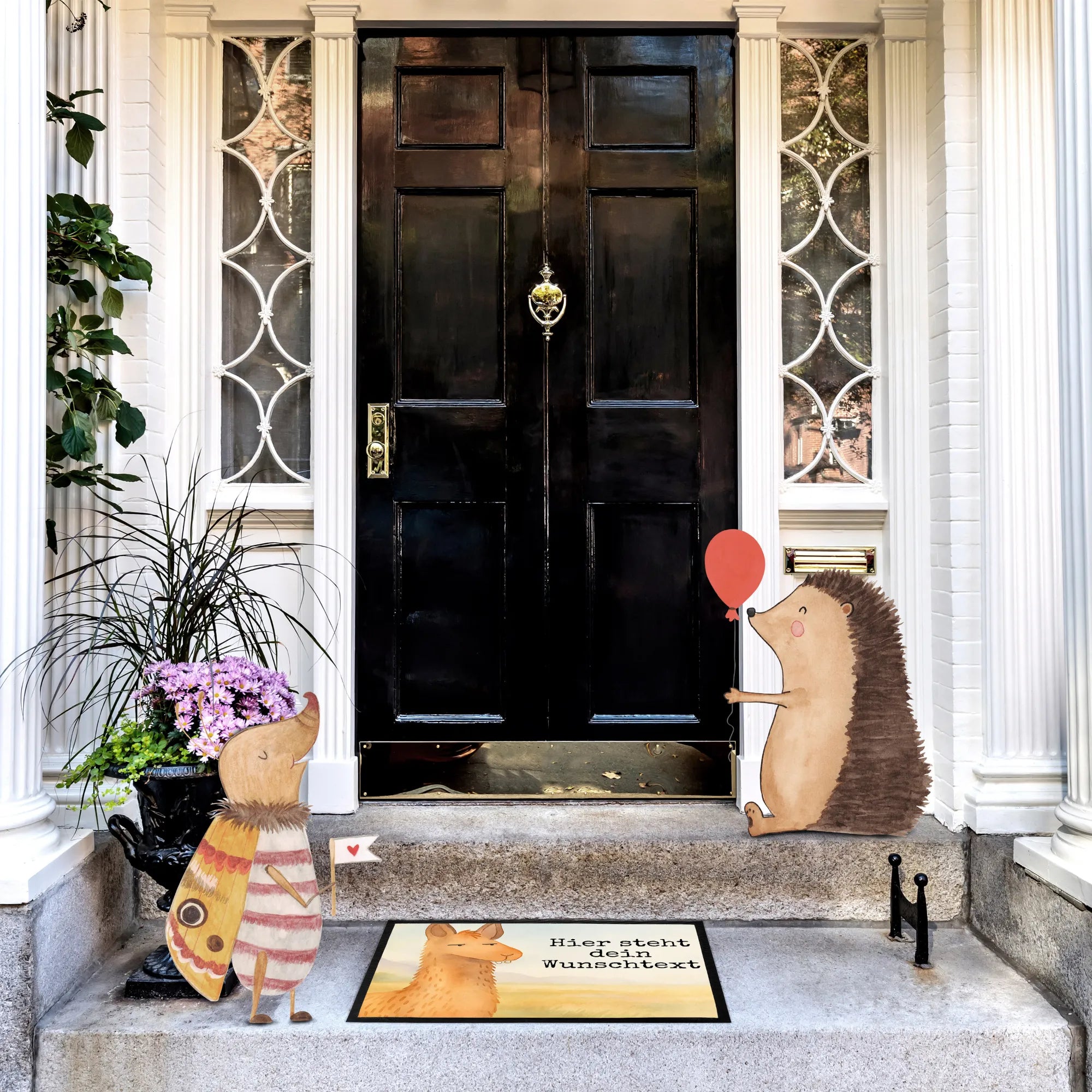 Gestalte deinen Eingangsbereich mit der personalisierten Fußmatte von Mr. & Mrs. Panda! Diese Matte ist ein echter Hingucker und misst 400 mm x 600 mm x 5 mm. Gefertigt aus robustem Polyesterfilz, bietet sie sowohl Stil als auch Funktionalität. Die gummierte Rückseite sorgt für einen sicheren Halt. Du kannst sie mit deinem Wunschtext oder Namen anpassen, was sie zu einem idealen Geschenk macht. Die Fußmatte ist abriebfest und wetterbeständig, sodass sie jedem Wetter standhält. Die Pflege ist unkompliziert: einfach ausklopfen und absaugen, oder bei hartnäckigen Flecken bis zu 30°C waschen. Der breite Gummirand verhindert das Ausfransen und sorgt dafür, dass deine Matte lange schön bleibt. Setze ein persönliches Zeichen in deinem Zuhause und bereite deinen Gästen einen herzlichen Empfang mit dieser individuell gestaltbaren Fußmatte!