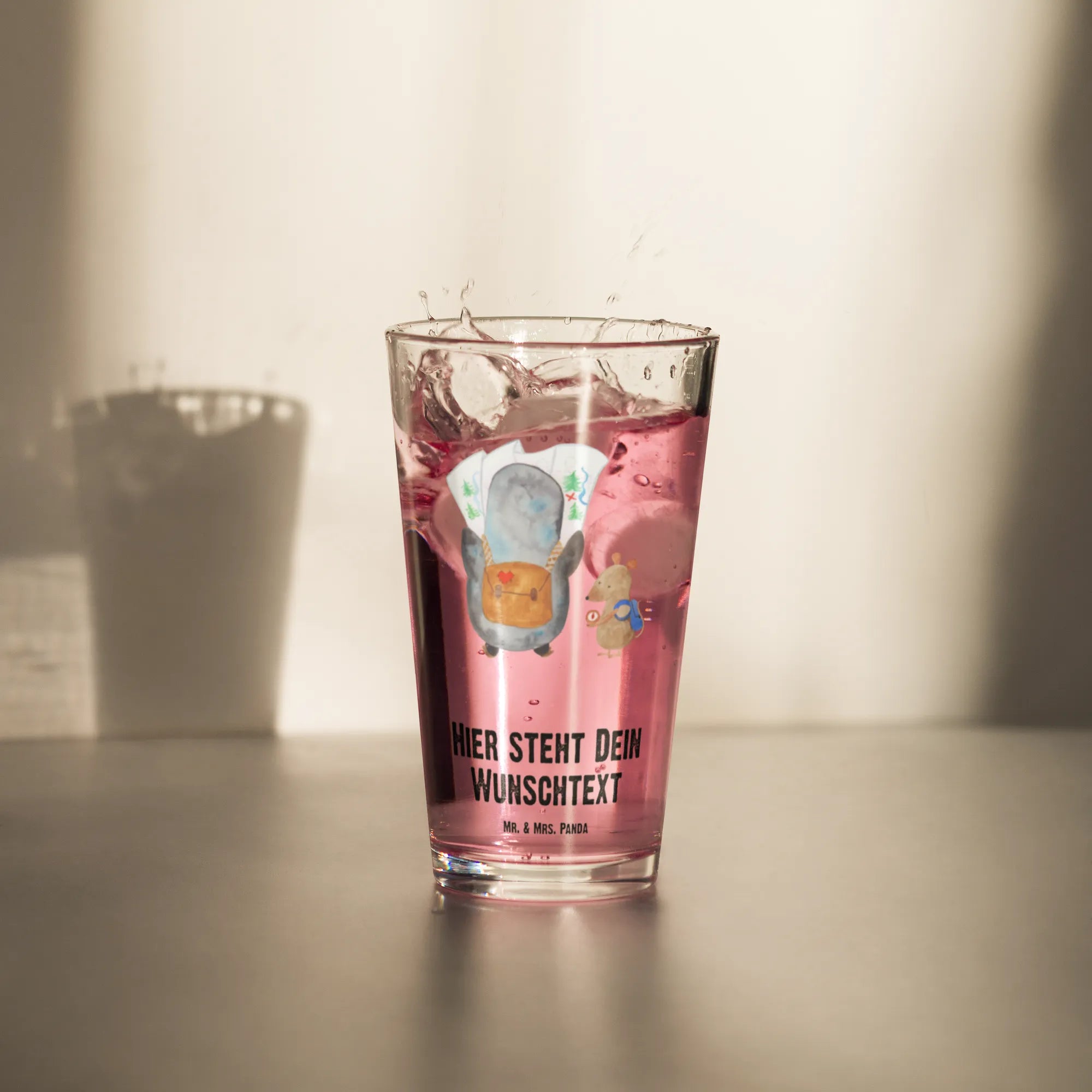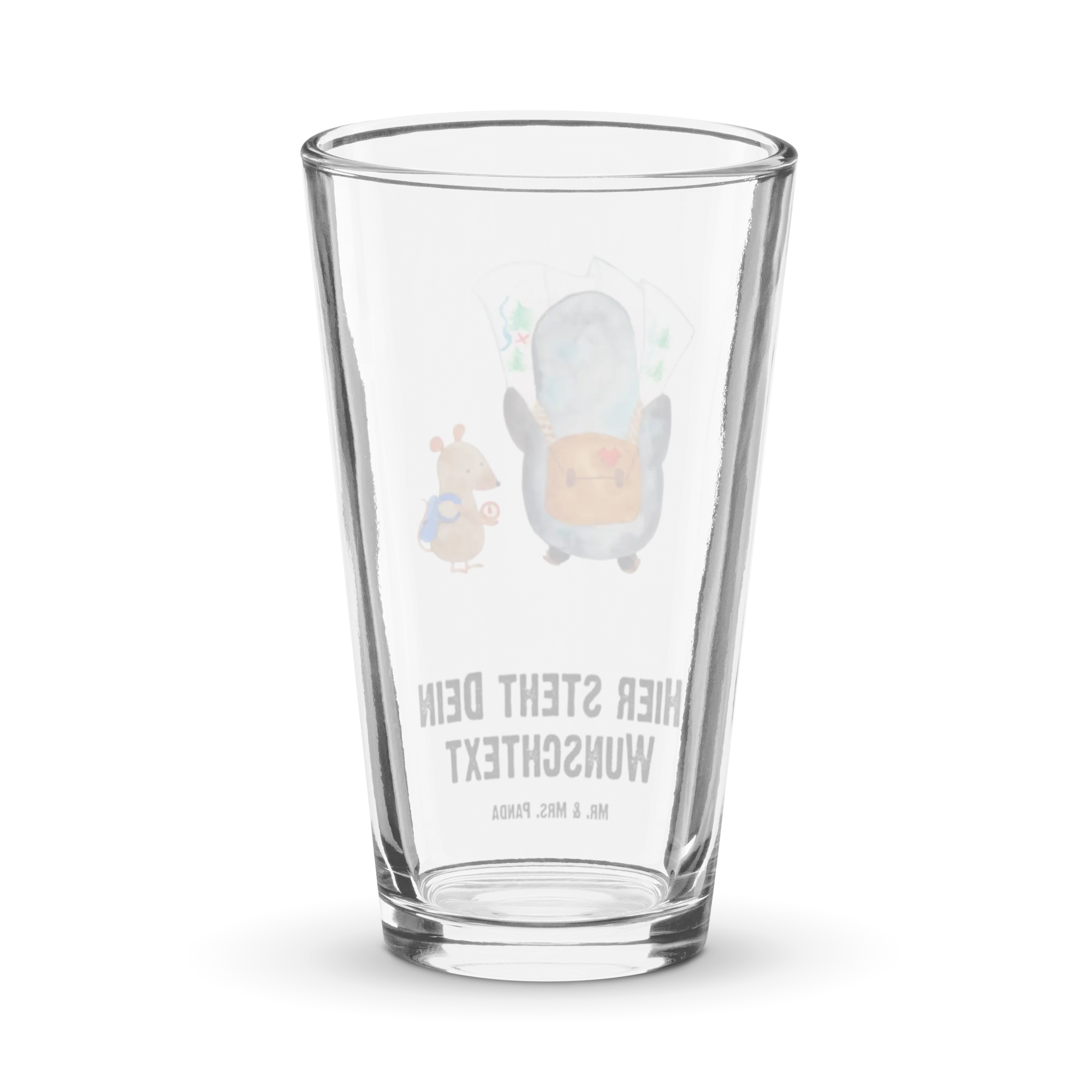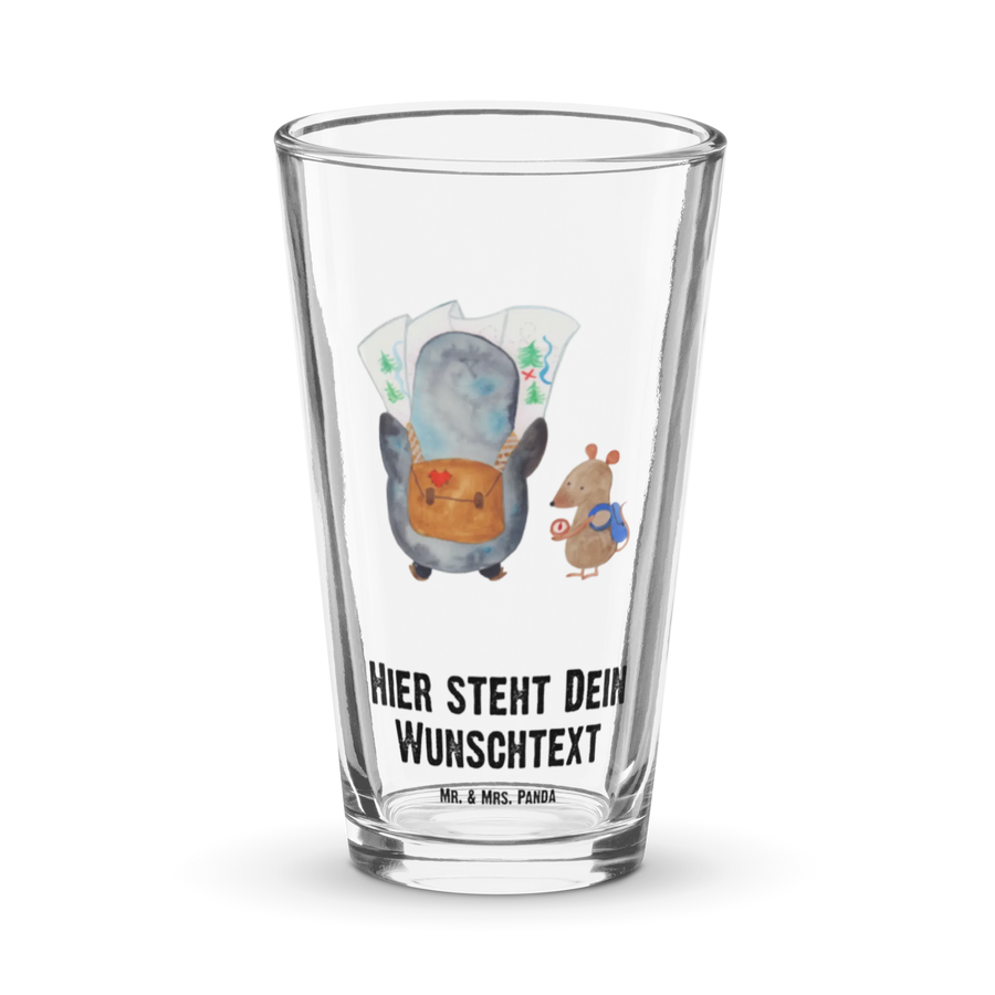 Personalized Drinking Glass Penguin & Mouse Hiker
