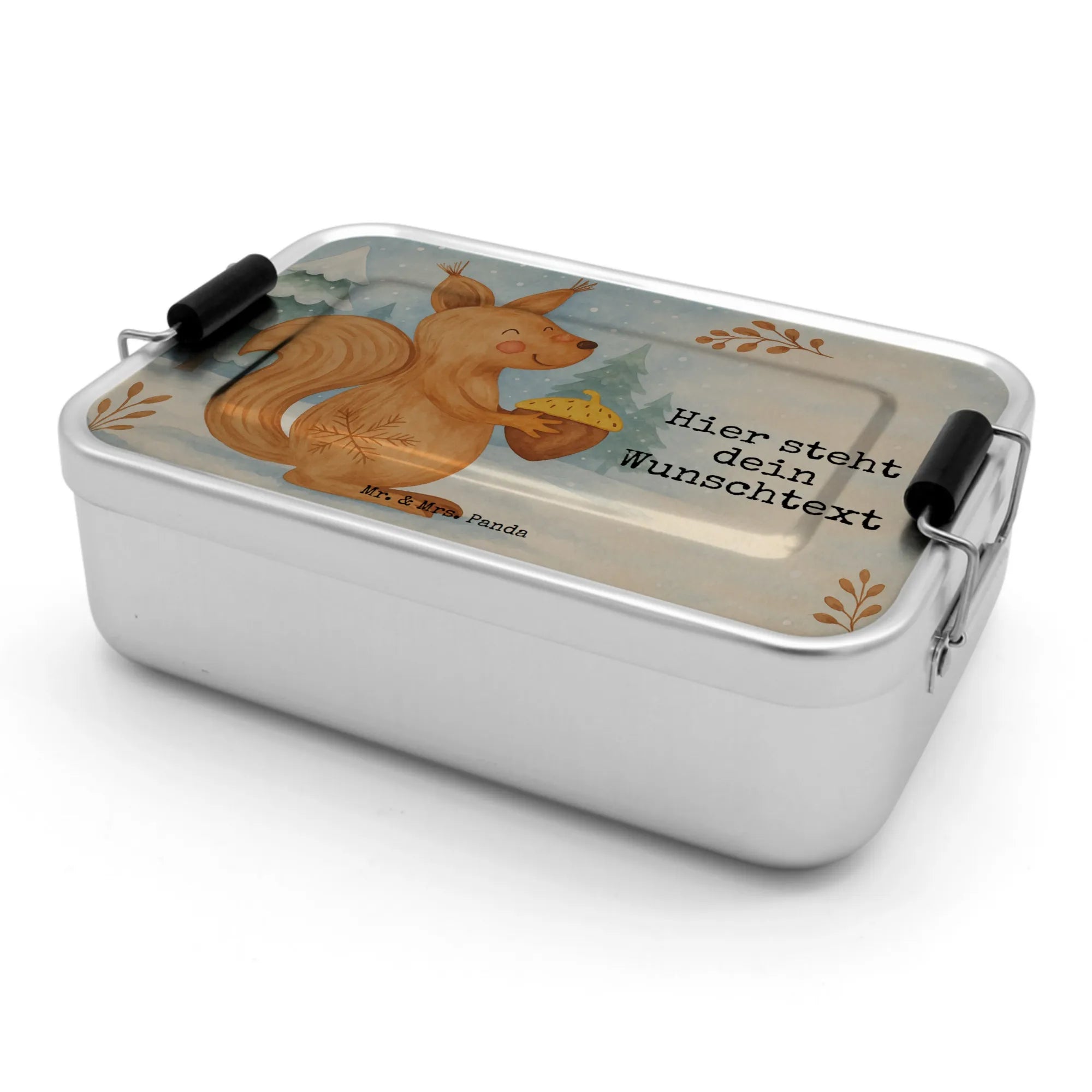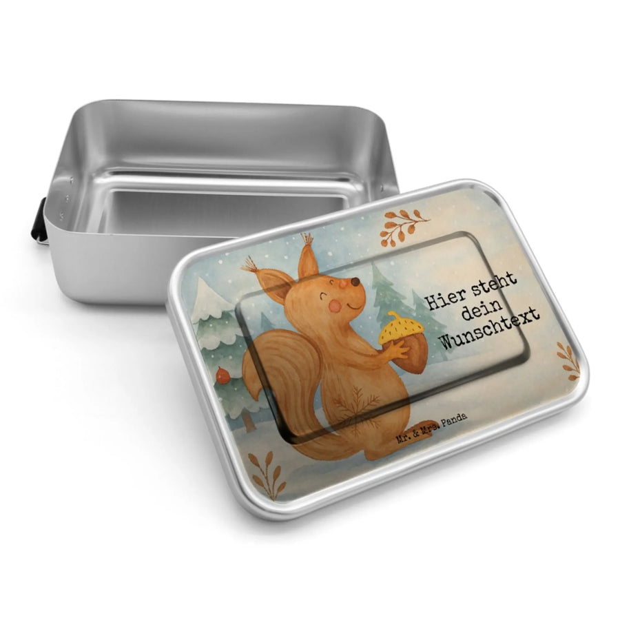 Personalized Metal Lunch Box Squirrel Christmas Design - Ice Blue
