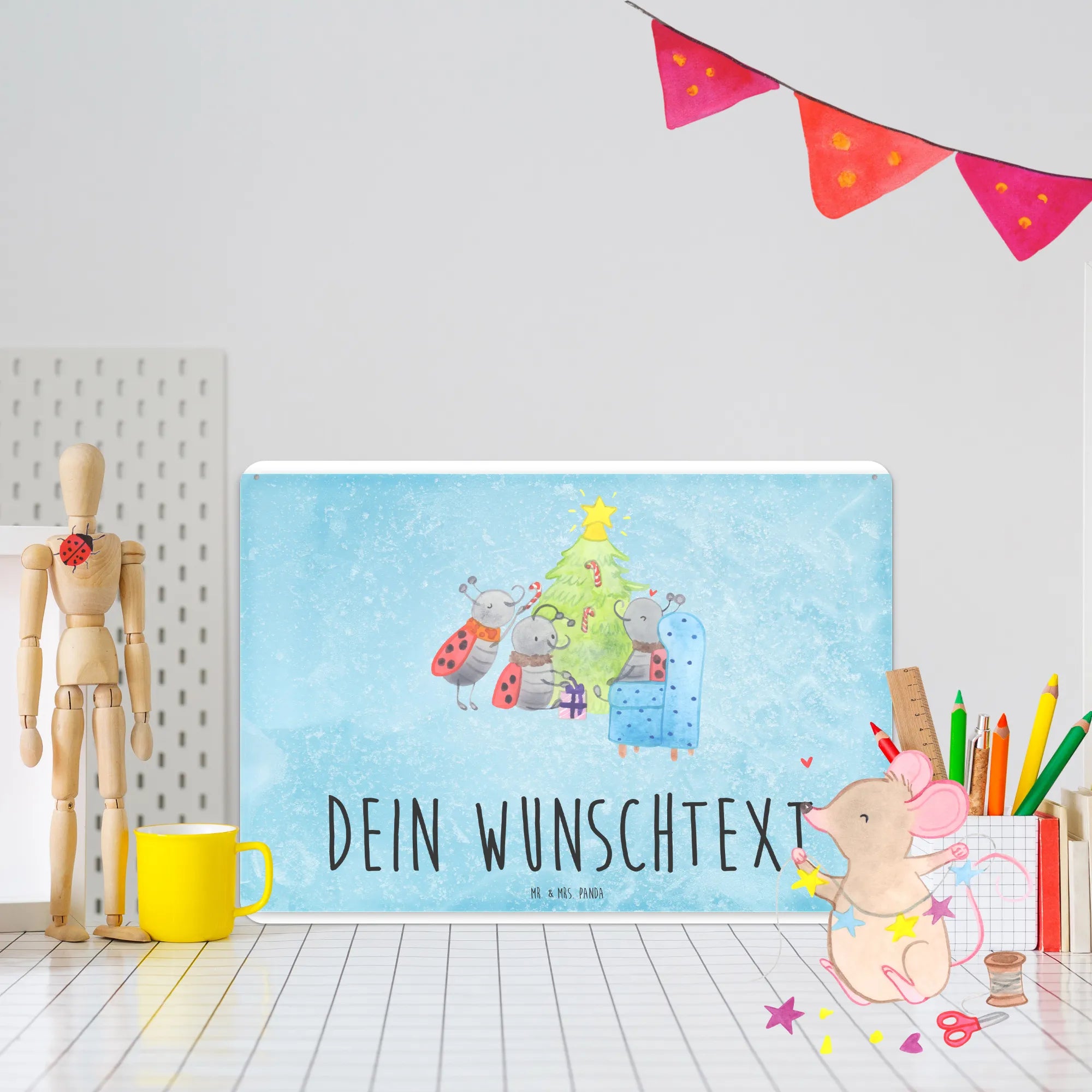 Imagine three sweet ladybugs perched around a sparkling Christmas tree, surrounded by gifts that are just waiting to be unwrapped. This delightful motif encapsulates the joyous spirit of the holiday season. As the ladybugs decorate the tree with bright baubles and shiny tinsel, the air fills with the scents of pine needles and peppermint, evoking cherished memories of Christmases past. Their laughter rings like bells, filling the hearts of all who see this motif with warmth and happiness. With the slogan, 'Wir wünschen dir und deiner Familie wundervolle Weihnachtstage und einen guten Rutsch in ein magisches neues Jahr!', we embrace the magic of the season and wish you and your family a wonderful holiday.