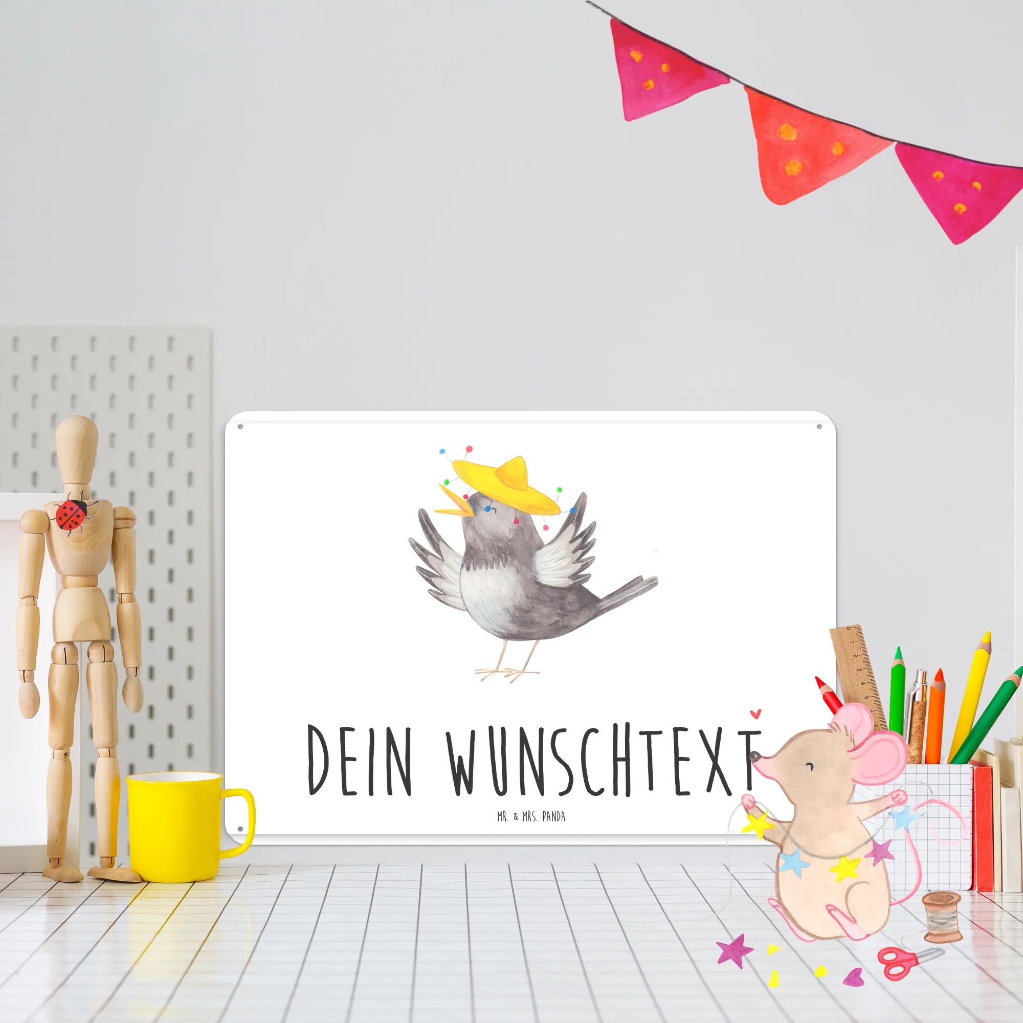 Personalized metal sign Crow sombrero - DIN A6 - White