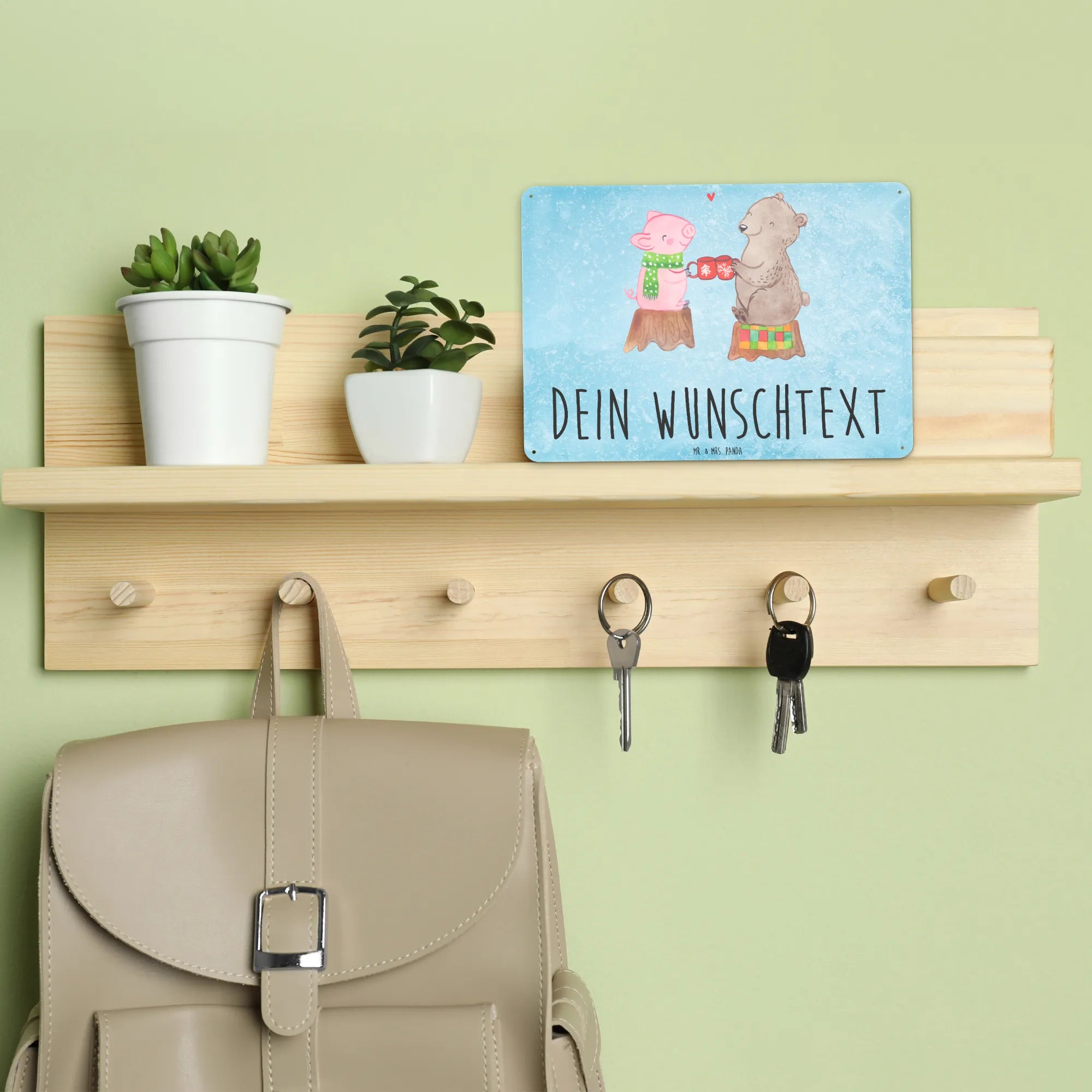 Personalized metal sign Glowing Pig Bash - DIN A6 - Ice Blue