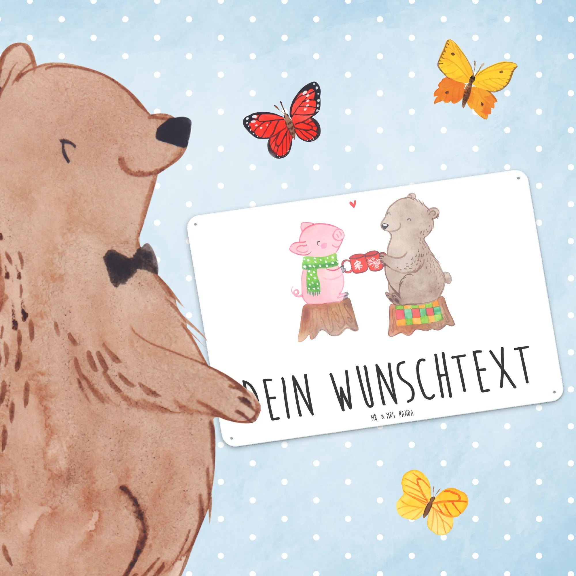 Imagine a charming scene where friendship sparkles in the air—our adorable pig is cozily wrapped in a scarf, clinking cups with a joyful bear! Seated on a sturdy tree stump, their cheerful gathering radiates warmth and laughter. The little heart between them is a gentle reminder that love is what truly makes life shine bright. 'Ein Prosit auf das feine Leben!' captures this spirit perfectly, encouraging us to embrace the festive moments, especially during the Christmas season. Each sip of cheer not only celebrates the good life but also symbolizes the beautiful bonds we share, making our hearts glow with joy. Whether it’s a casual meet-up or a holiday feast, let’s always find an excuse to toast to happiness!
