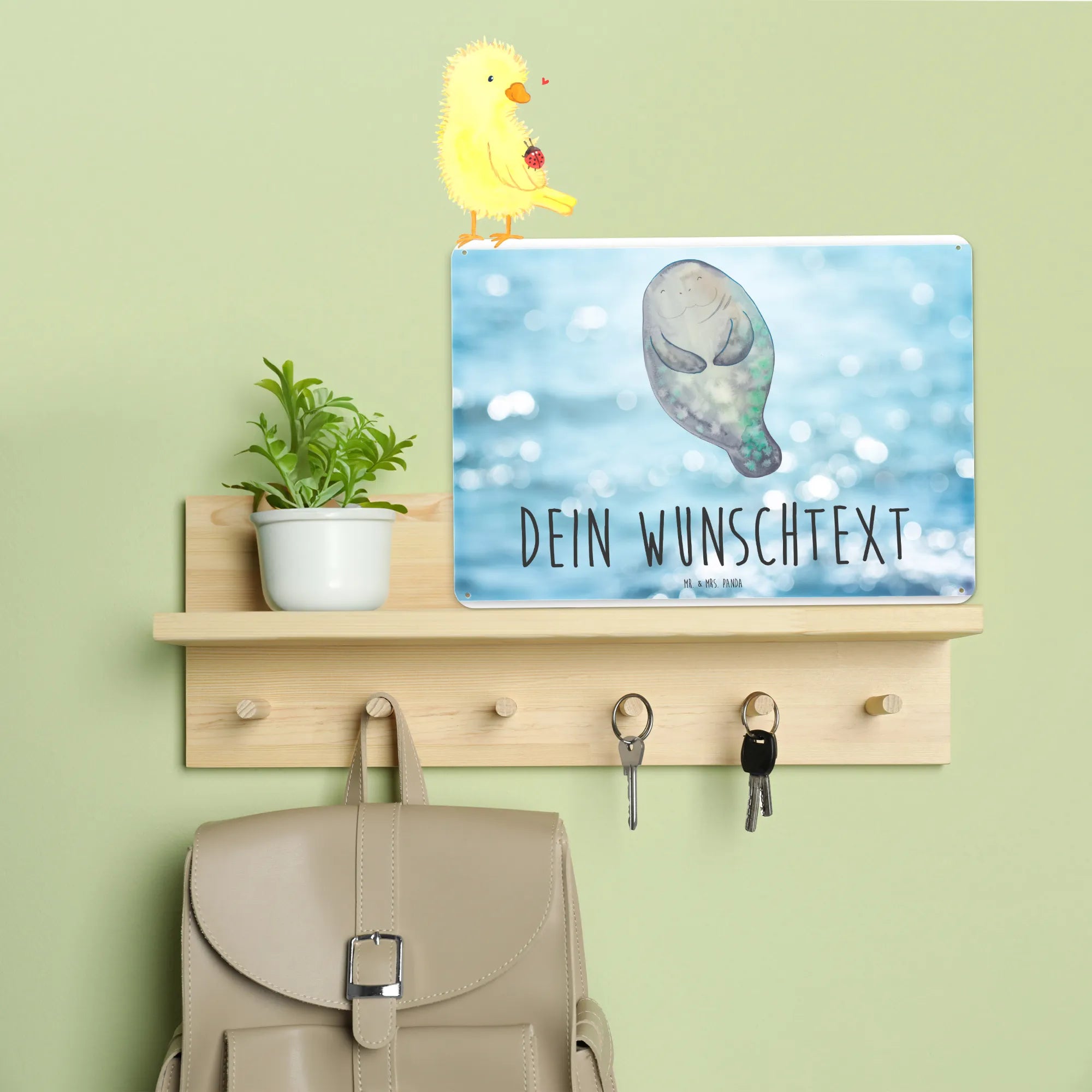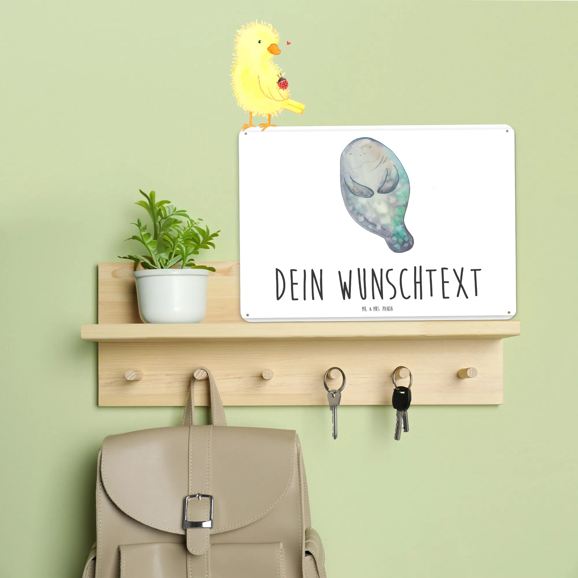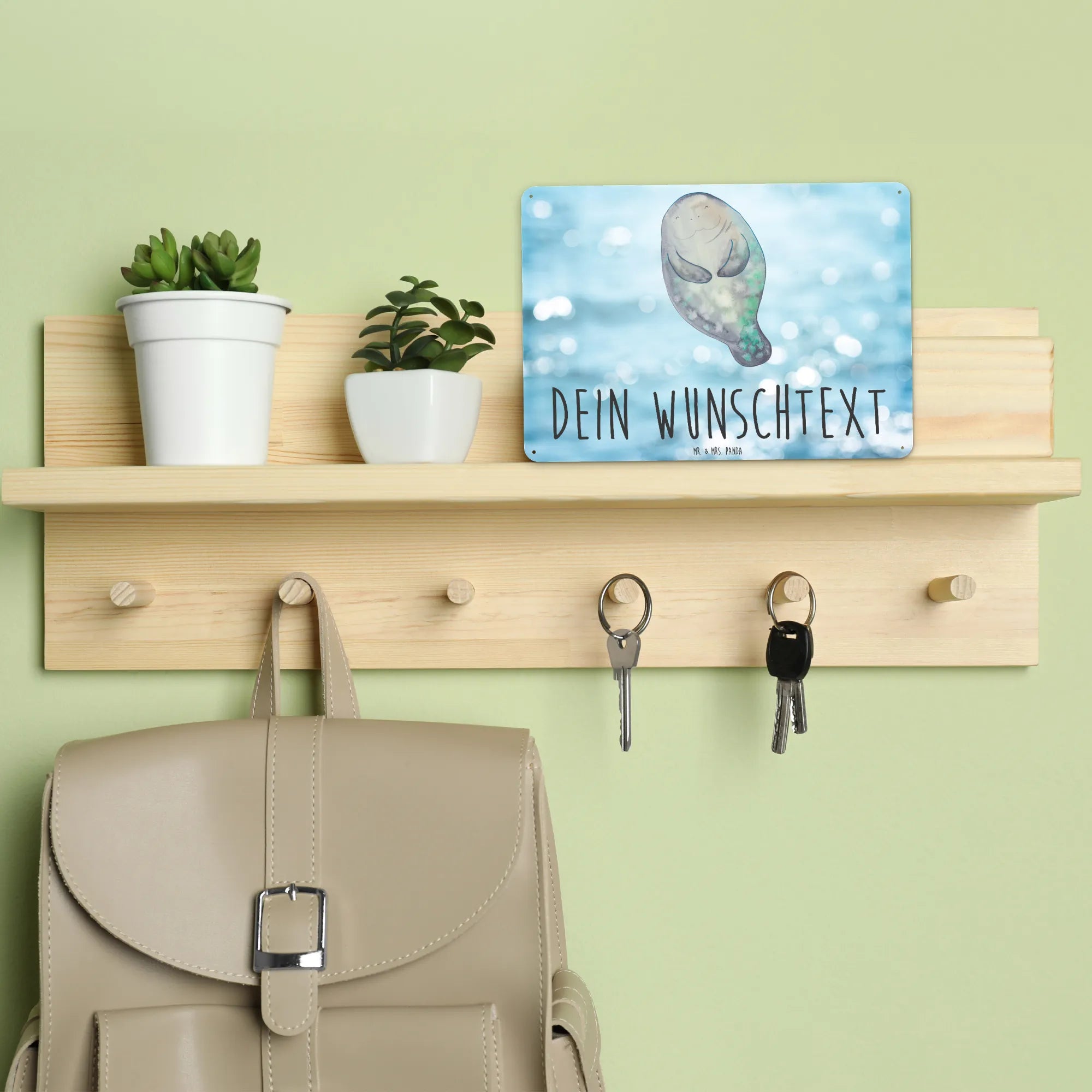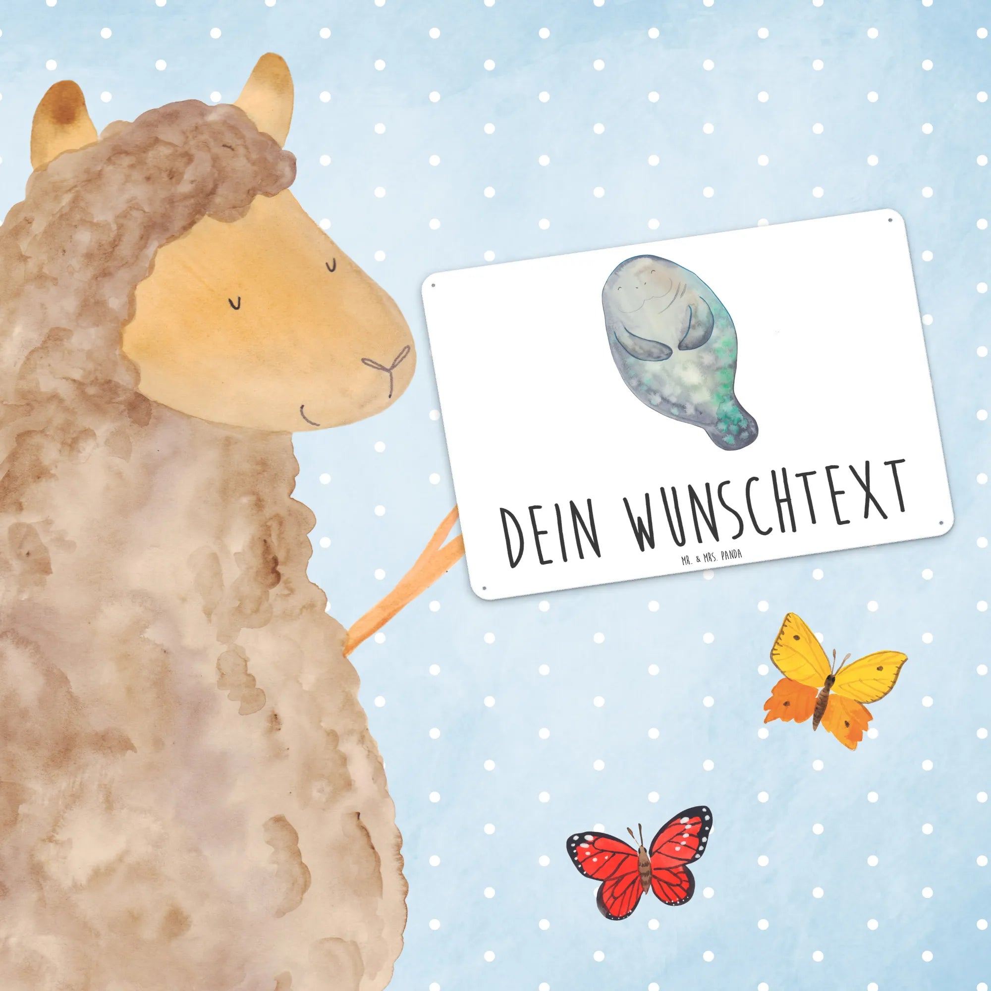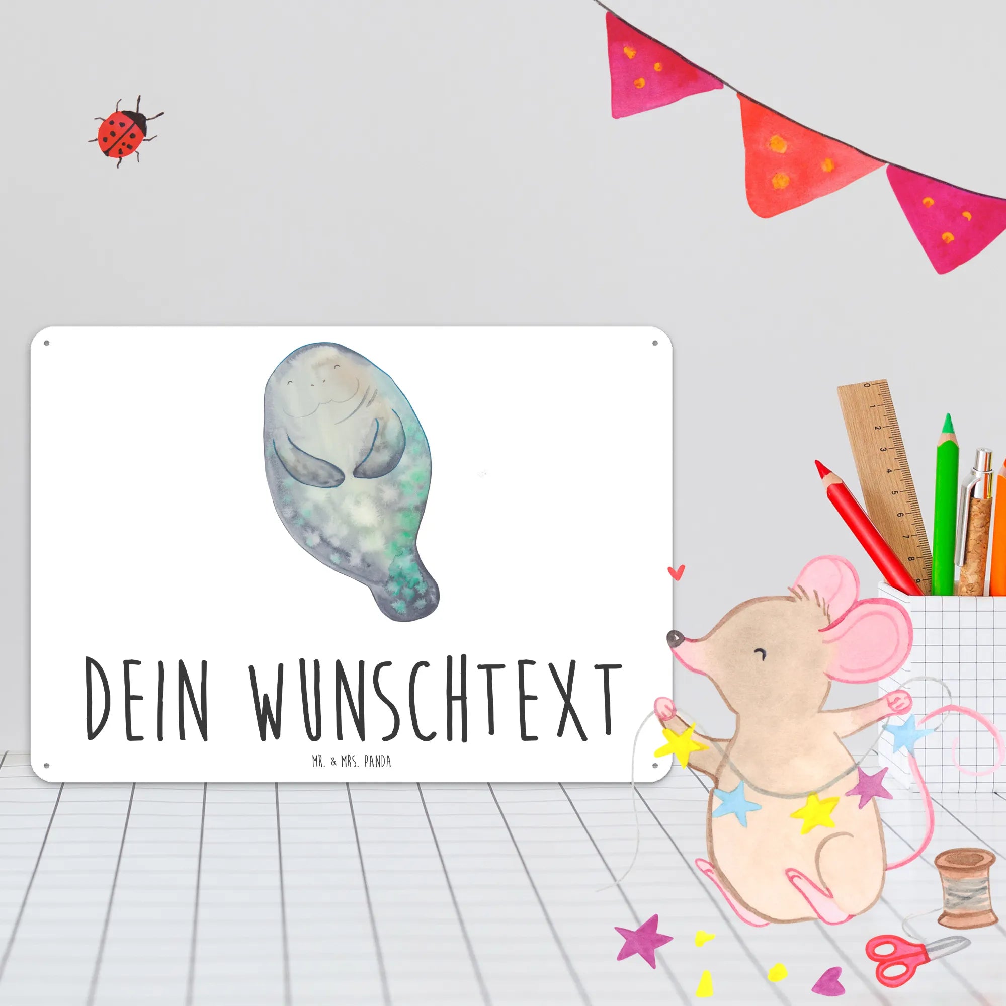 Personalized metal sign manatee happy - DIN A6 - White