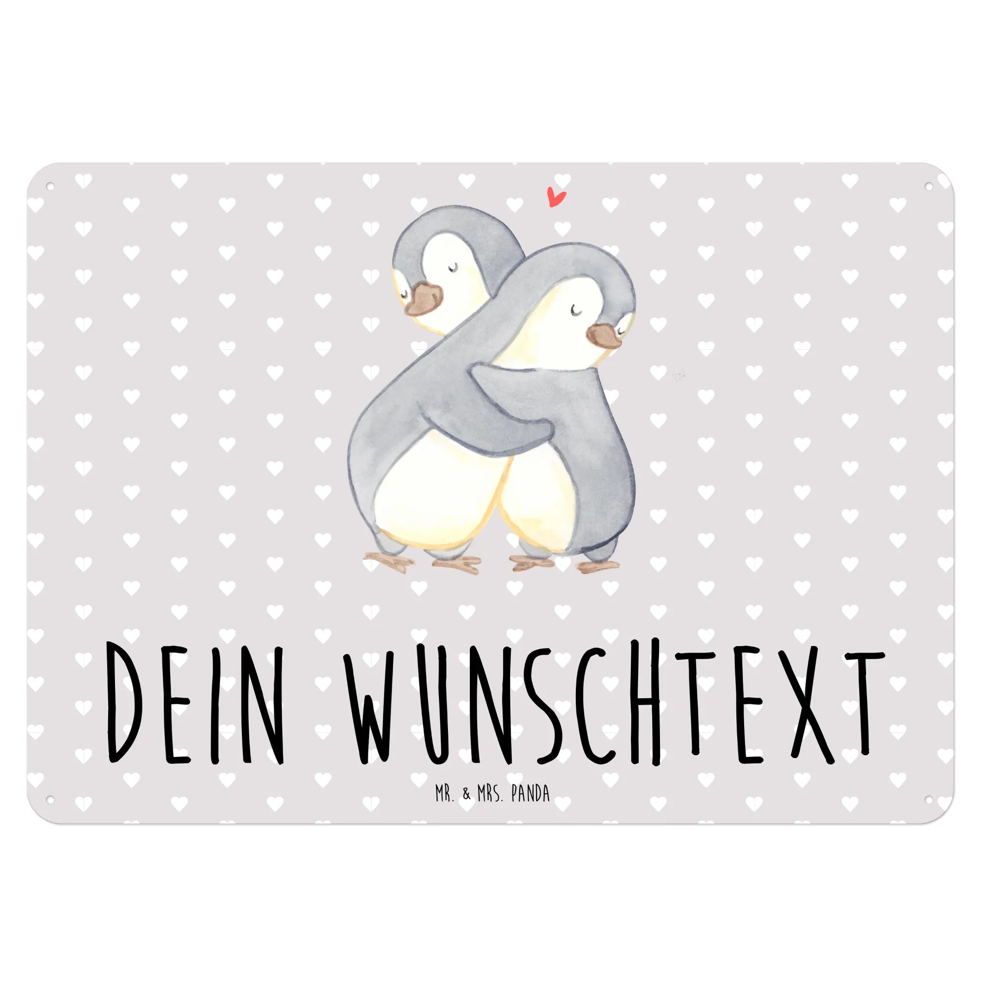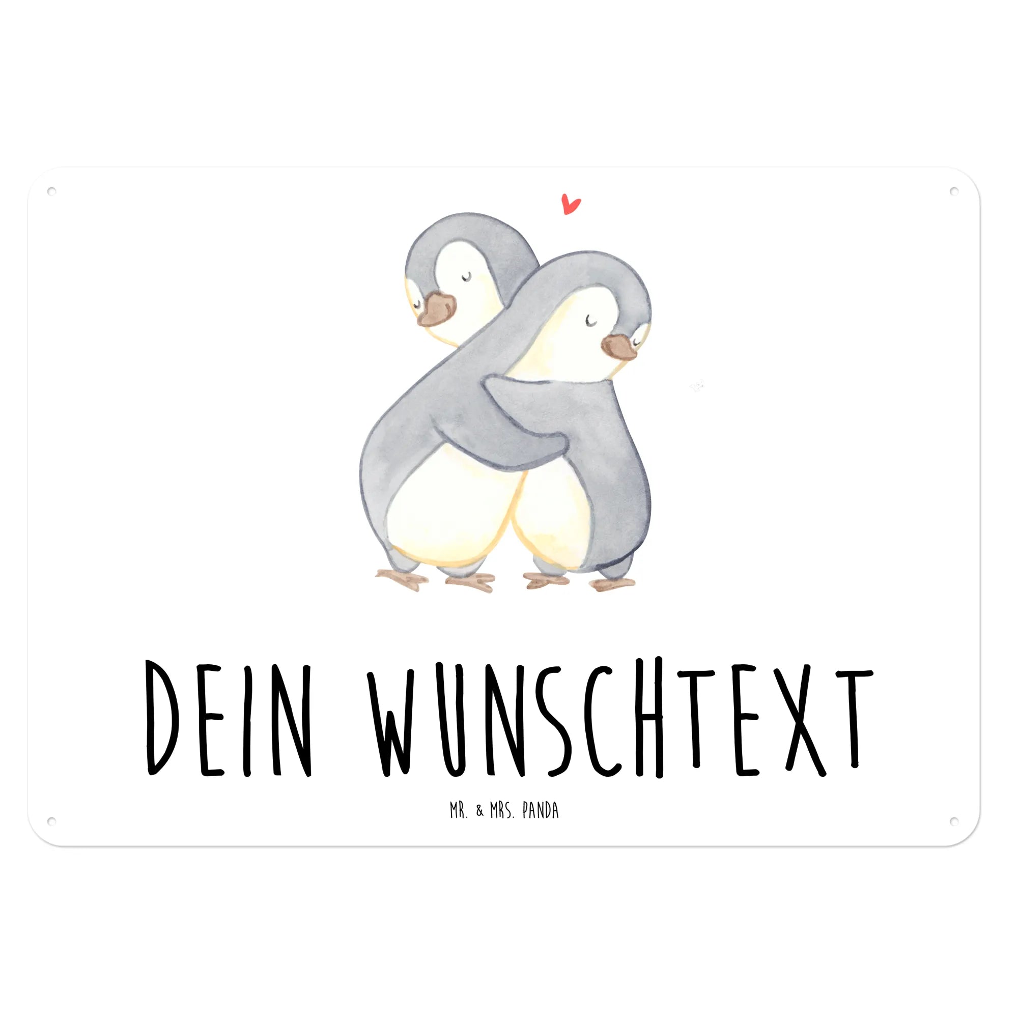 Personalized metal sign penguins Cuddle - DIN A6 - White