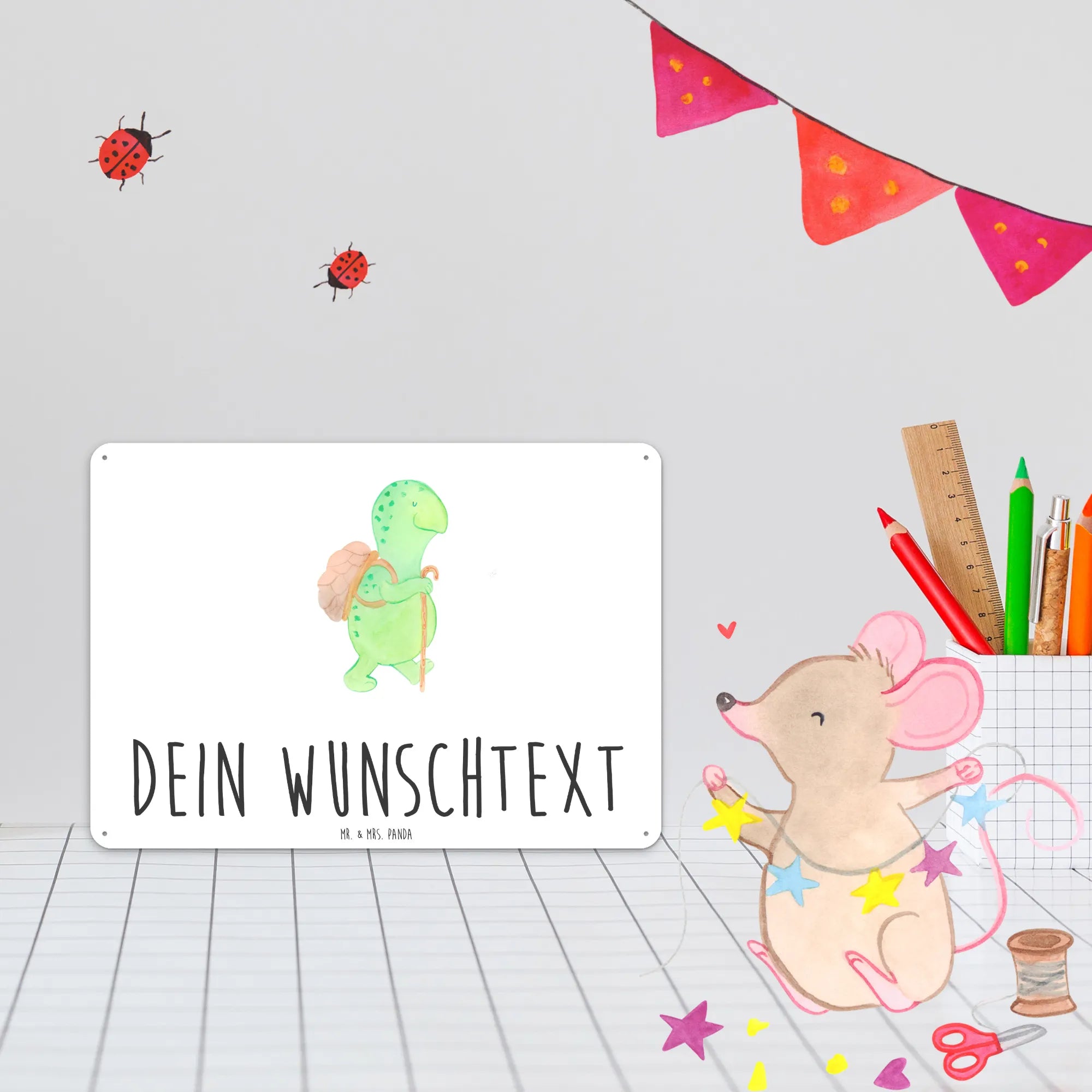 Personalized metal sign tortoise walker - DIN A6 - White