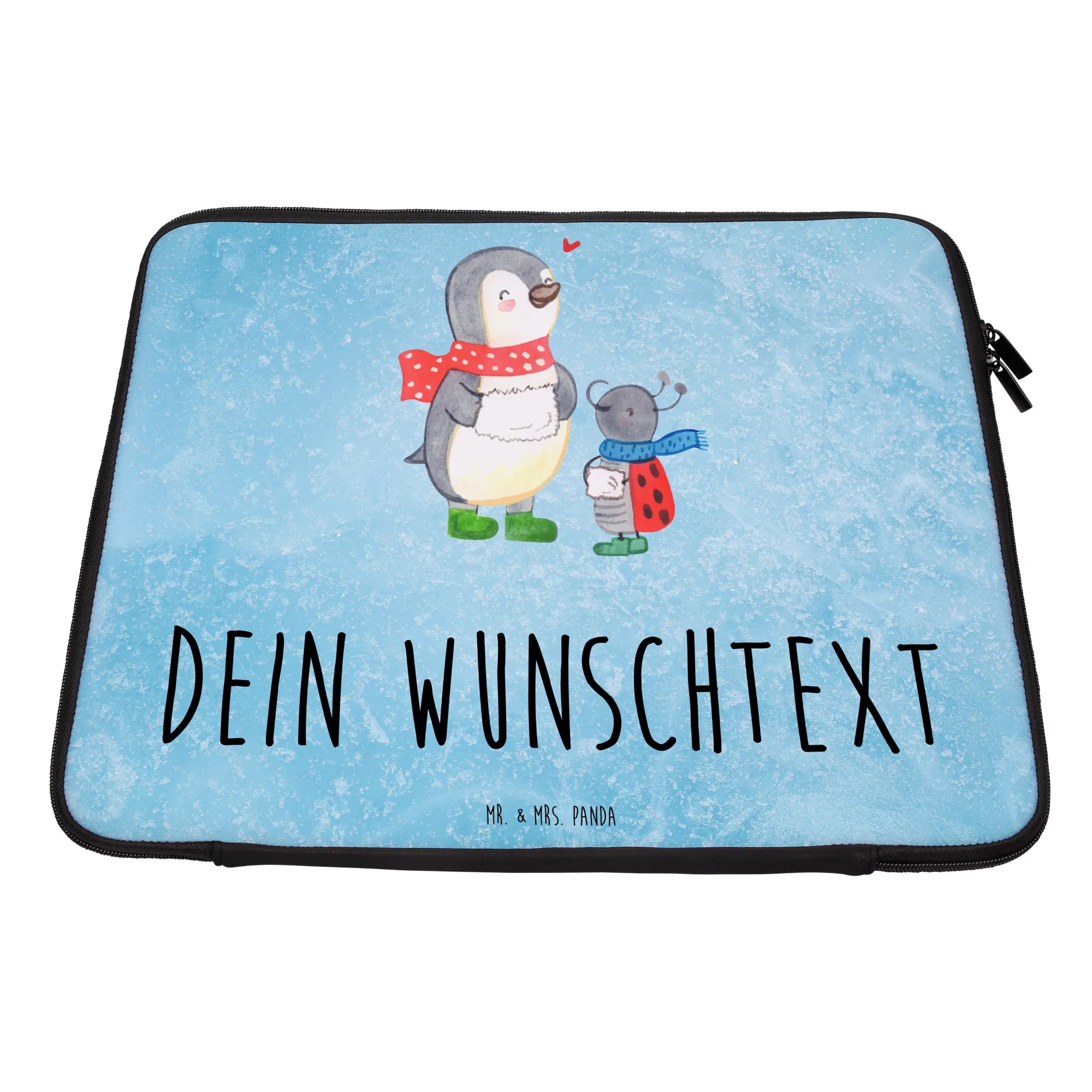 Die personalisierte Notebook Tasche 'Smörle Winterzeit' von Mr. & Mrs. Panda ist das perfekte Geschenk für die schönste Zeit des Jahres! Mit einem liebevoll gestalteten Motiv, das einen fröhlichen Pinguin und einen niedlichen Marienkäfer zeigt, zaubert diese Tasche jedem ein Lächeln ins Gesicht.