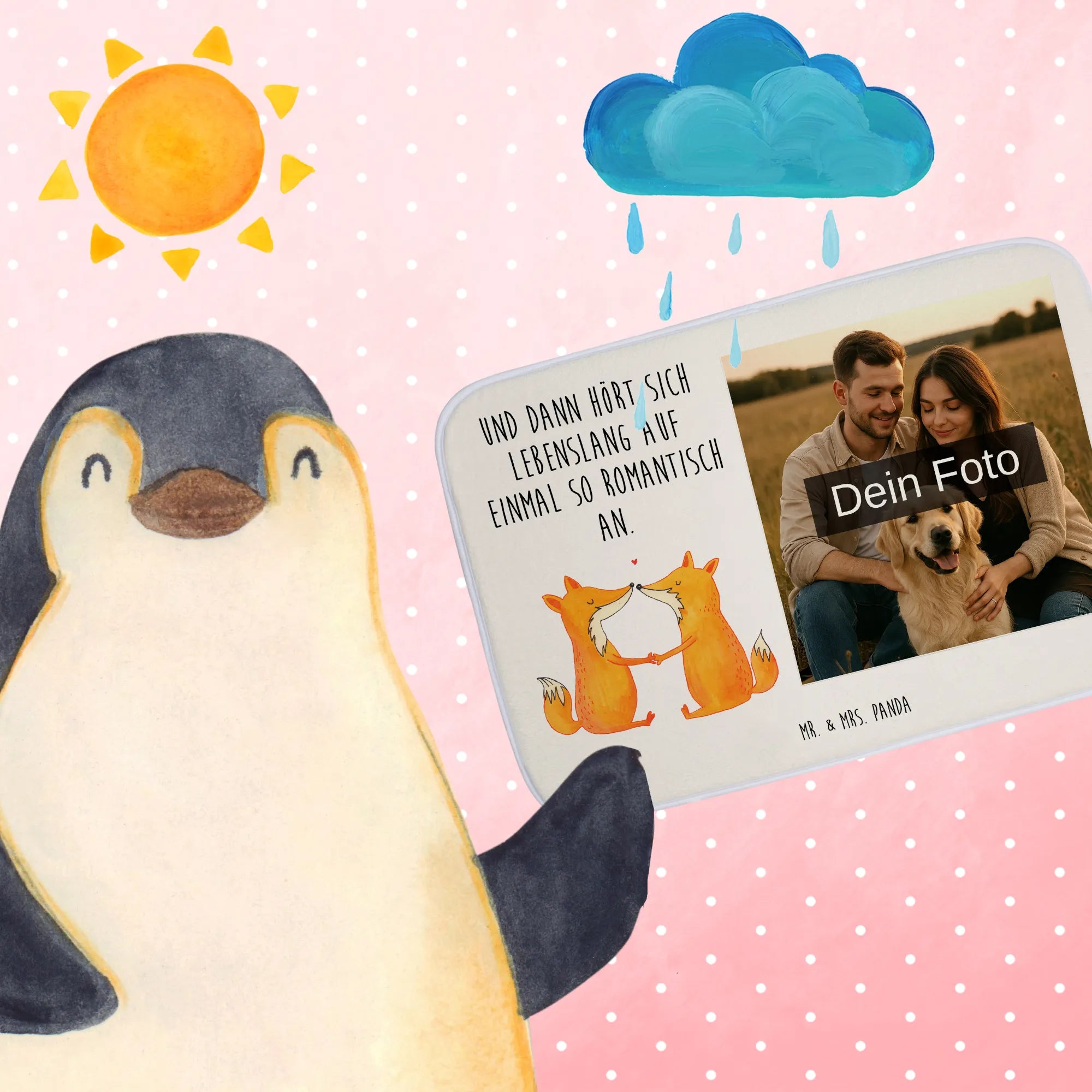 Give your bathroom a cozy, personal touch with our Personalized Photo Bathmat from Mr. & Mrs. Panda. Lovingly printed with your favorite photo and our sweet designs, this bathmat combines heartwarming style with practical safety. It measures 590 mm (23 inch) x 400 mm (16 inch) and is made from a plush premium synthetic fibre that feels wonderfully soft underfoot. The underside features anti-slip rubber nubs to keep the mat firmly in place and make your bathroom safer. Our printing process delivers high resolution results, so please upload a clear photo with good resolution and choose the right crop so nothing important gets cut off. Make sure you have the rights to the photo you upload, especially if people appear in it. The front is especially fluffy and highly absorbent, so it soaks up water quickly after showers and baths. We carefully print each mat with love, and the finished product gives your bathroom a charming look while preventing slips with its anti-slip rubber coating. For care, simply wash the mat in your machine at 30°C and let it air dry. This Personalized Photo Bathmat is both decorative and functional — perfect as a heartfelt gift or a little everyday luxury for your own home. Add your photo and let us create a cuddly, safe accent for your bathroom that you’ll smile at every morning.