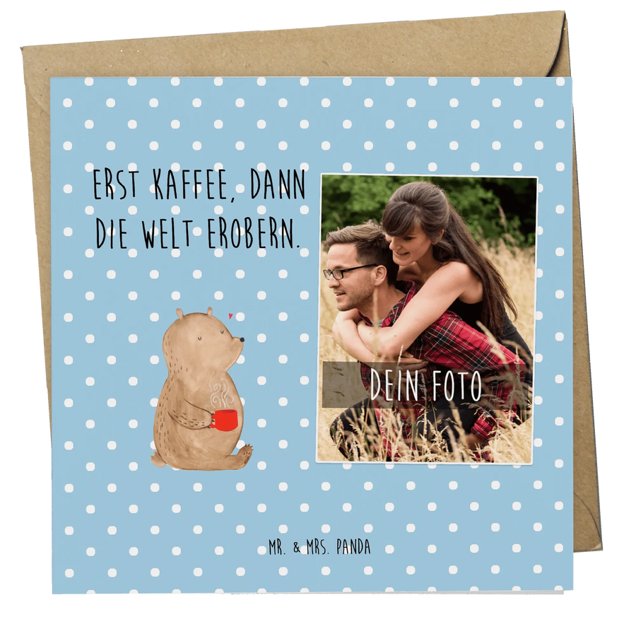 Personalized Photo Deluxe Card bear Coffee - Blue Pastel