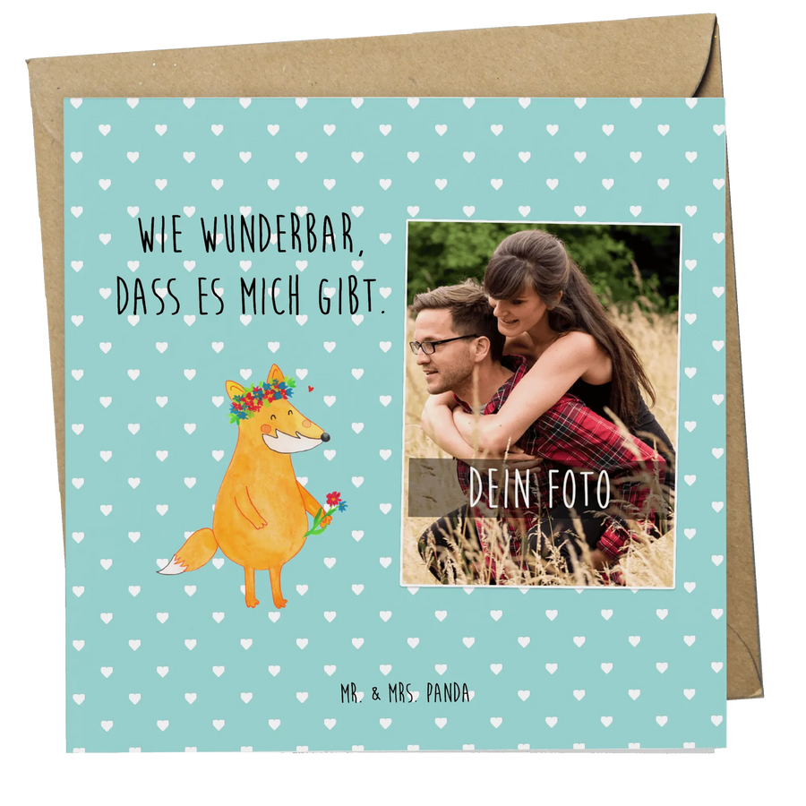 Personalized Photo Deluxe Card Fox Flower – Mr. & Mrs. Panda