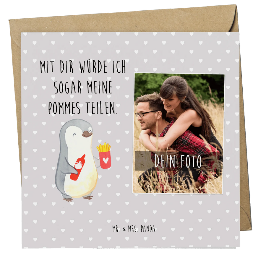 Personalized Photo Deluxe Card penguin French fries – Mr. & Mrs. Panda