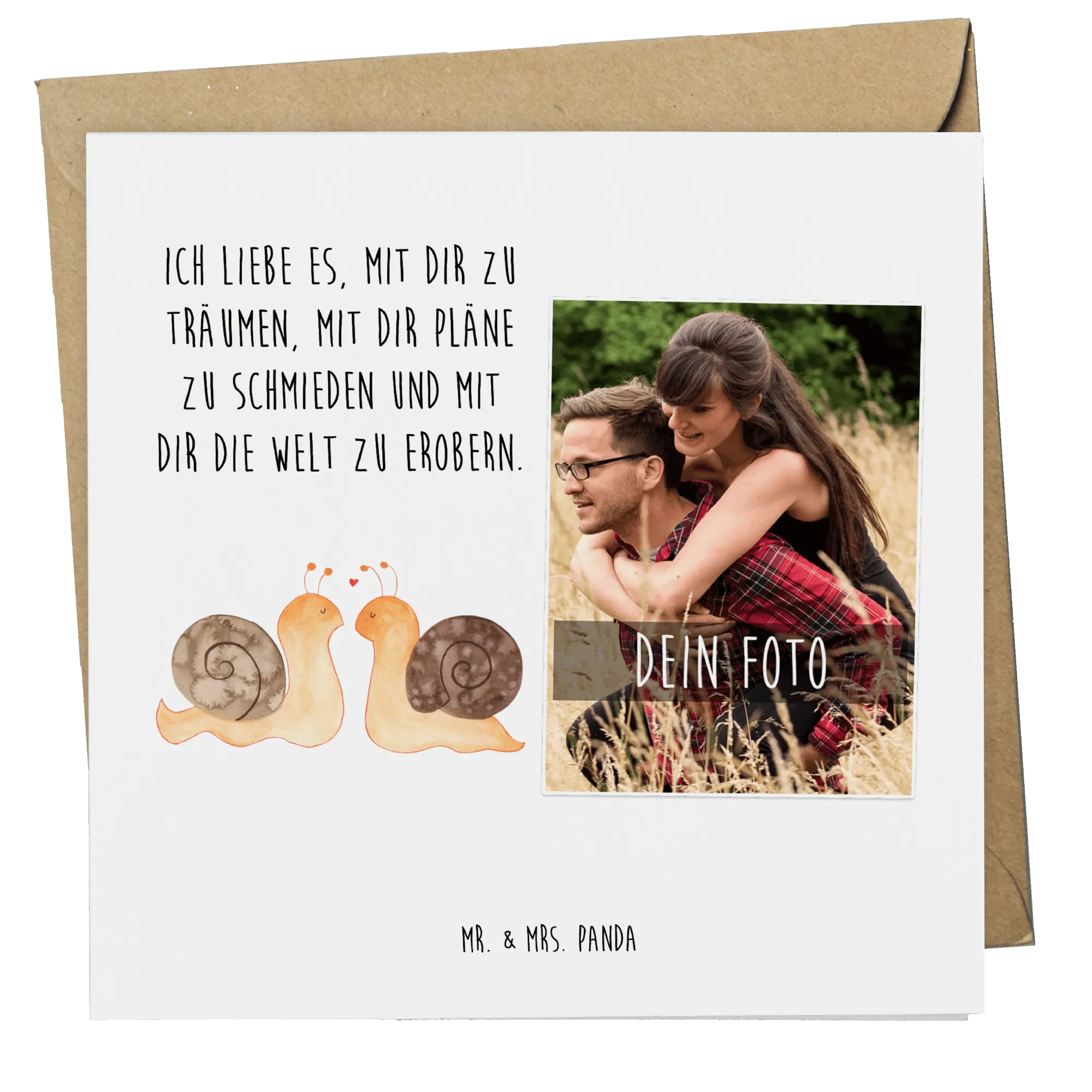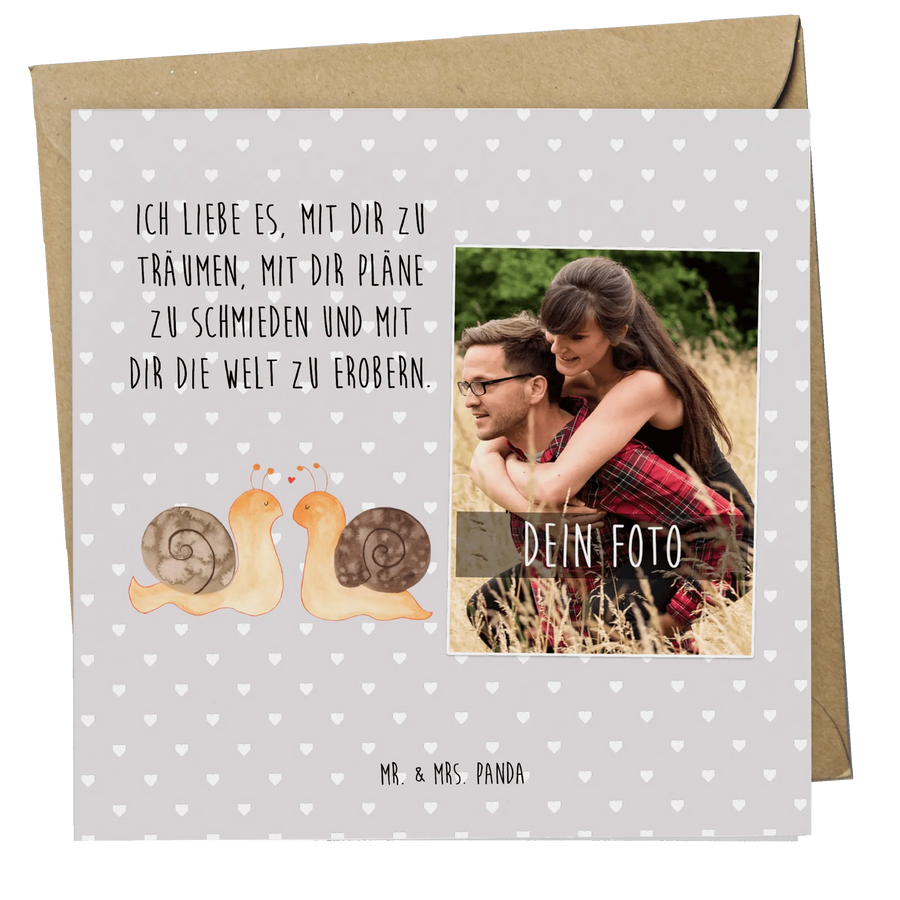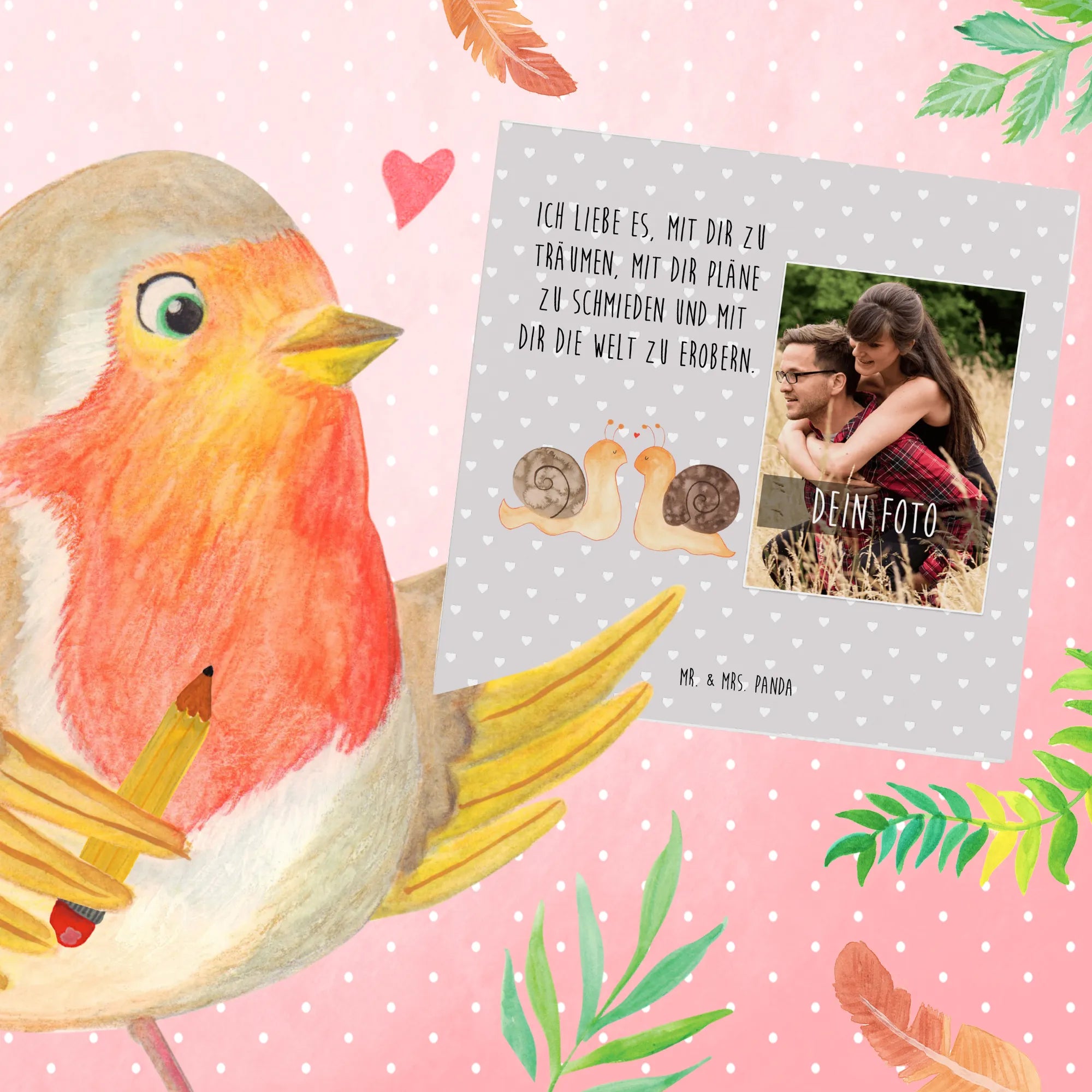 Personalized Photo Deluxe Card Snails in love - Grey Pastel