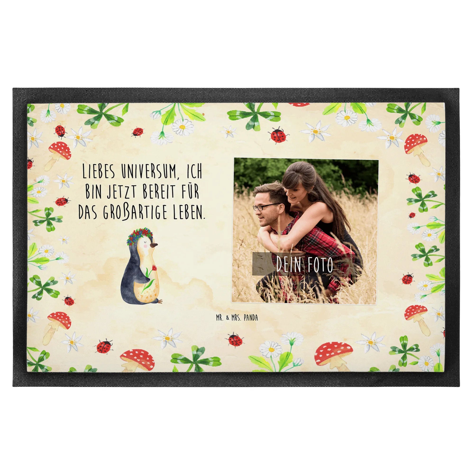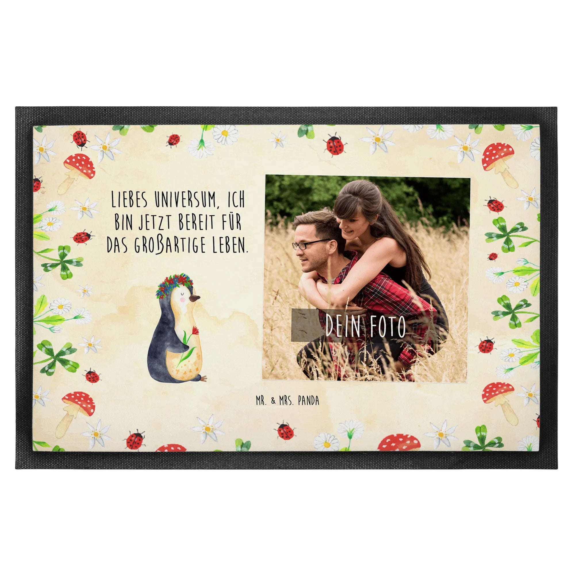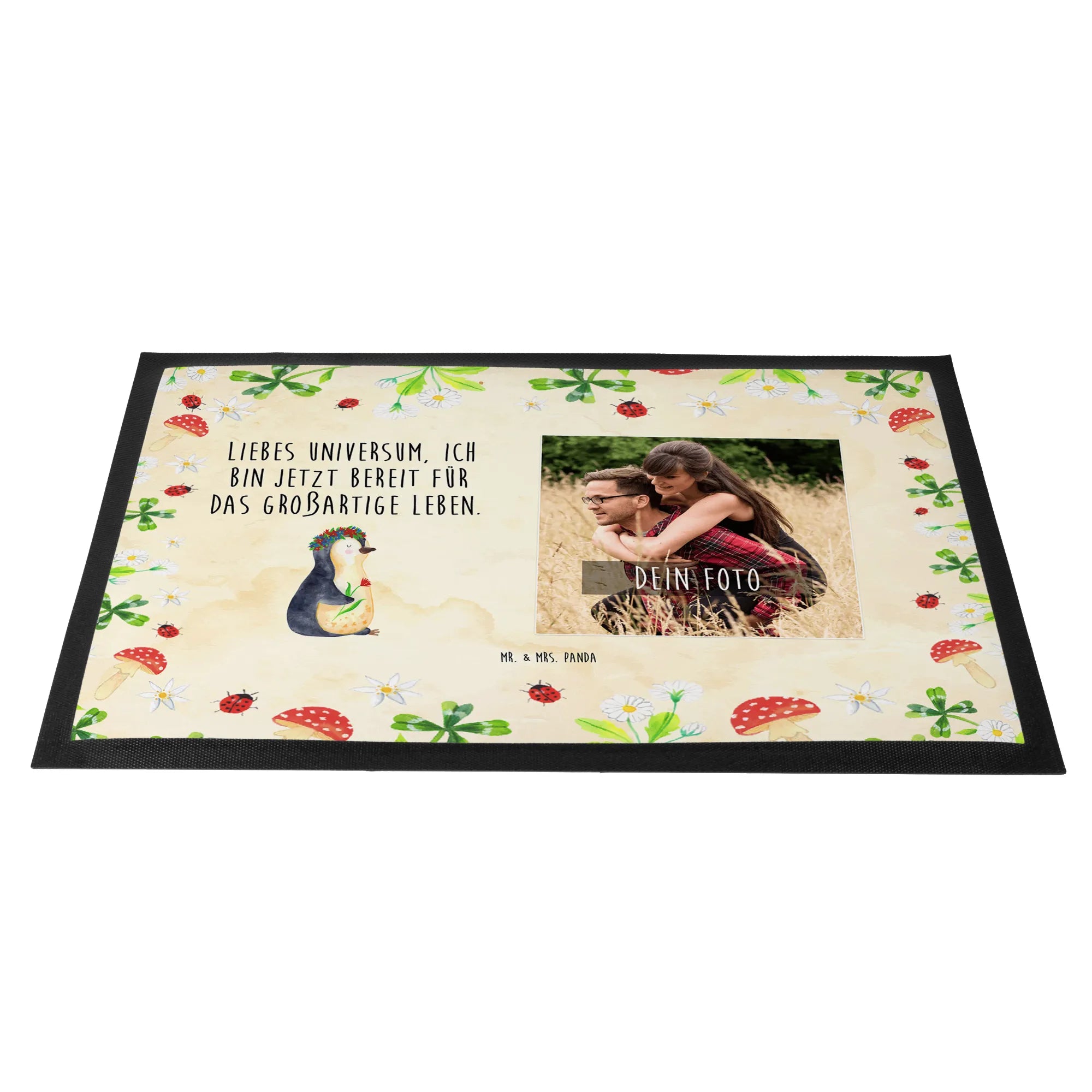 Personalized Photo Doormat Penguin Flower - 60 x 90 cm