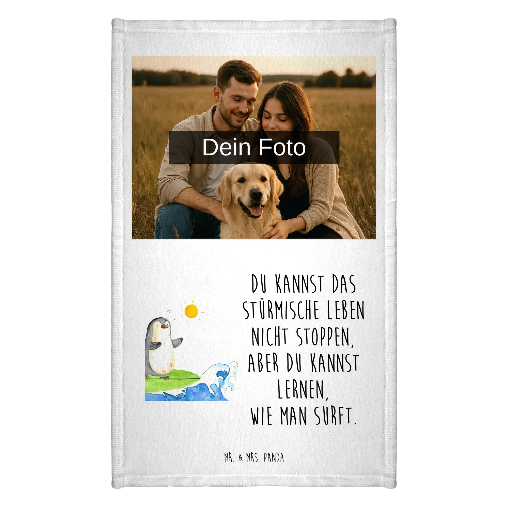 Personalized Photo Guest Towel Penguin surfer