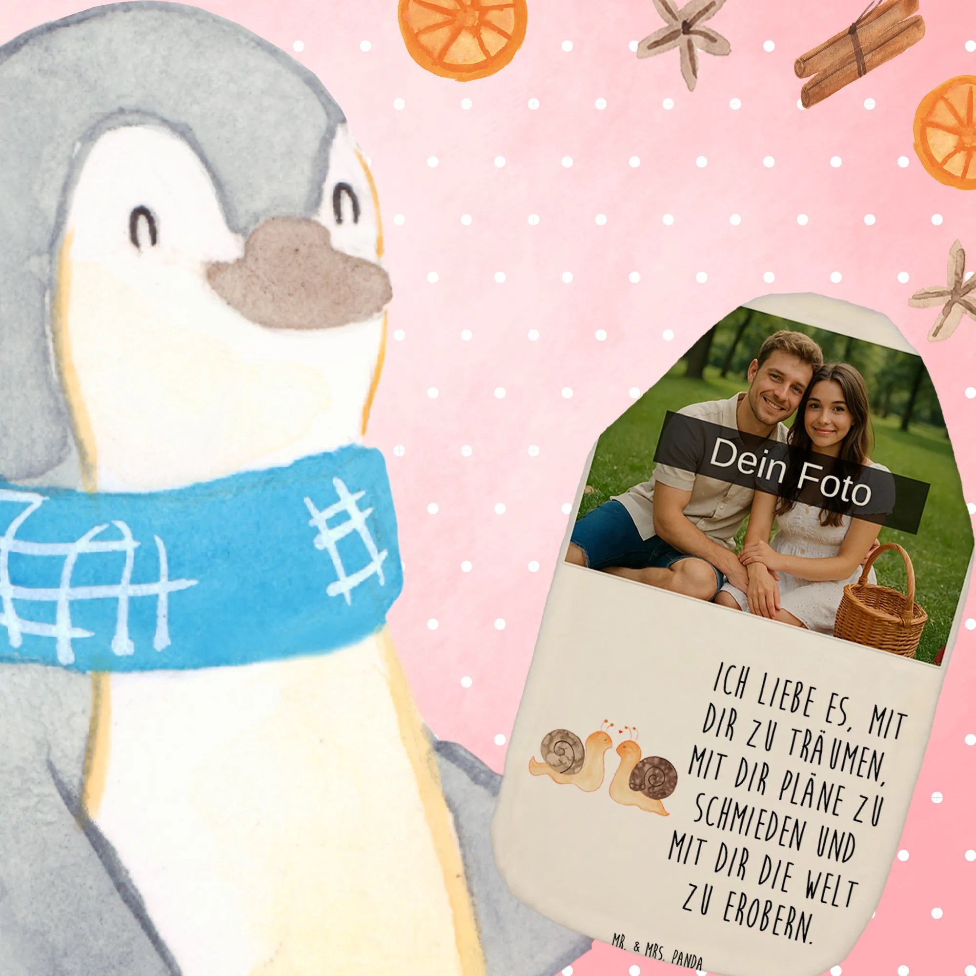 Personalized Photo Hot Water Bottle Snails in love – Mr. & Mrs. Panda