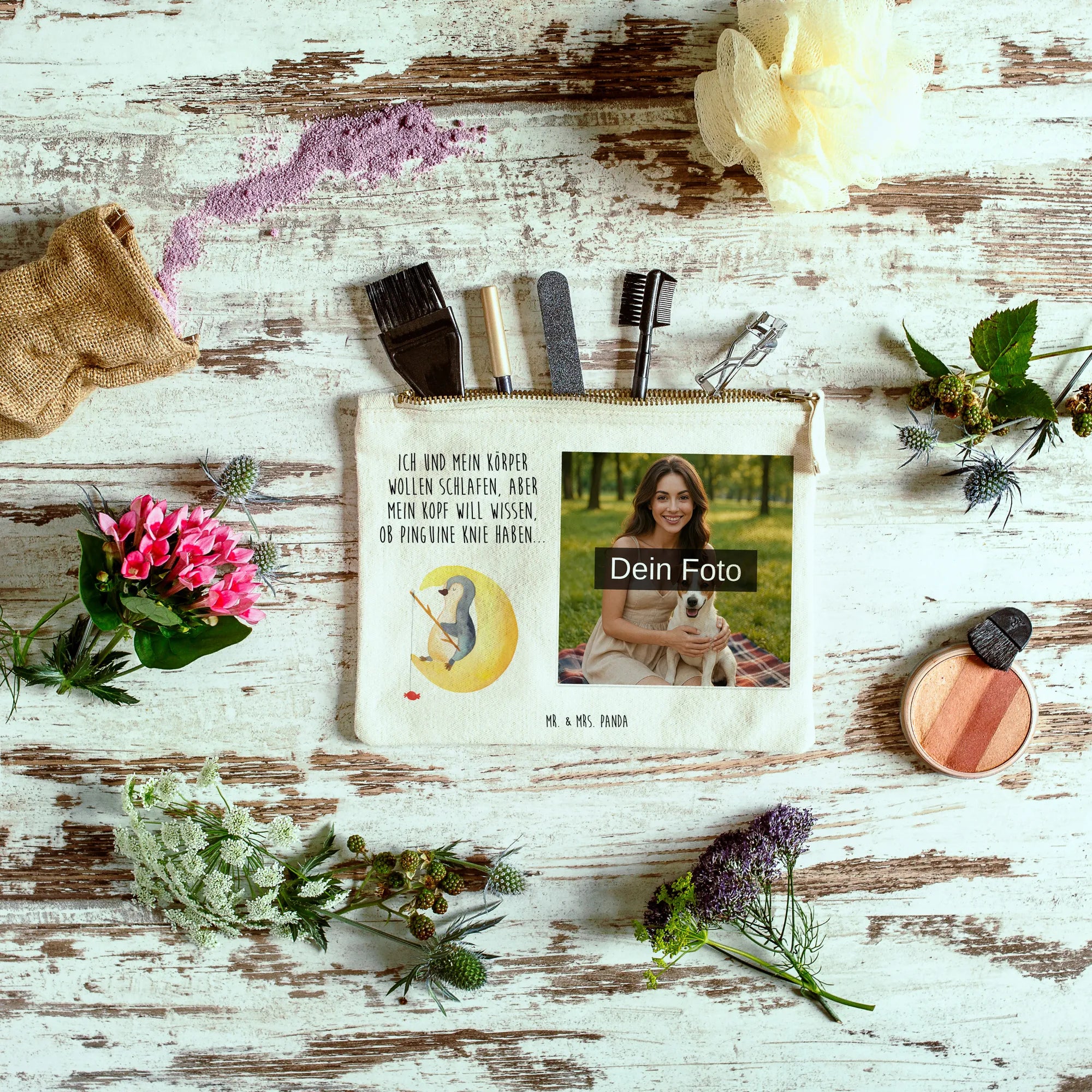 Personalized Photo Makeup Bag Penguin moon - Größe S Klein