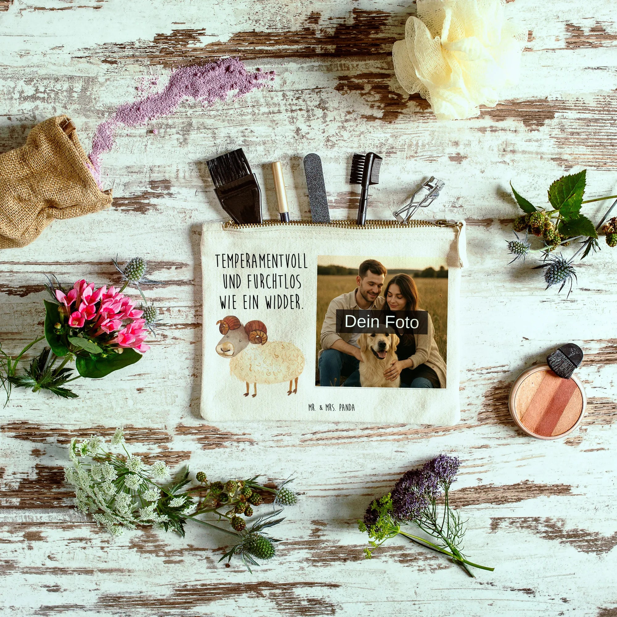 Make it yours with our Custom Photo Makeup Bag — a playful and practical pouch from Mr. & Mrs. Panda that carries a little story wherever you go. We love to print cute motifs and cheeky sayings on soft cotton, and then add your chosen photo so the result is totally personal. The material is 100% soft cotton and the pouch keeps its shape thanks to carefully hemmed and tucked inner seams. Choose from multiple sizes; one popular option measures (18 x 10 x 6 cm), perfect for a compact makeup kit or a tidy pencil case. For the best outcome, please upload a high-resolution photo so the print is crisp, and check the crop to avoid cutting out faces or details. Only upload images you have rights to or permission for — especially when people are visible. This bag is wonderfully versatile: cosmetics, receipts, chargers, art supplies — it does it all. Care is easy: lukewarm hand wash is recommended to preserve the print and the cotton. Whether for a birthday, bridesmaid gift, or a little self-love present, this Custom Photo Makeup Bag is a sweet, practical companion.