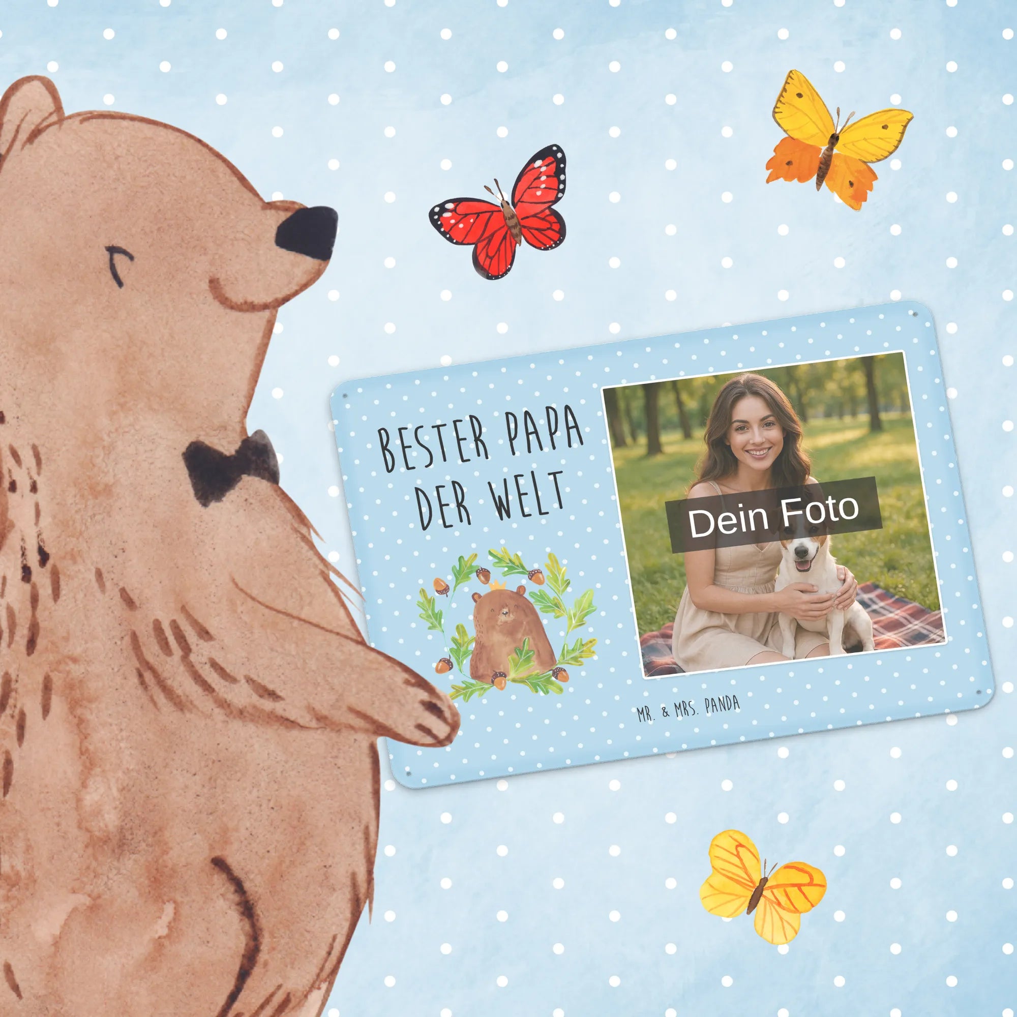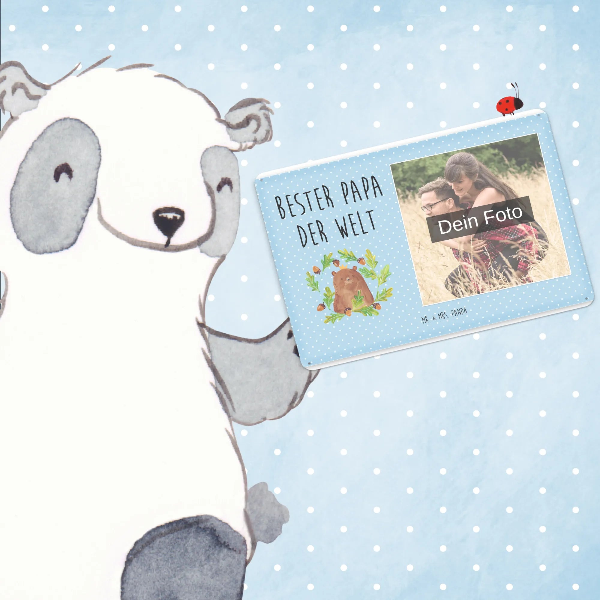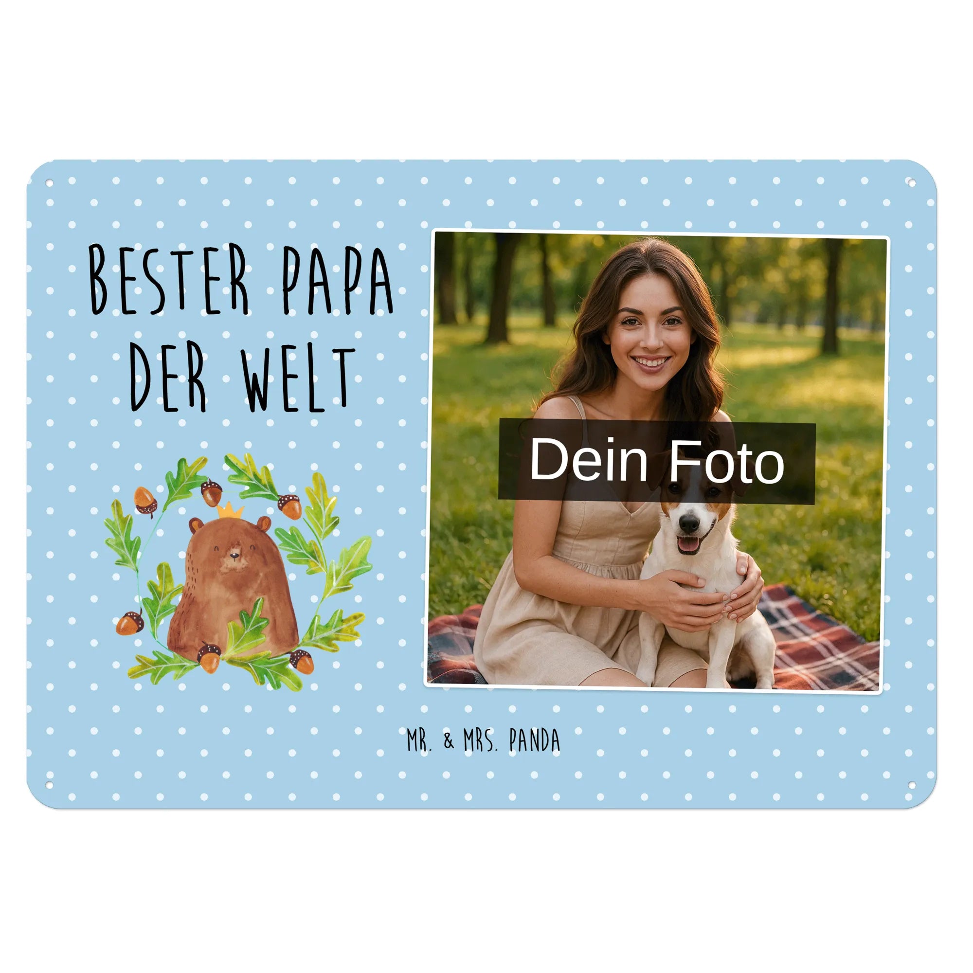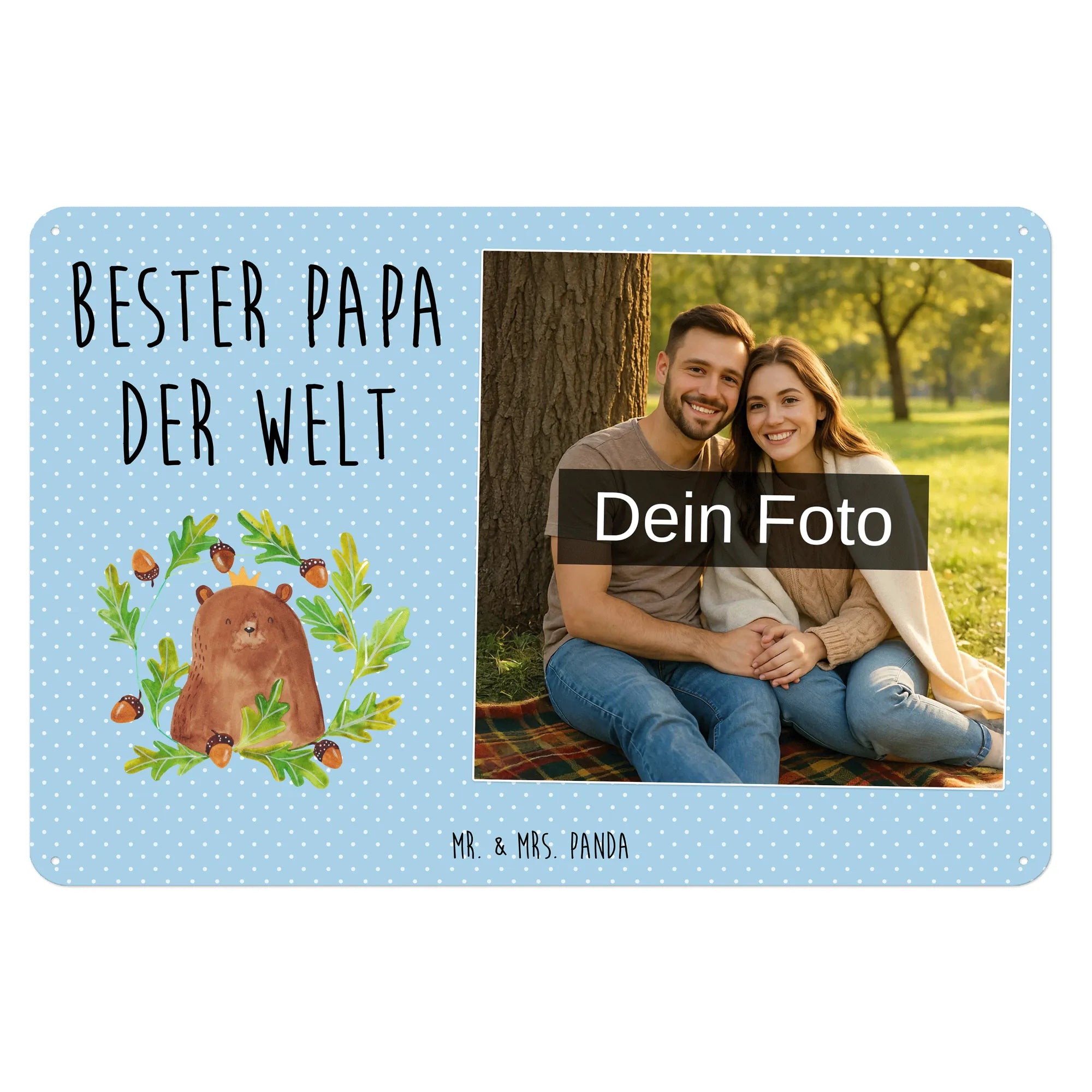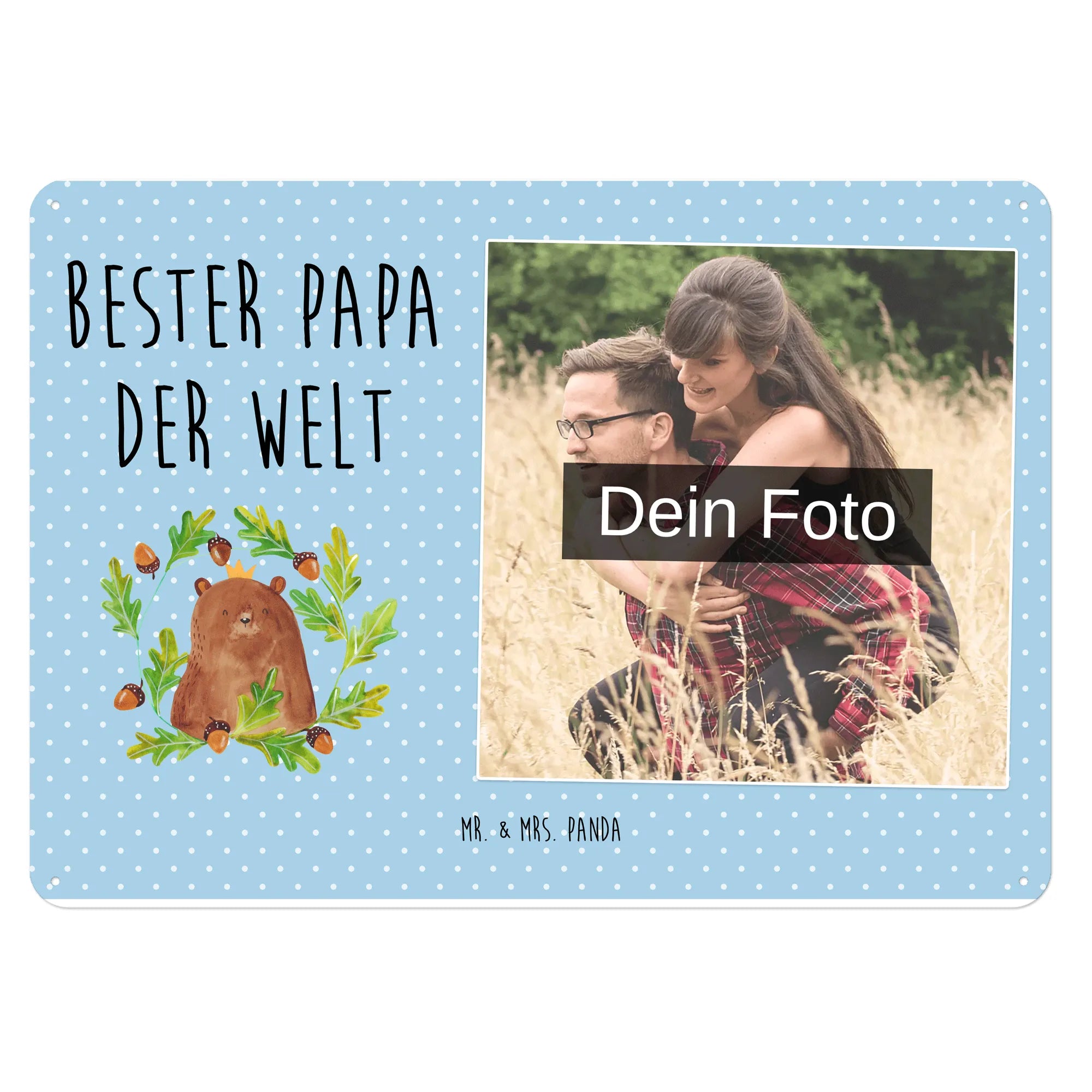 Mach es persönlich: Lade dein Foto hoch und gestalte jetzt dein Foto-Blechschild personalisiert mit Mr. & Mrs. Panda – schnell, einfach und liebevoll gestaltet.