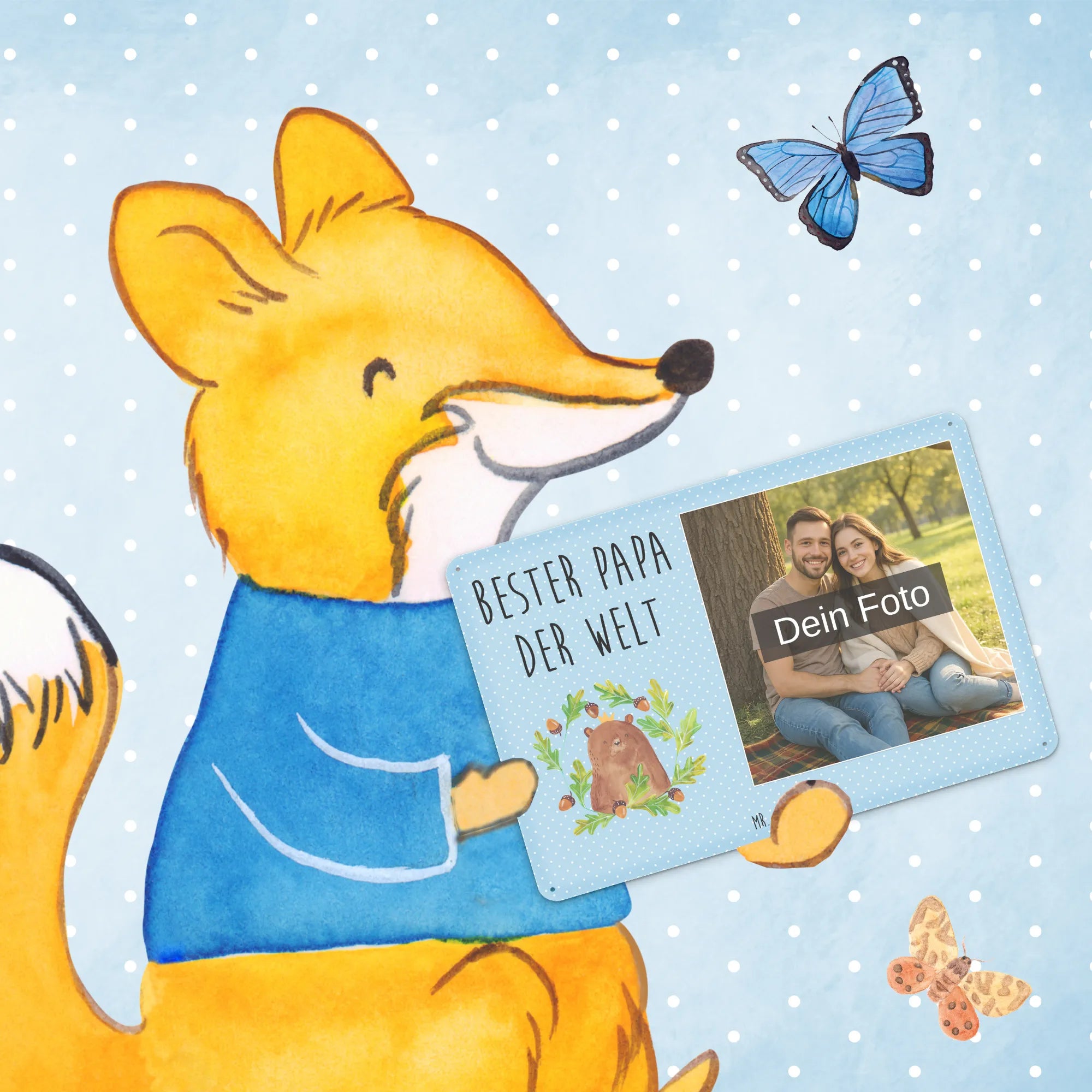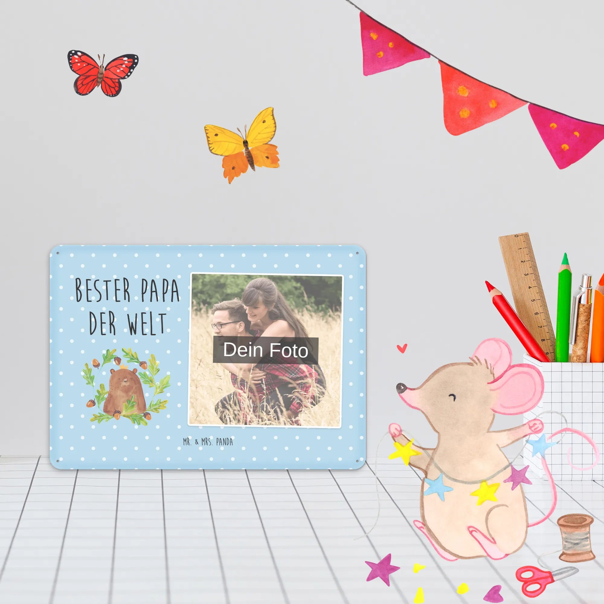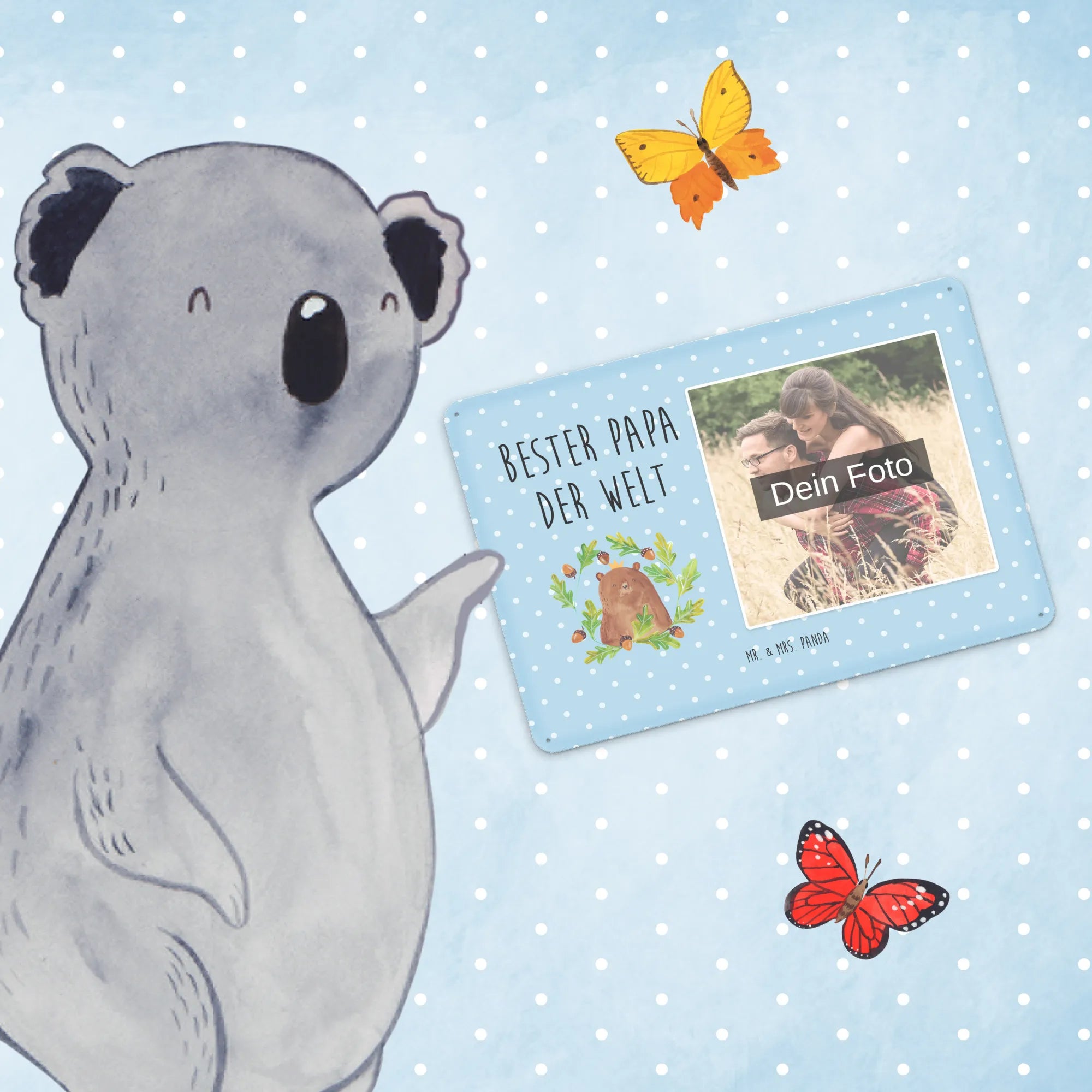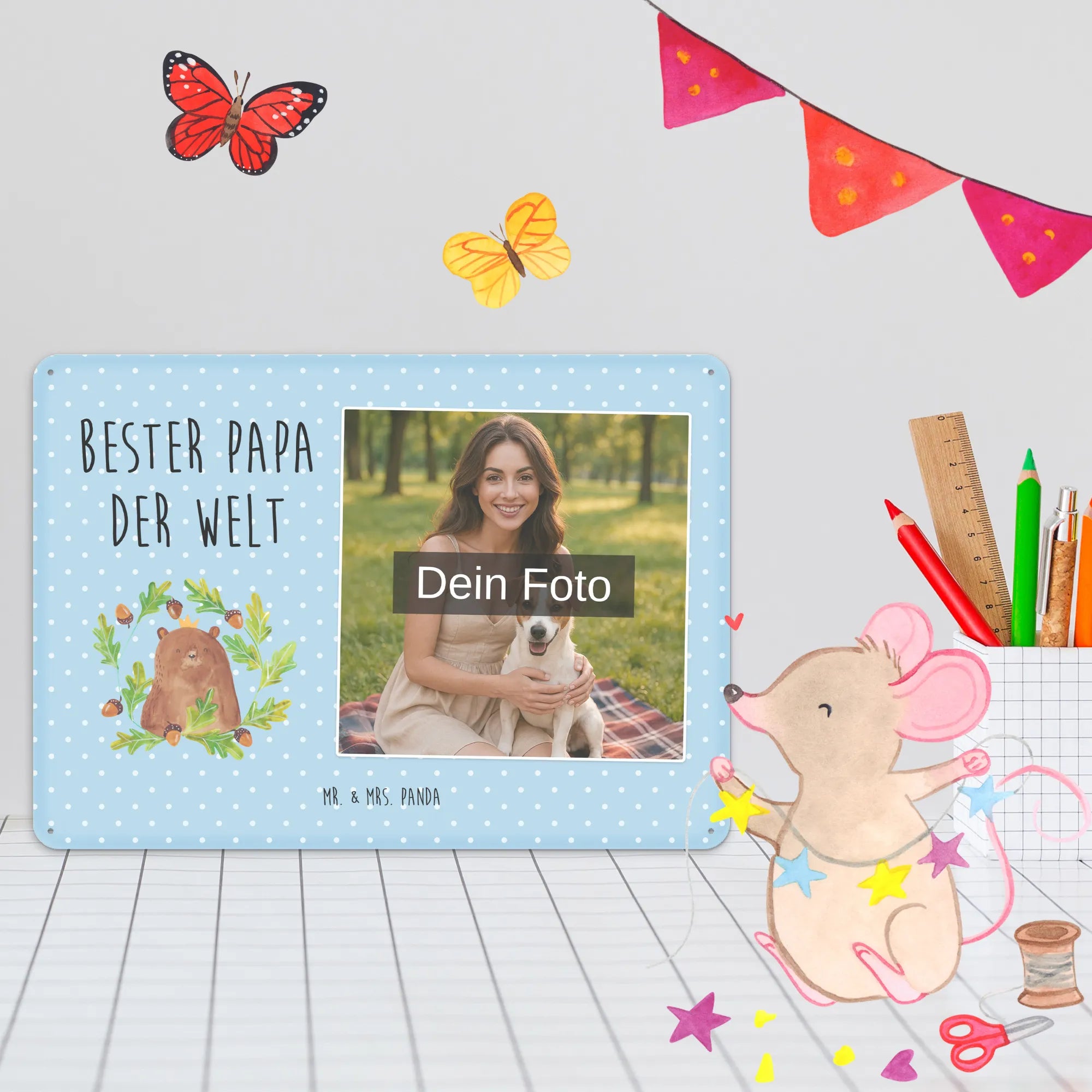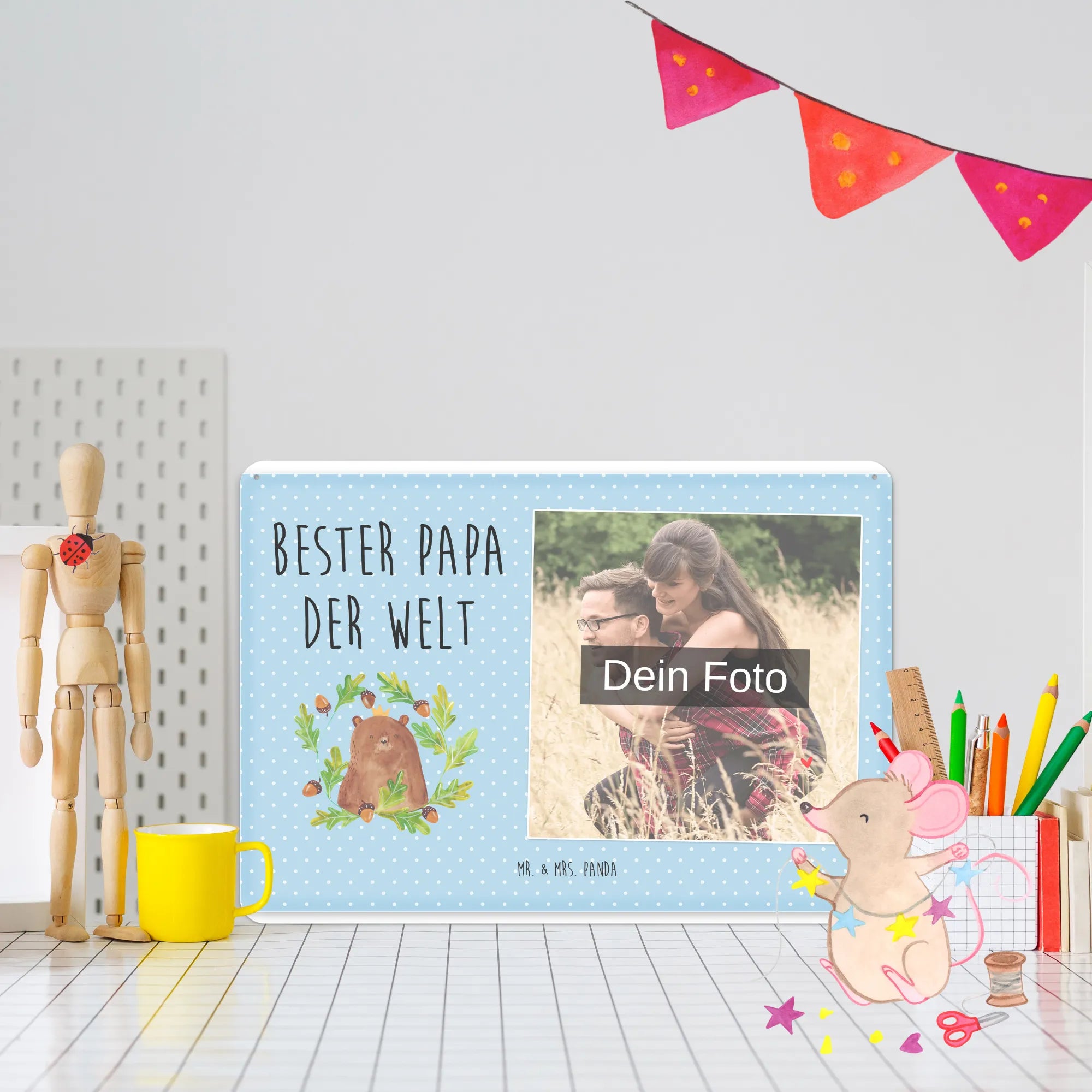 Mach es persönlich: Lade dein Foto hoch und gestalte jetzt dein Foto-Blechschild personalisiert mit Mr. & Mrs. Panda – schnell, einfach und liebevoll gestaltet.