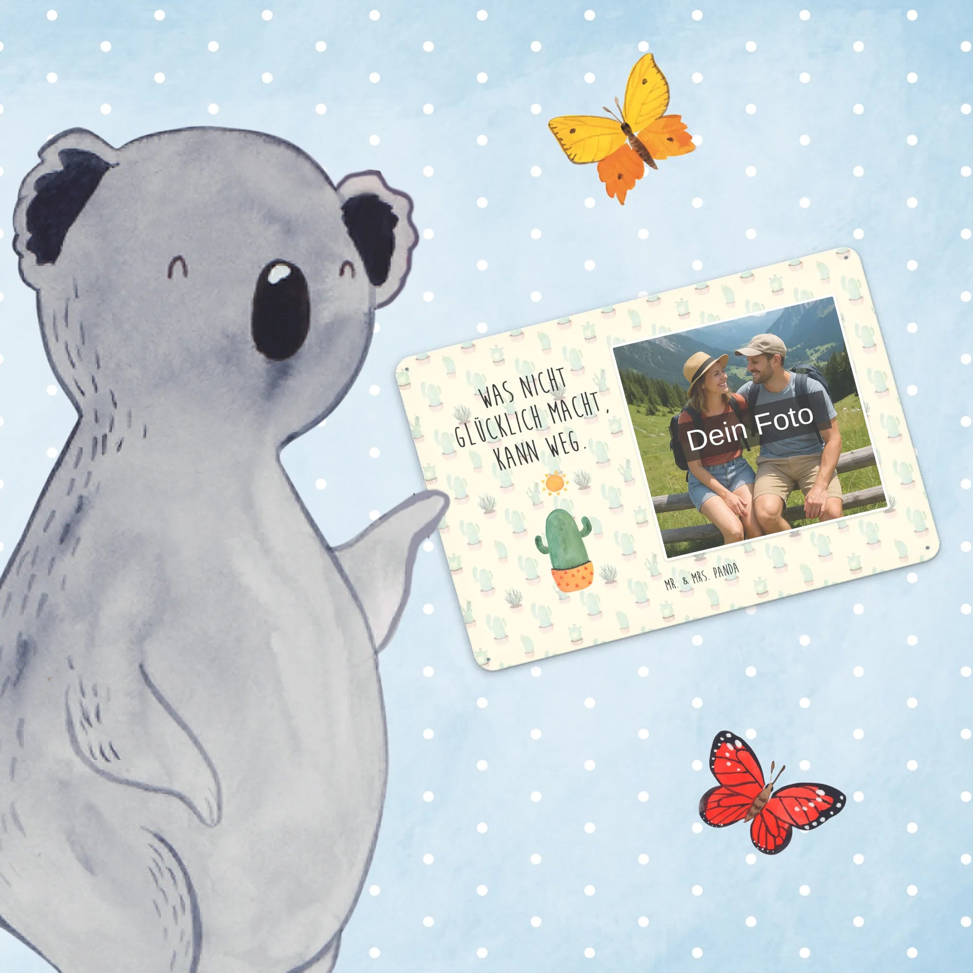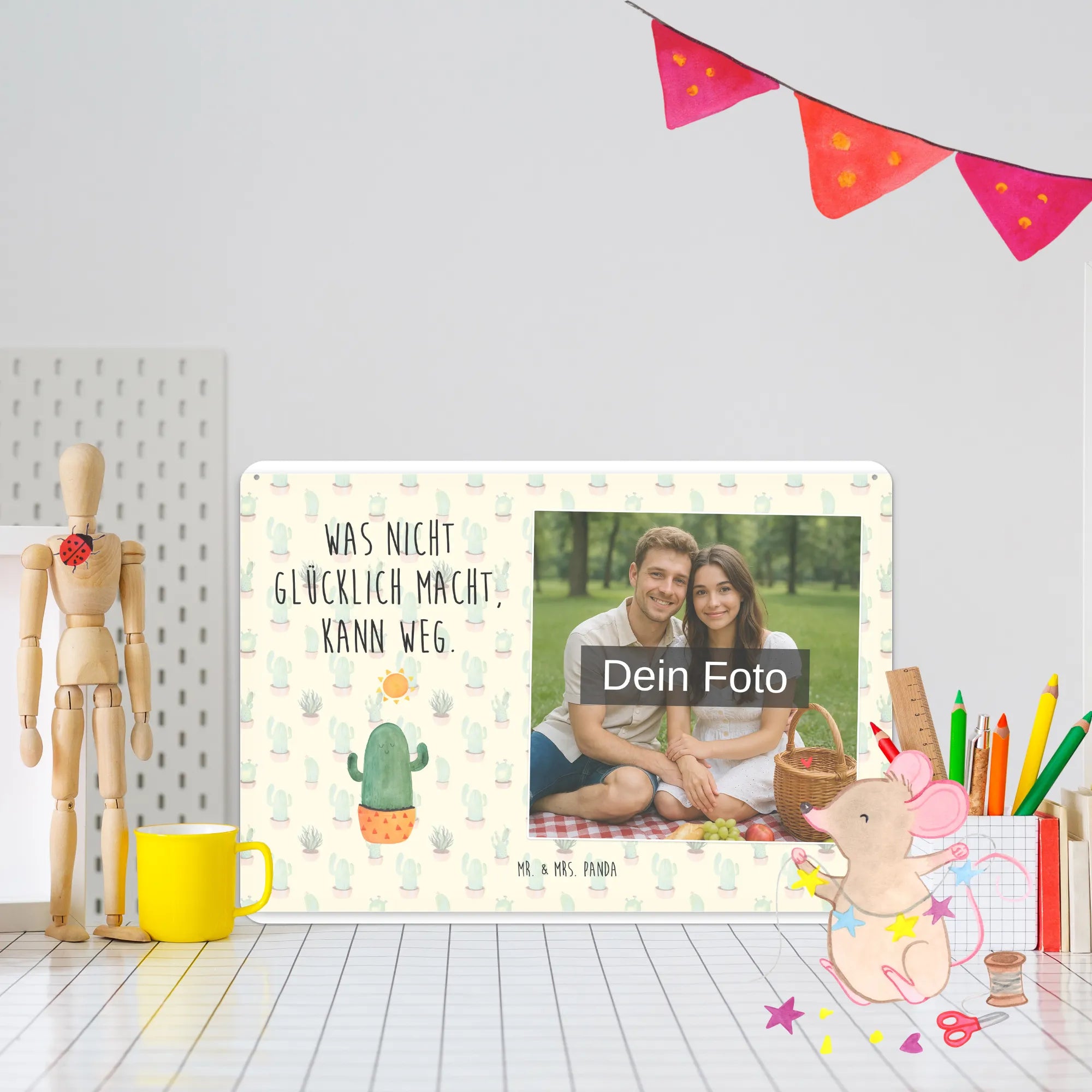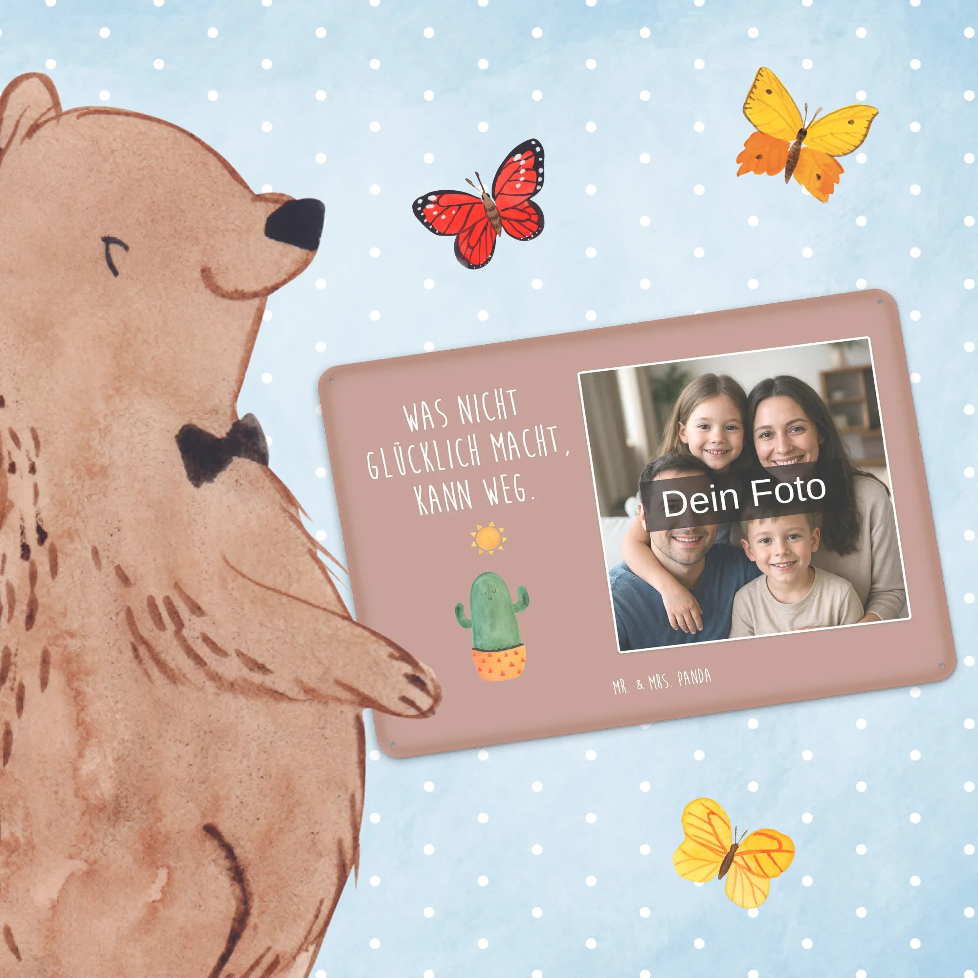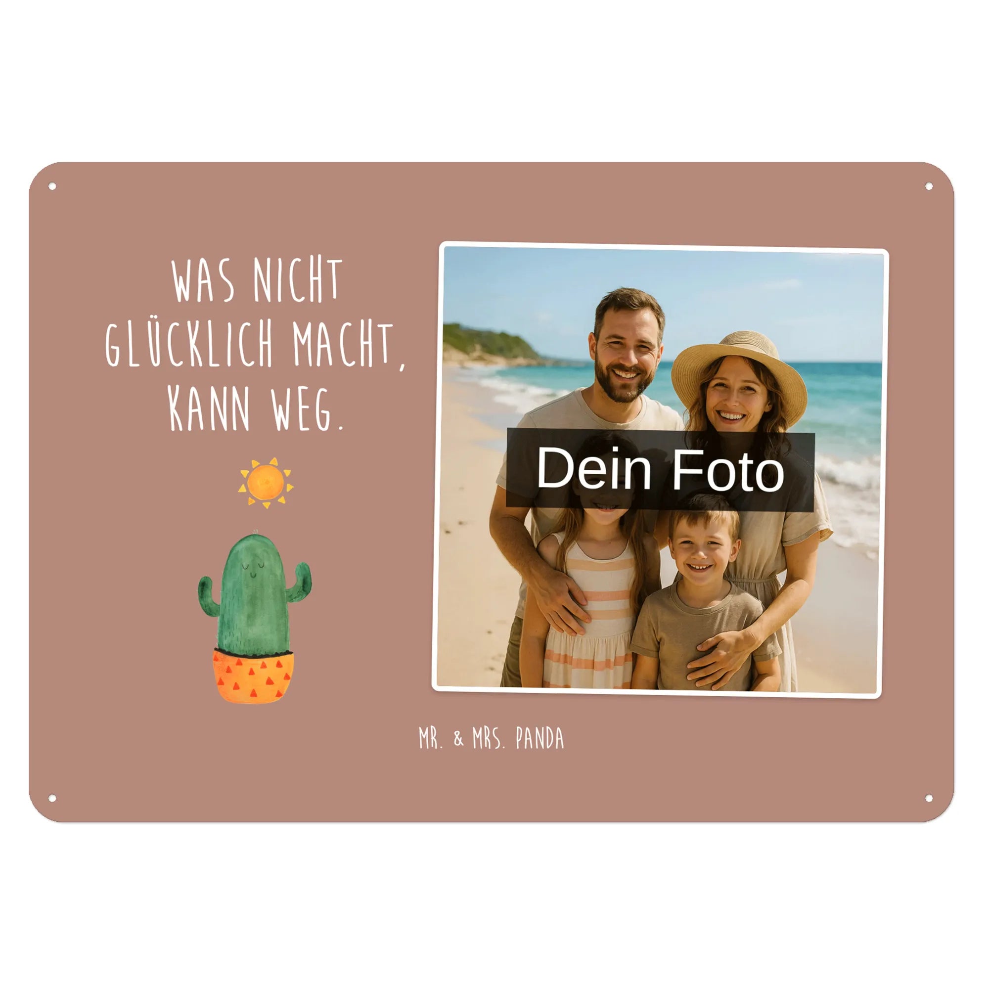 Personalized Photo Metal Sign cactus Sun - DIN A6 - Pastel Brown