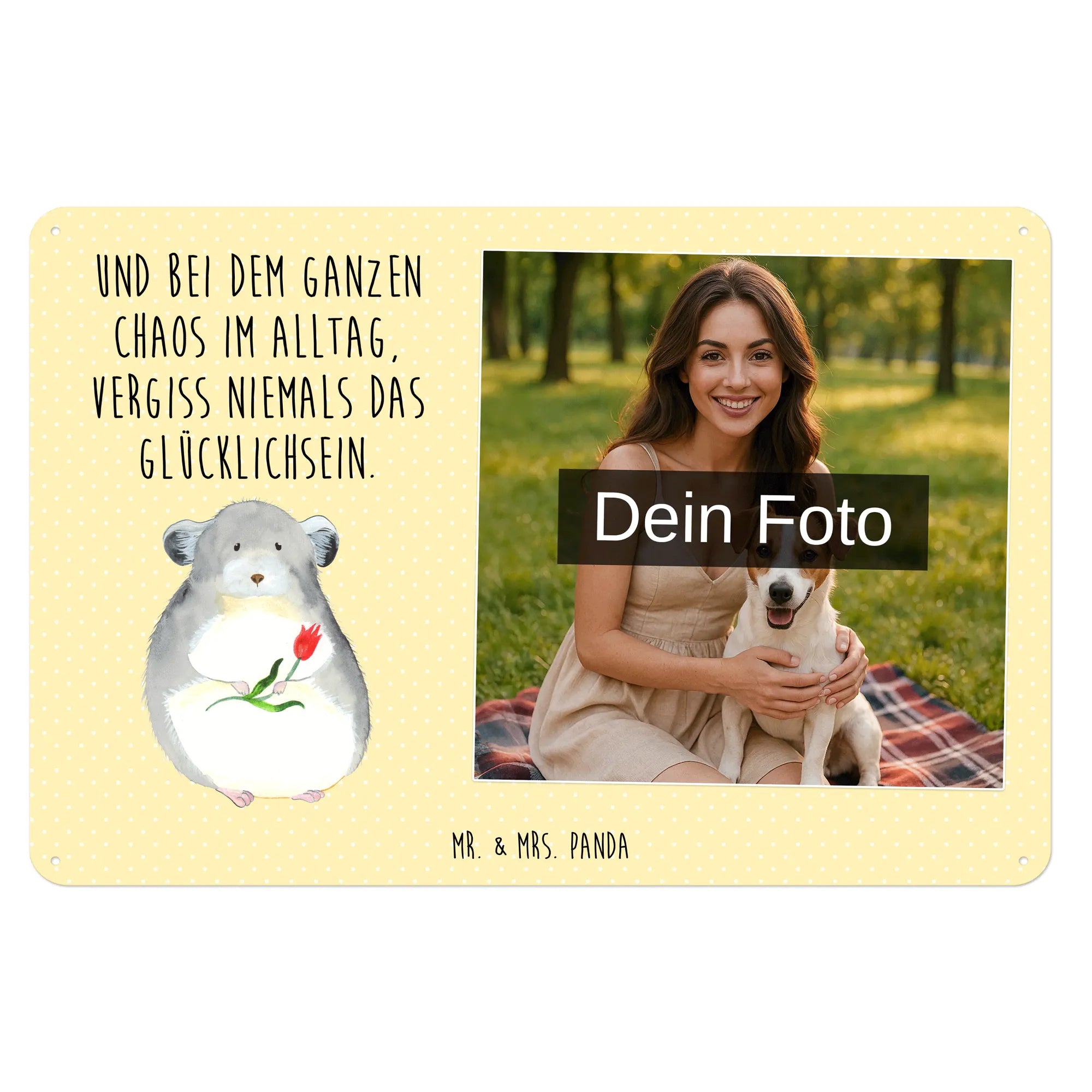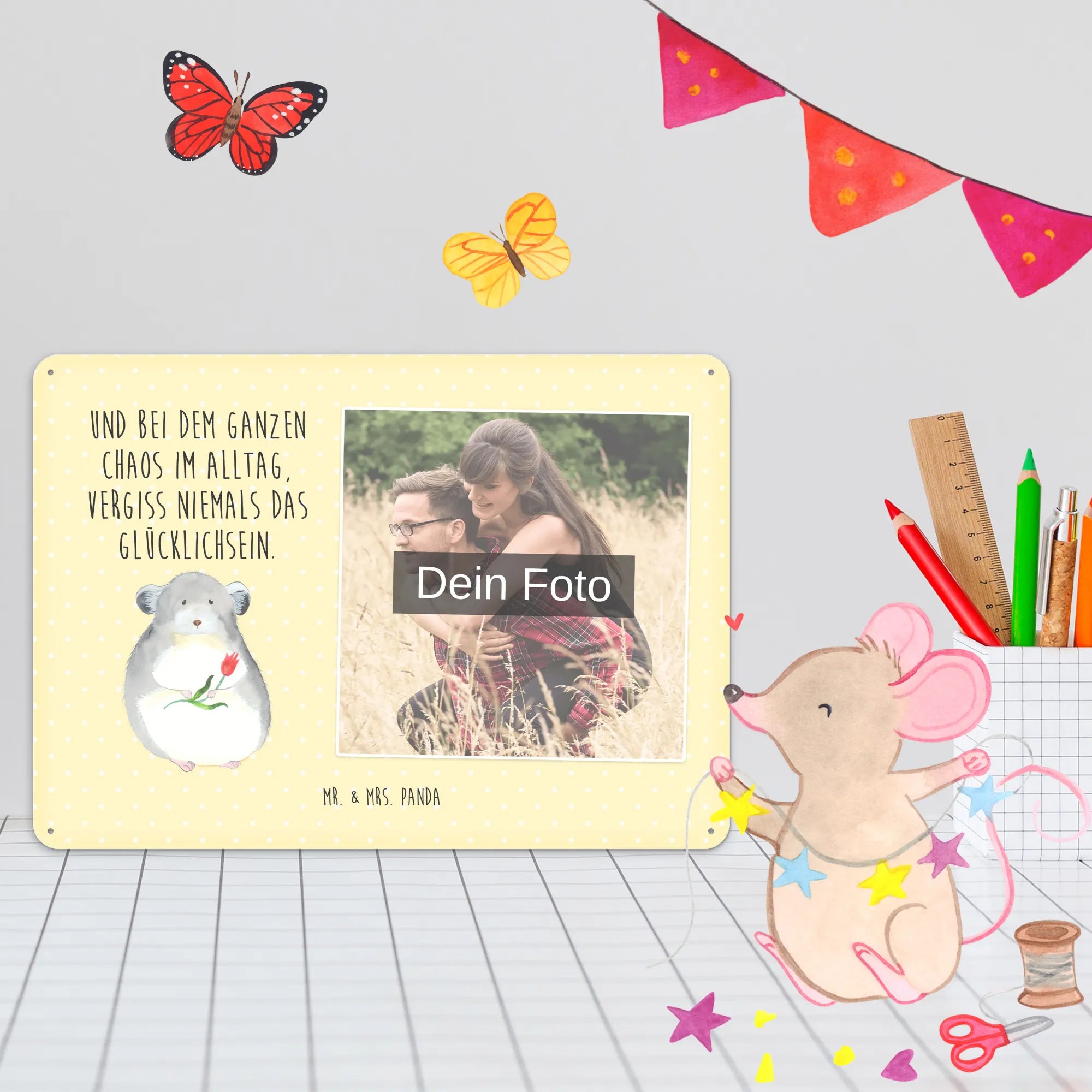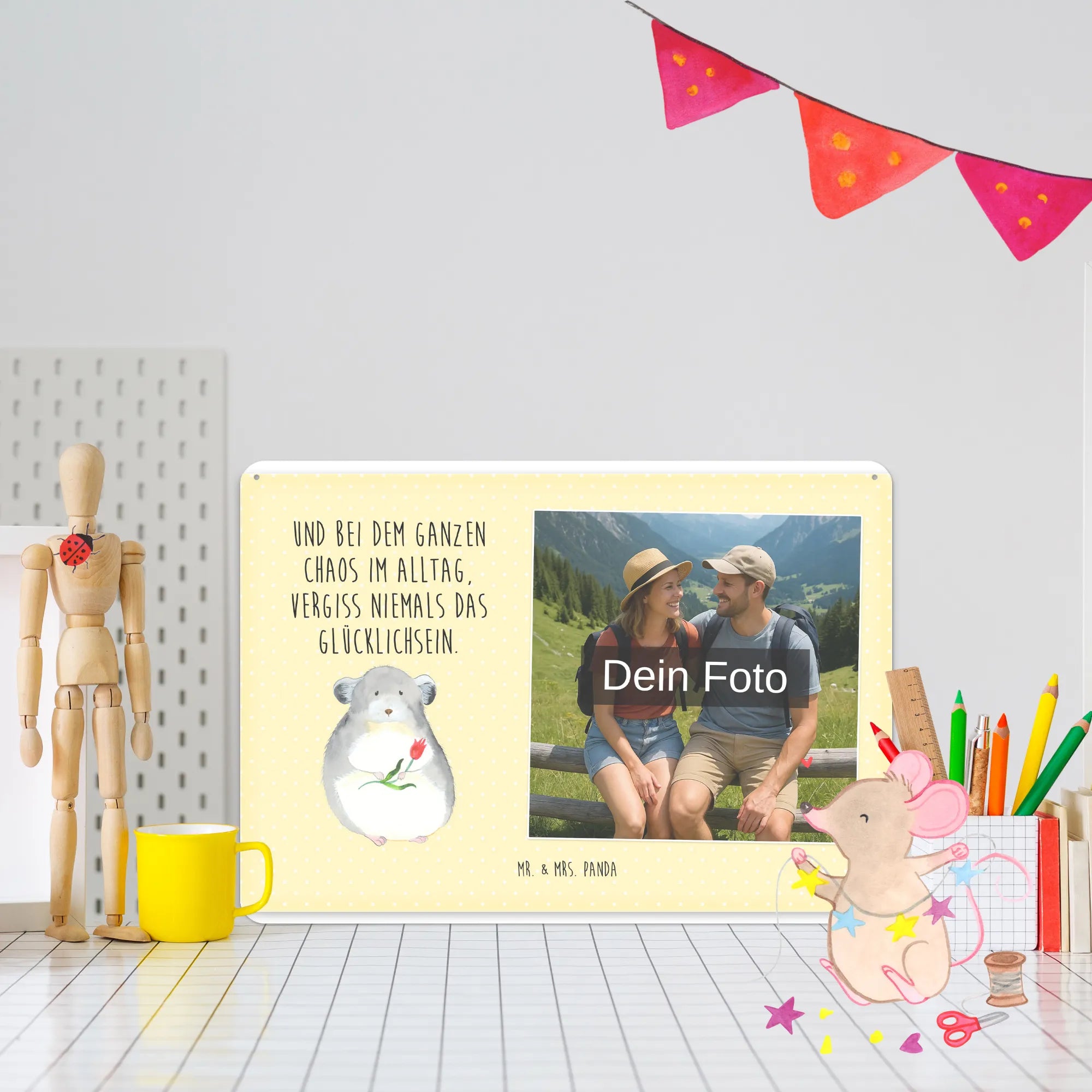Personalized Photo Metal Sign chinchilla flower - DIN A6 - Pastel Yellow