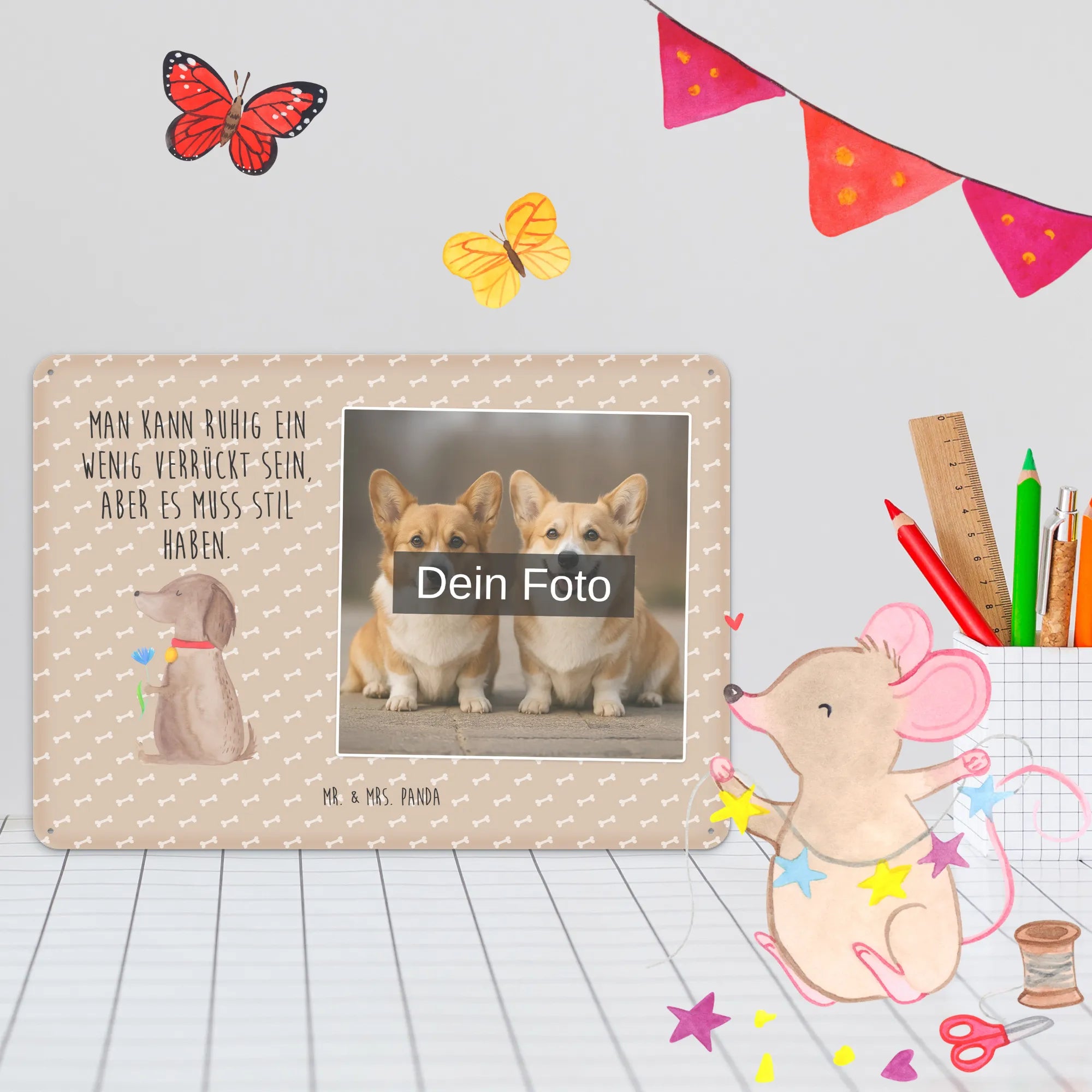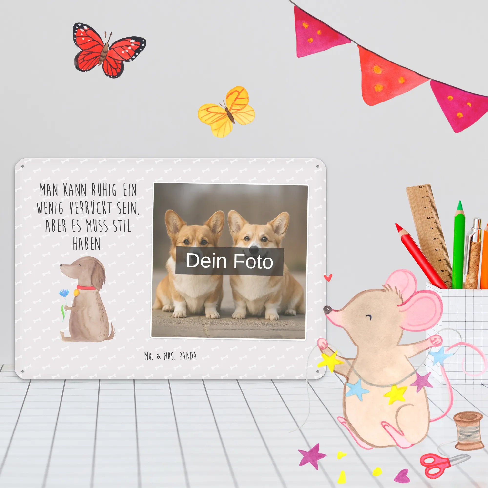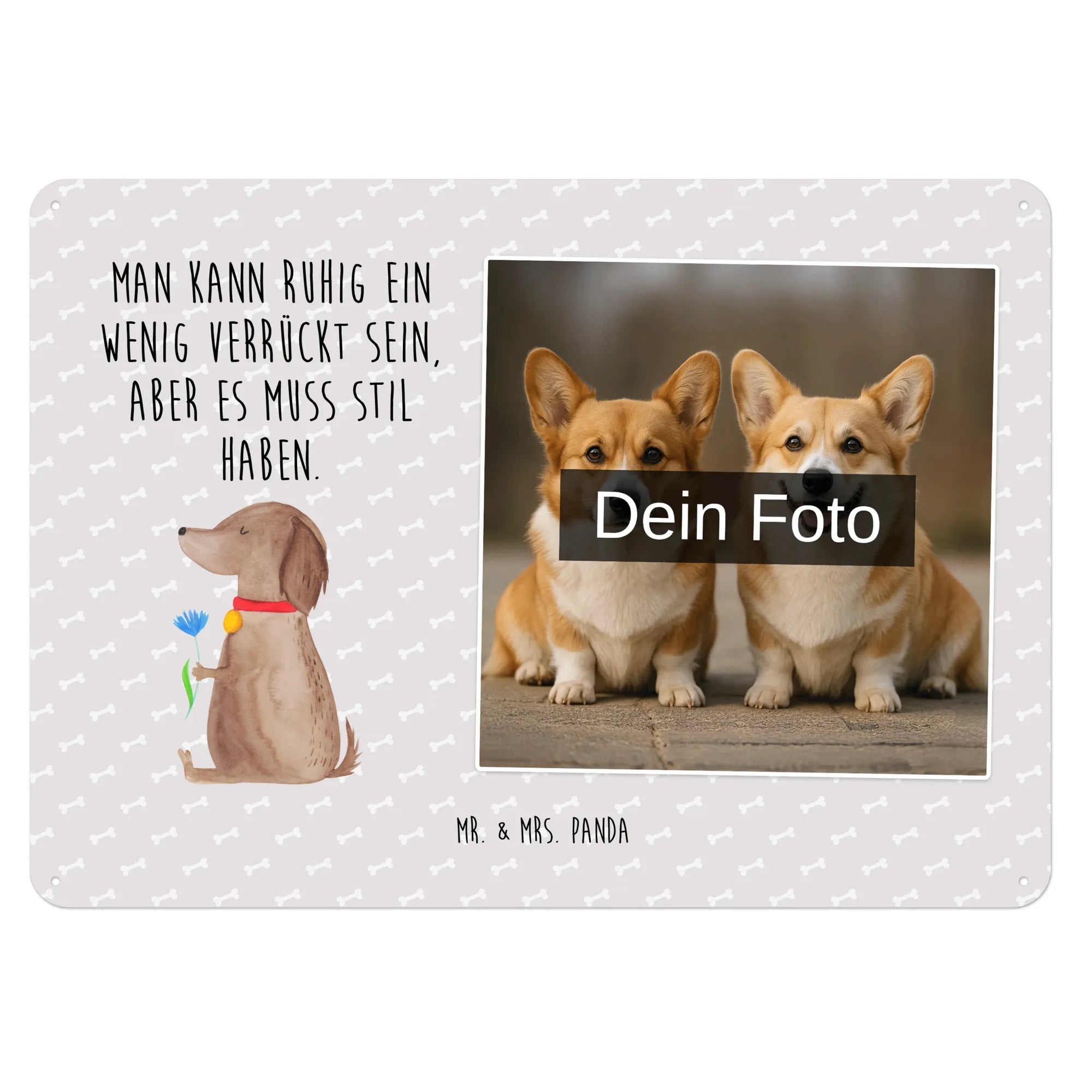Personalized Photo Metal Sign Dog flower - DIN A6 - Hundeglück