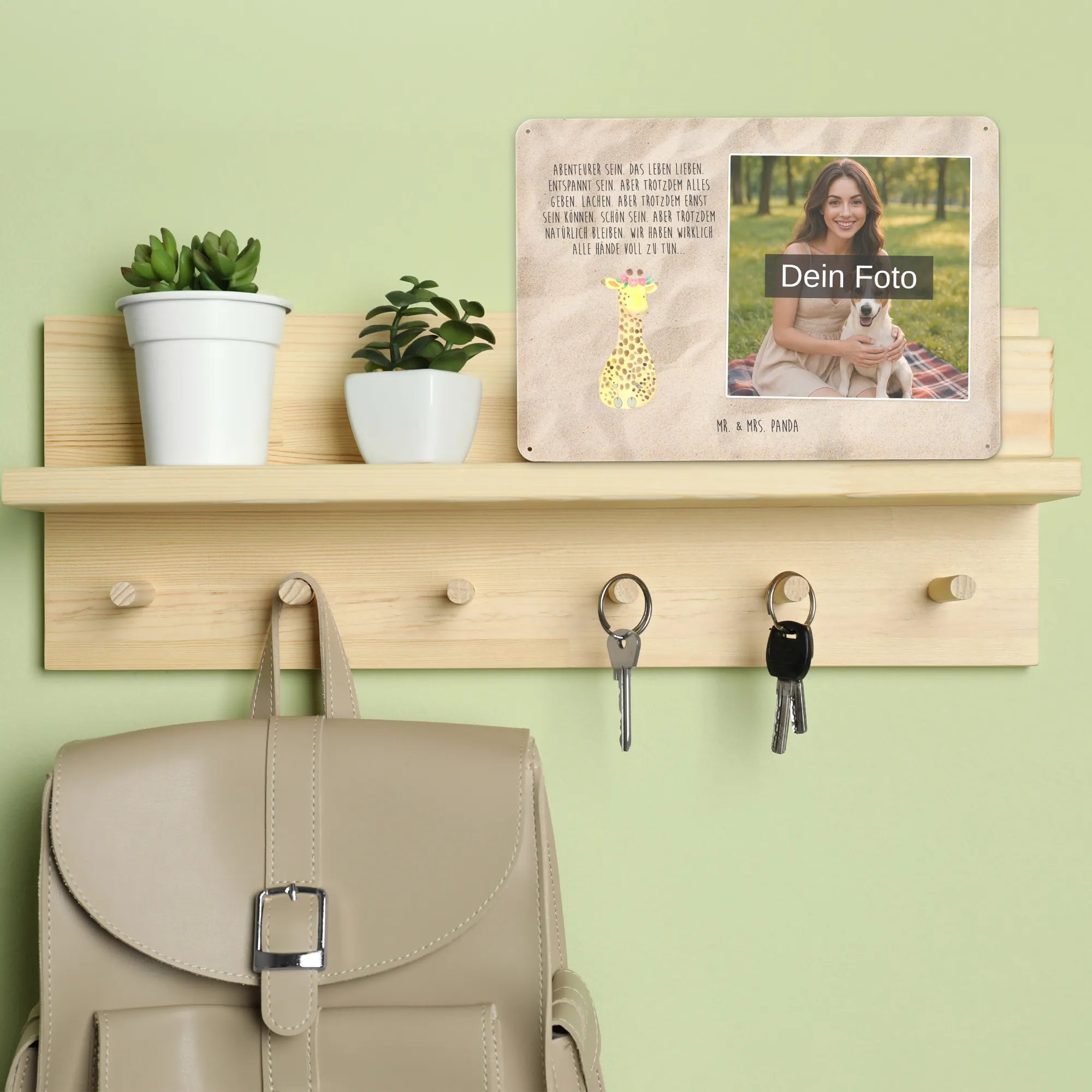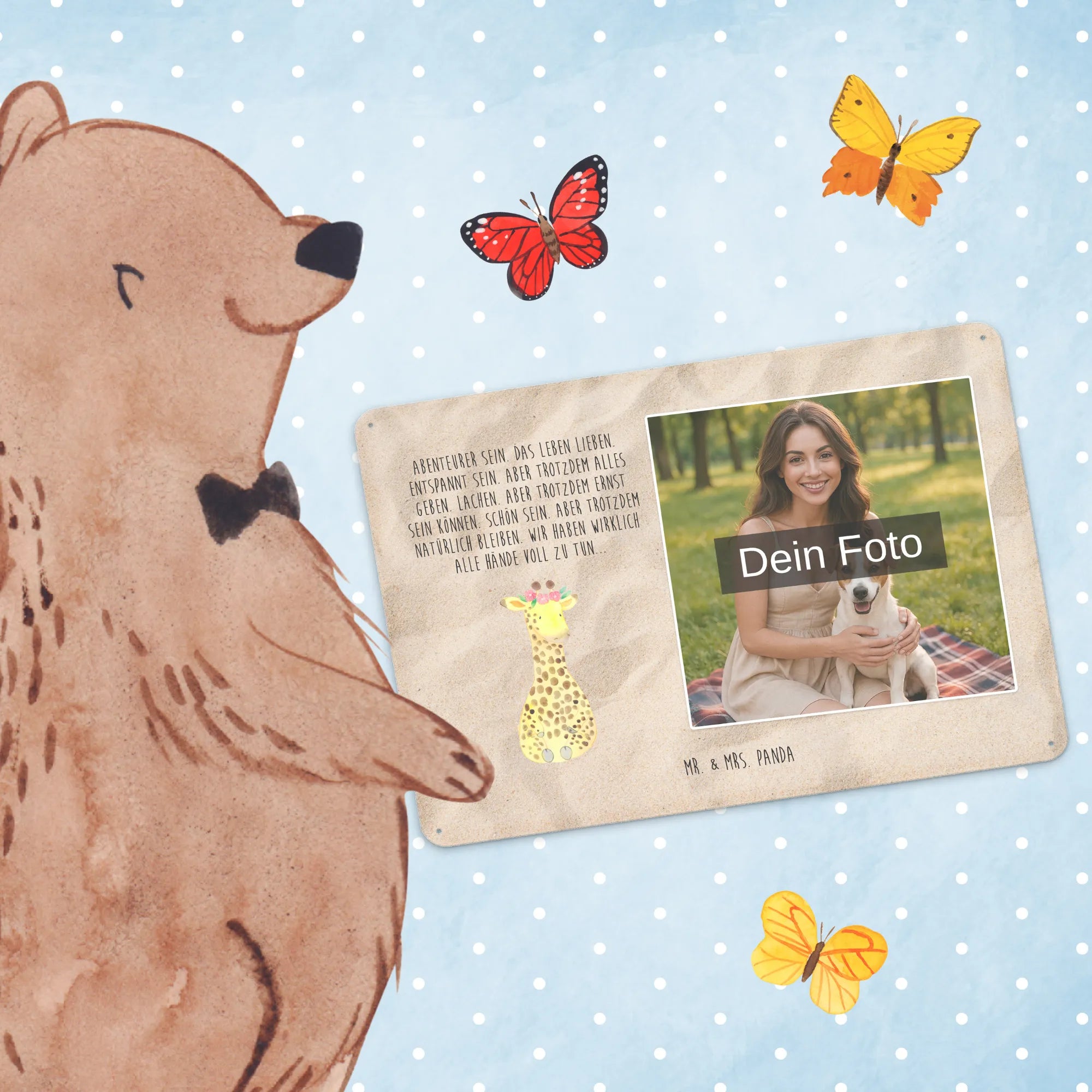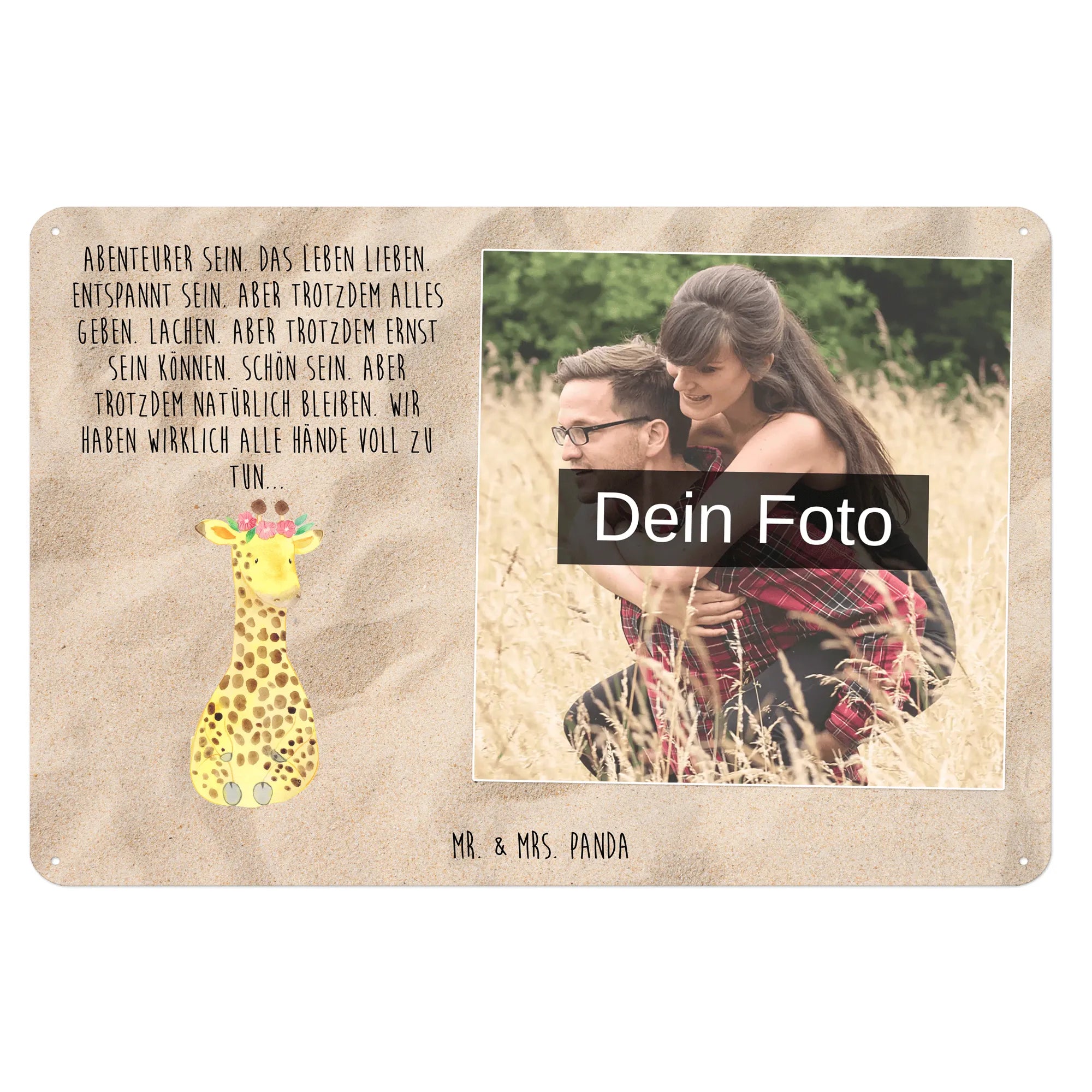Personalized Photo Metal Sign giraffe flower wreath - DIN A6