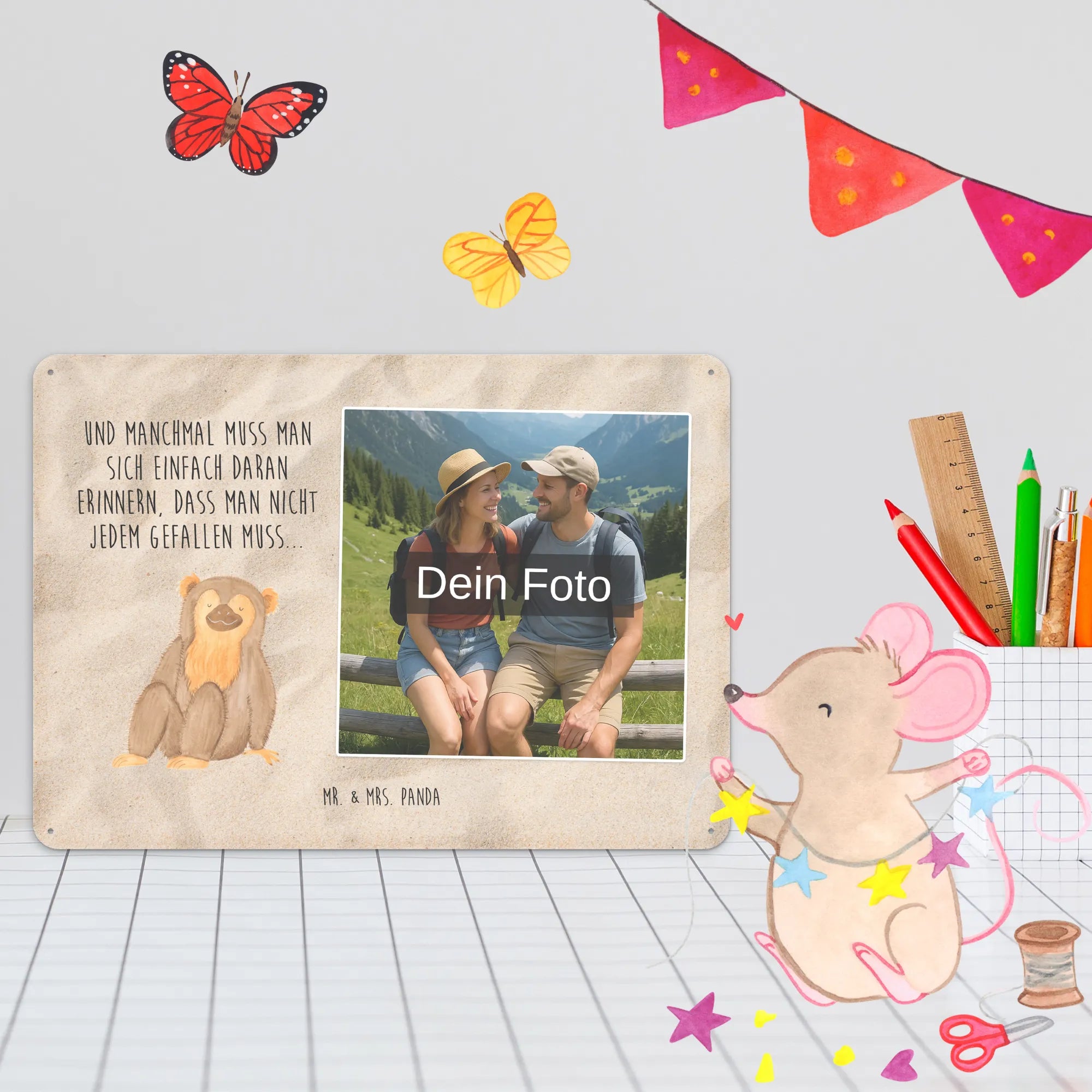 Ein personalisiertes Foto Blechschild von Mr. & Mrs. Panda – edel, freundlich und wunderbar als Geschenk. Unsere Motive und Sprüche verleihen deinem Foto zusätzlichen Charme, gedruckt wird auf hochwertigem Stahlblech ohne Wölbung mit seidenmatter, langlebiger Oberfläche. Maße: 70 mm x 420 mm x 297 mm. Das Schild hat 4 Bohrungen zur Befestigung, sichere umgefaltze Kanten und abgerundete Ecken für ein sauberes Erscheinungsbild. Vor dem Upload deines Wunschfotos: Achte auf hohe Auflösung, einen passenden Bildausschnitt (sieh dir unsere Platzhalter-Vorschau an) und darauf, dass du die Bildrechte besitzt. Perfekt als Türschild oder Wanddeko im Innenbereich, leicht mit einem feuchten Tuch zu reinigen. In verschiedenen Größen erhältlich, sodass du das ideale Format für dein Zuhause findest. Ob als Geschenk für Freunde, Familie oder als persönliche Dekoration – dieses personalisierte Foto Blechschild von Mr. & Mrs. Panda verbindet liebevolle Designs mit hochwertiger Verarbeitung und einfacher Montage. Gestalte dein Unikat und bring ein kleines Stück Panda-Glück in dein Zuhause.