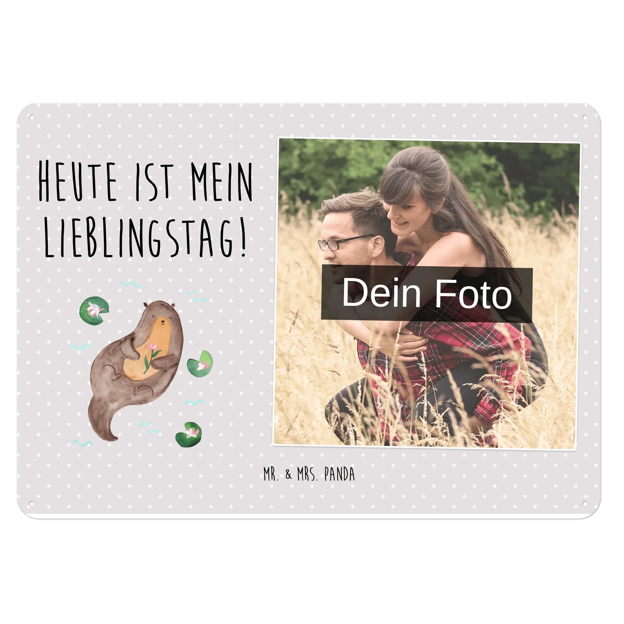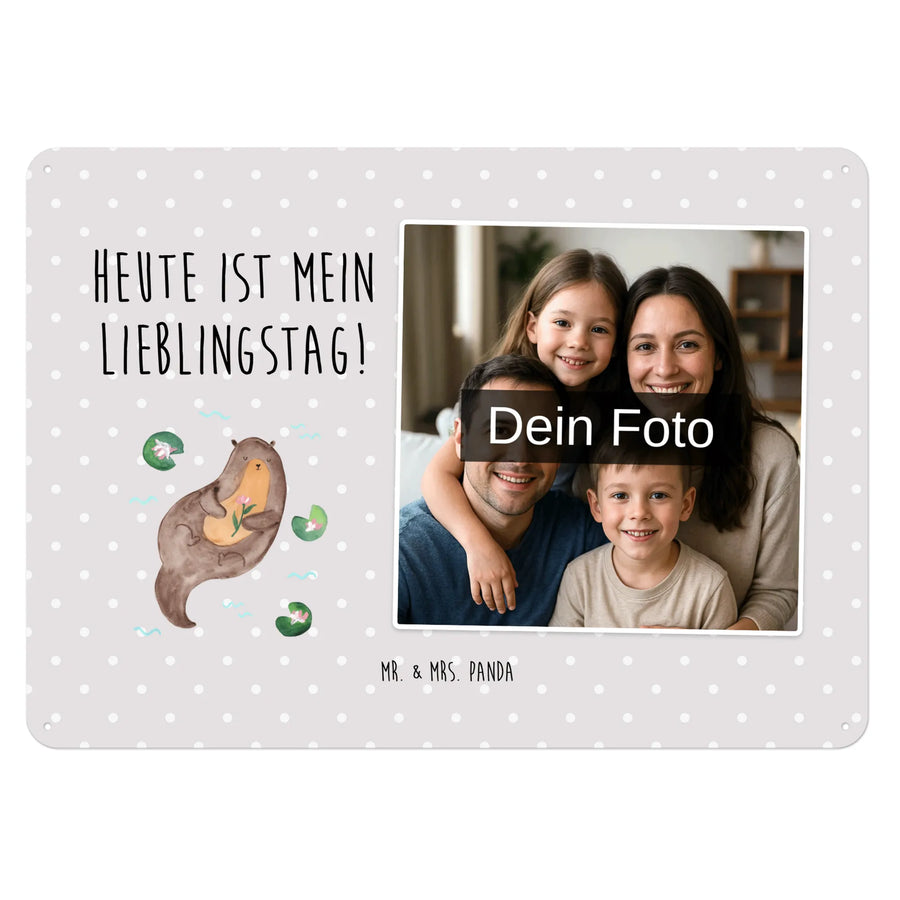 Ein personalisiertes Foto Blechschild von Mr. & Mrs. Panda – edel, freundlich und wunderbar als Geschenk. Unsere Motive und Sprüche verleihen deinem Foto zusätzlichen Charme, gedruckt wird auf hochwertigem Stahlblech ohne Wölbung mit seidenmatter, langlebiger Oberfläche. Maße: 70 mm x 420 mm x 297 mm. Das Schild hat 4 Bohrungen zur Befestigung, sichere umgefaltze Kanten und abgerundete Ecken für ein sauberes Erscheinungsbild. Vor dem Upload deines Wunschfotos: Achte auf hohe Auflösung, einen passenden Bildausschnitt (sieh dir unsere Platzhalter-Vorschau an) und darauf, dass du die Bildrechte besitzt. Perfekt als Türschild oder Wanddeko im Innenbereich, leicht mit einem feuchten Tuch zu reinigen. In verschiedenen Größen erhältlich, sodass du das ideale Format für dein Zuhause findest. Ob als Geschenk für Freunde, Familie oder als persönliche Dekoration – dieses personalisierte Foto Blechschild von Mr. & Mrs. Panda verbindet liebevolle Designs mit hochwertiger Verarbeitung und einfacher Montage. Gestalte dein Unikat und bring ein kleines Stück Panda-Glück in dein Zuhause.