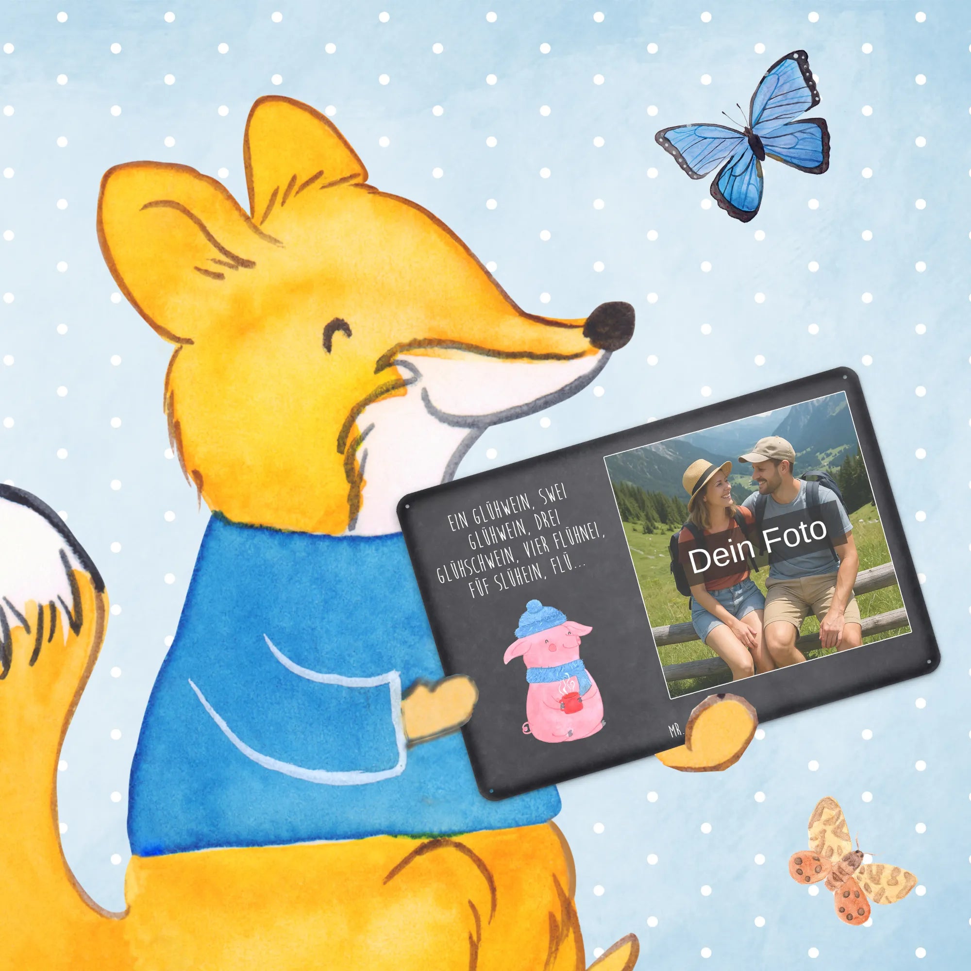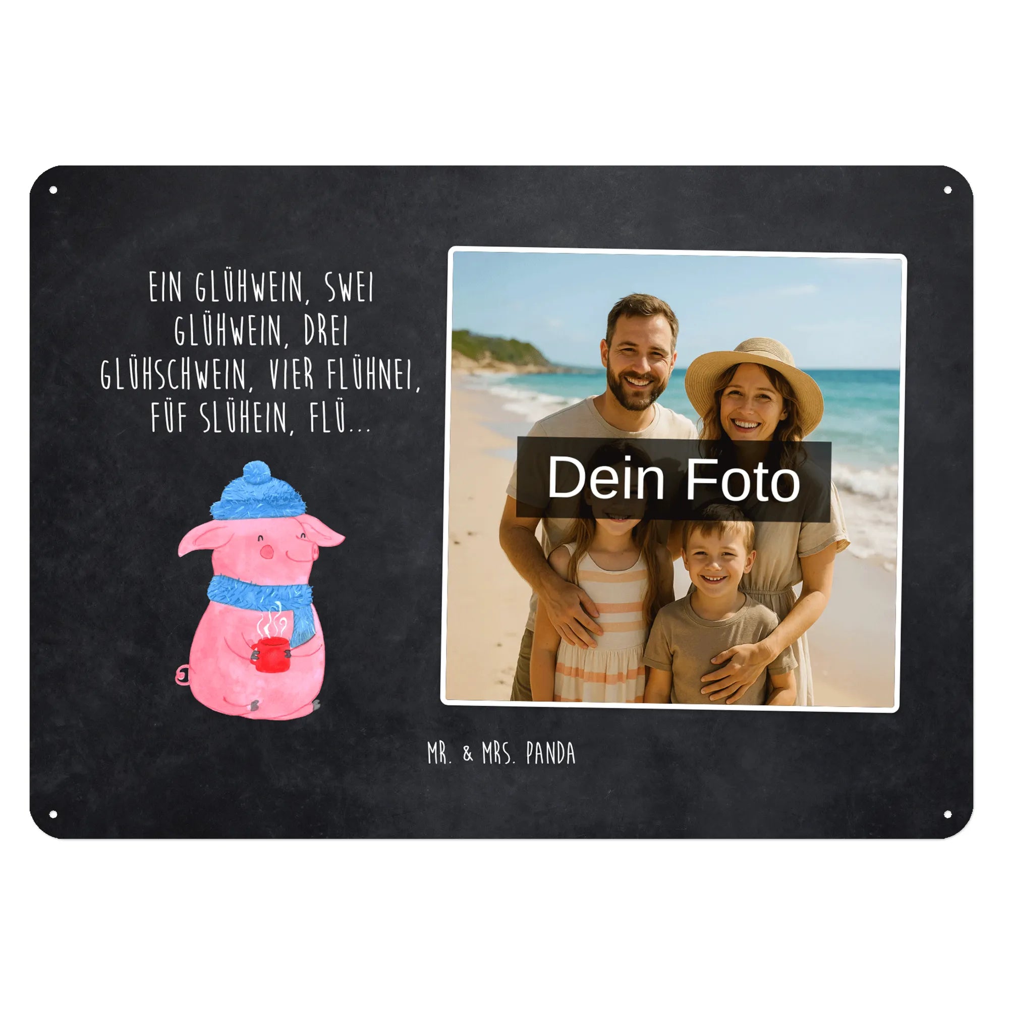 Personalized Photo Metal Sign piggy Mulled wine - DIN A6 - Ice Blue