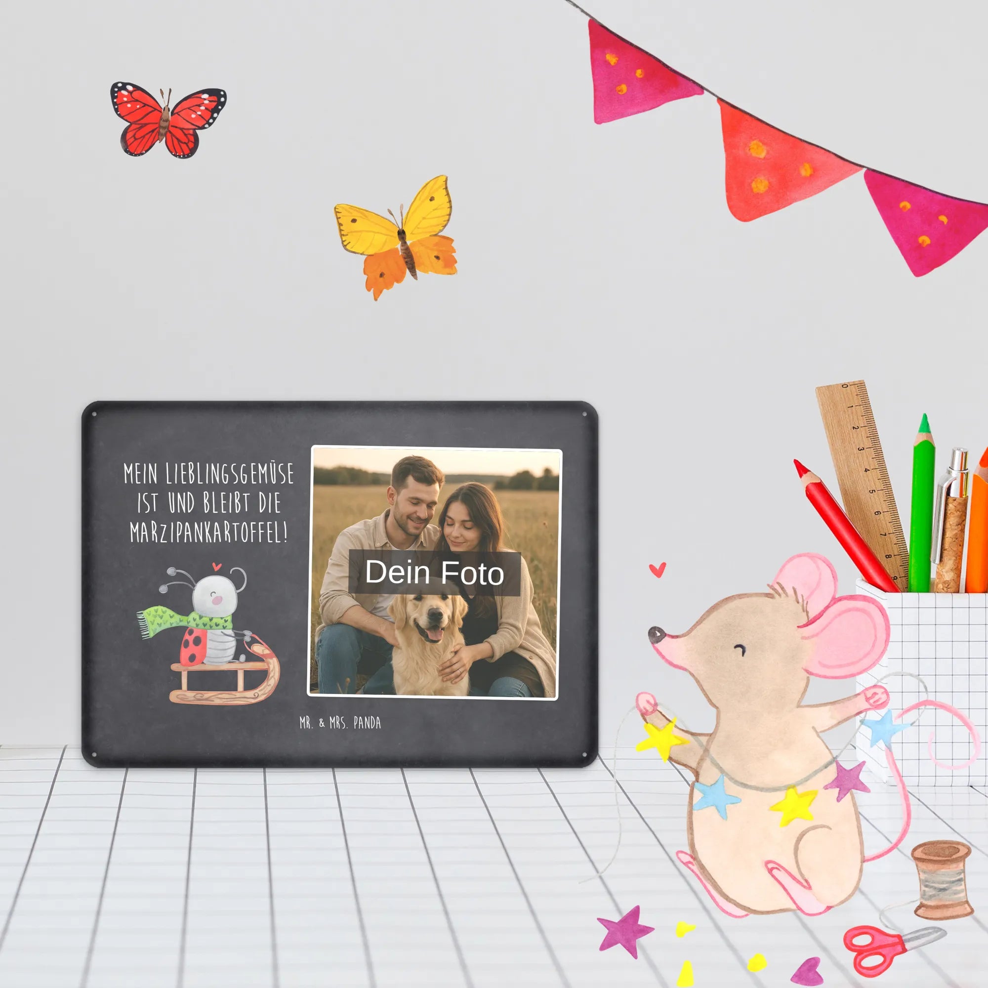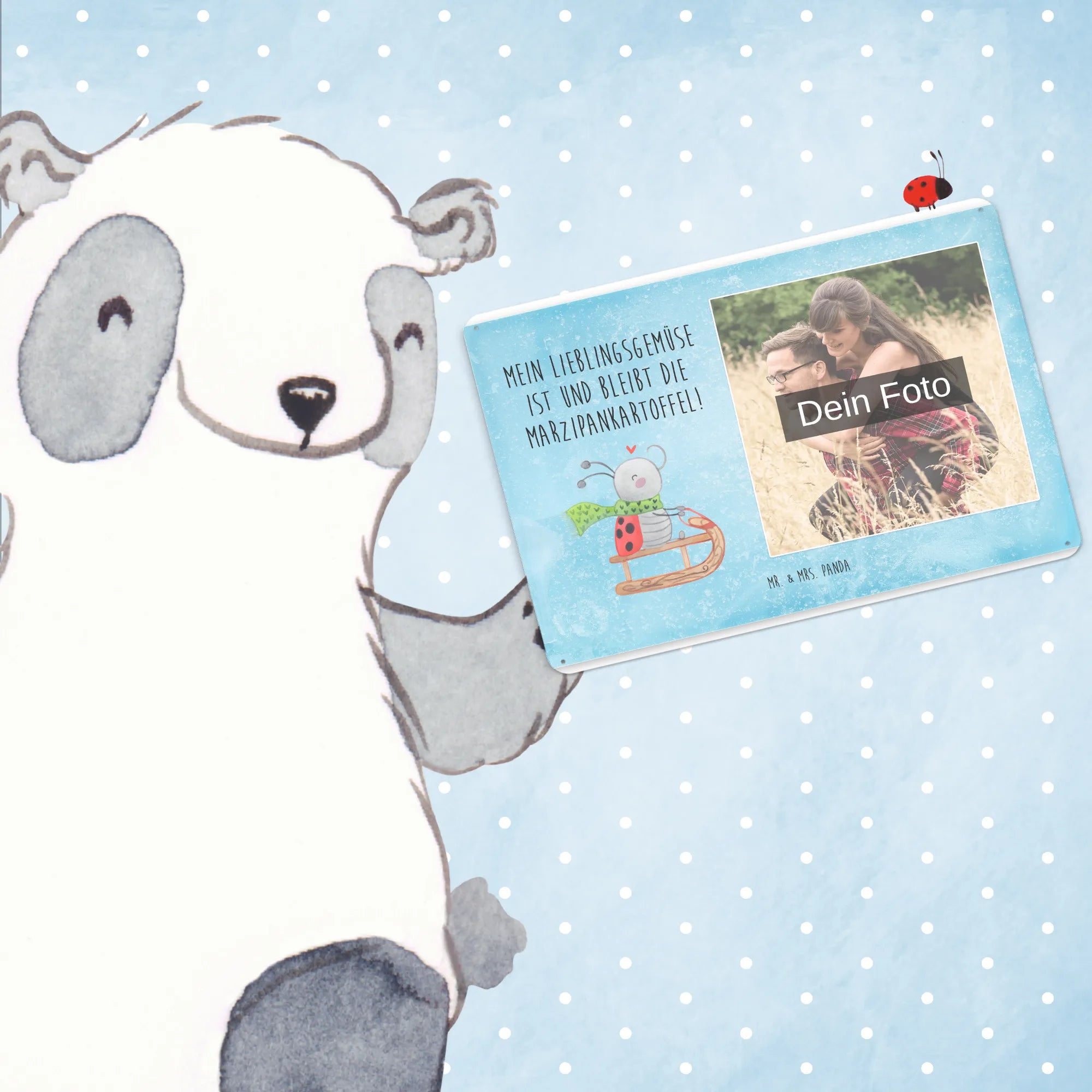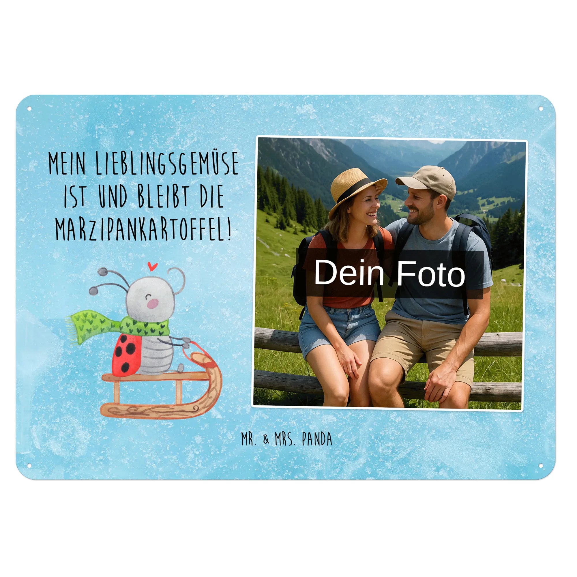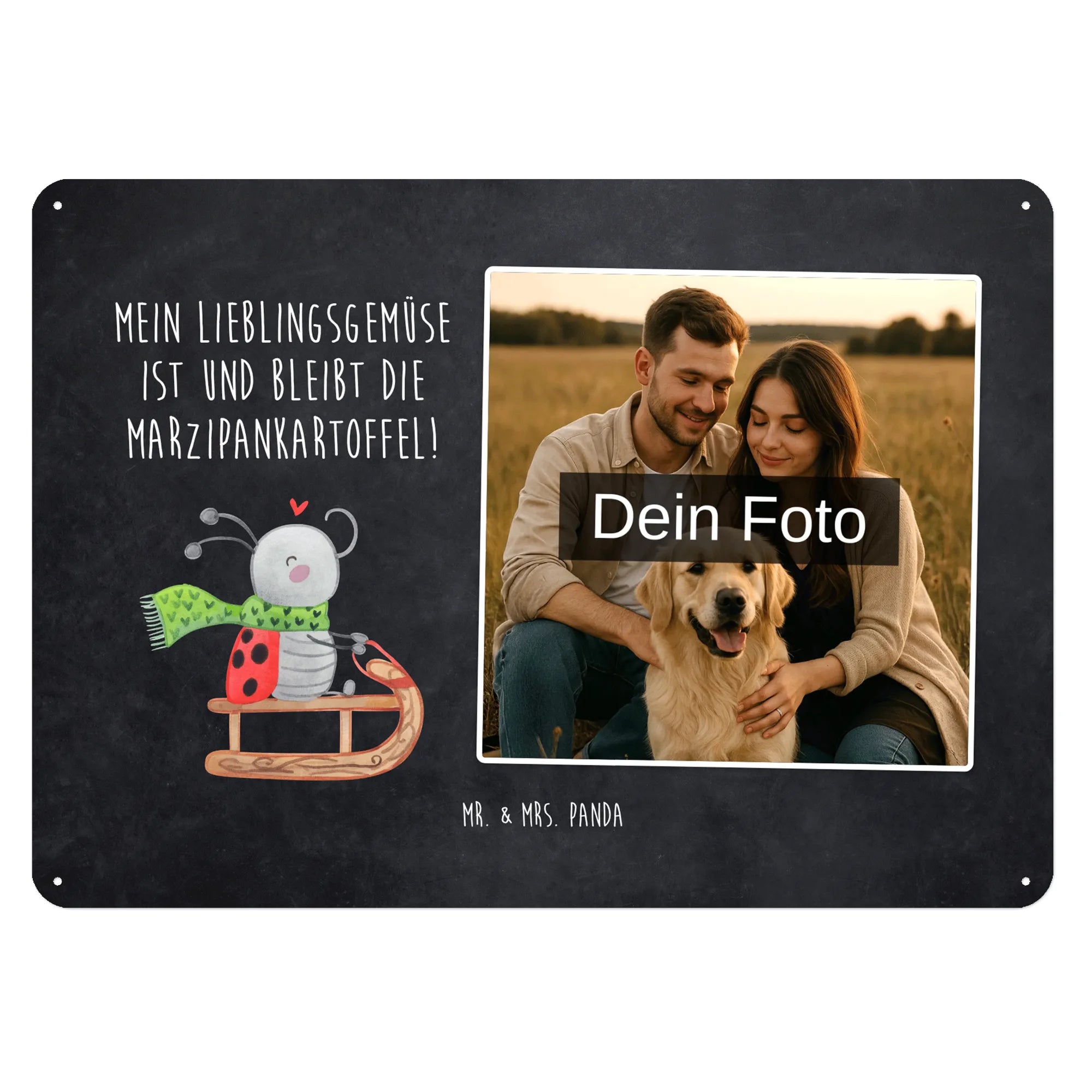 Gestalte jetzt dein einzigartiges Blechschild mit Foto von Mr. & Mrs. Panda – persönlich, edel und sofort zum Aufhängen!