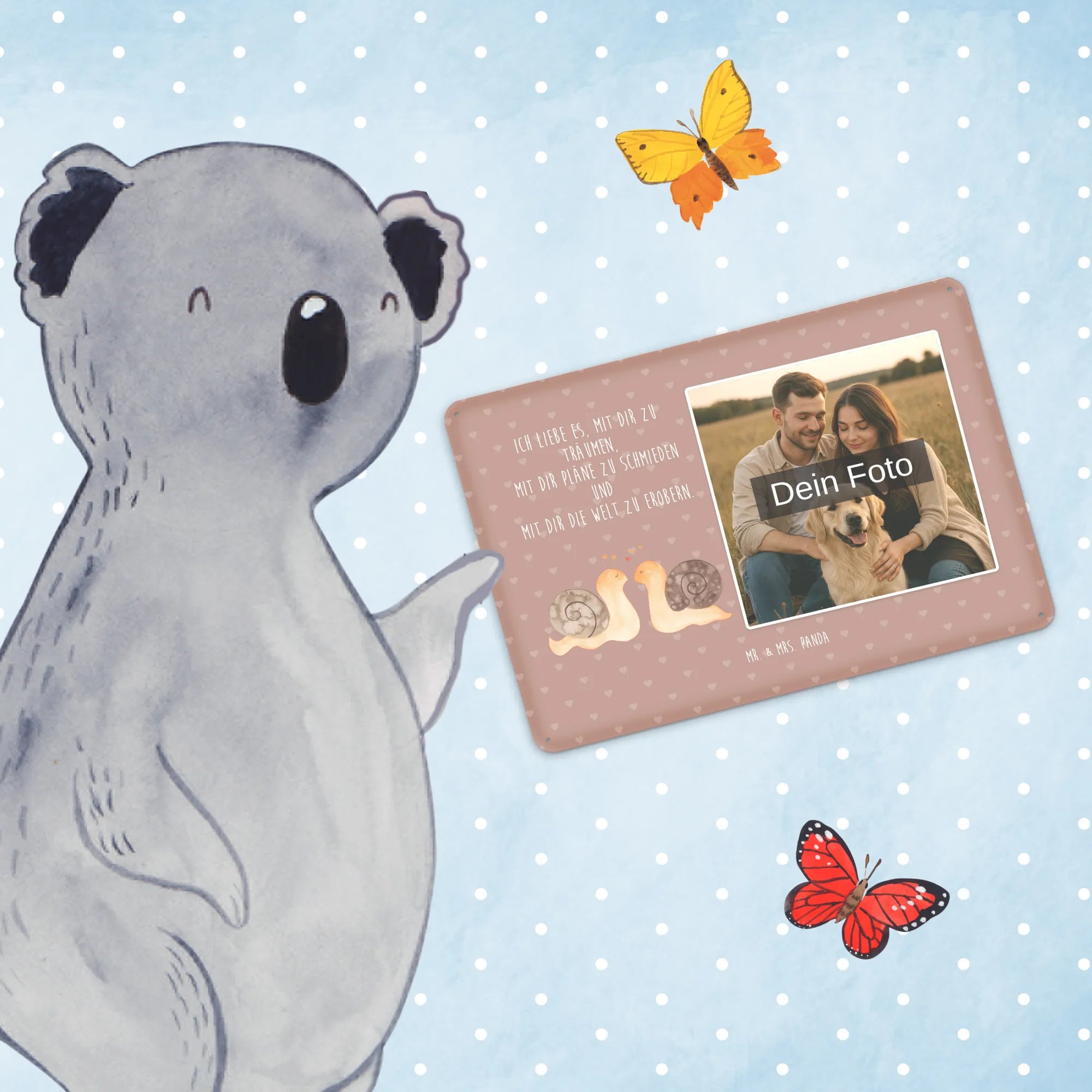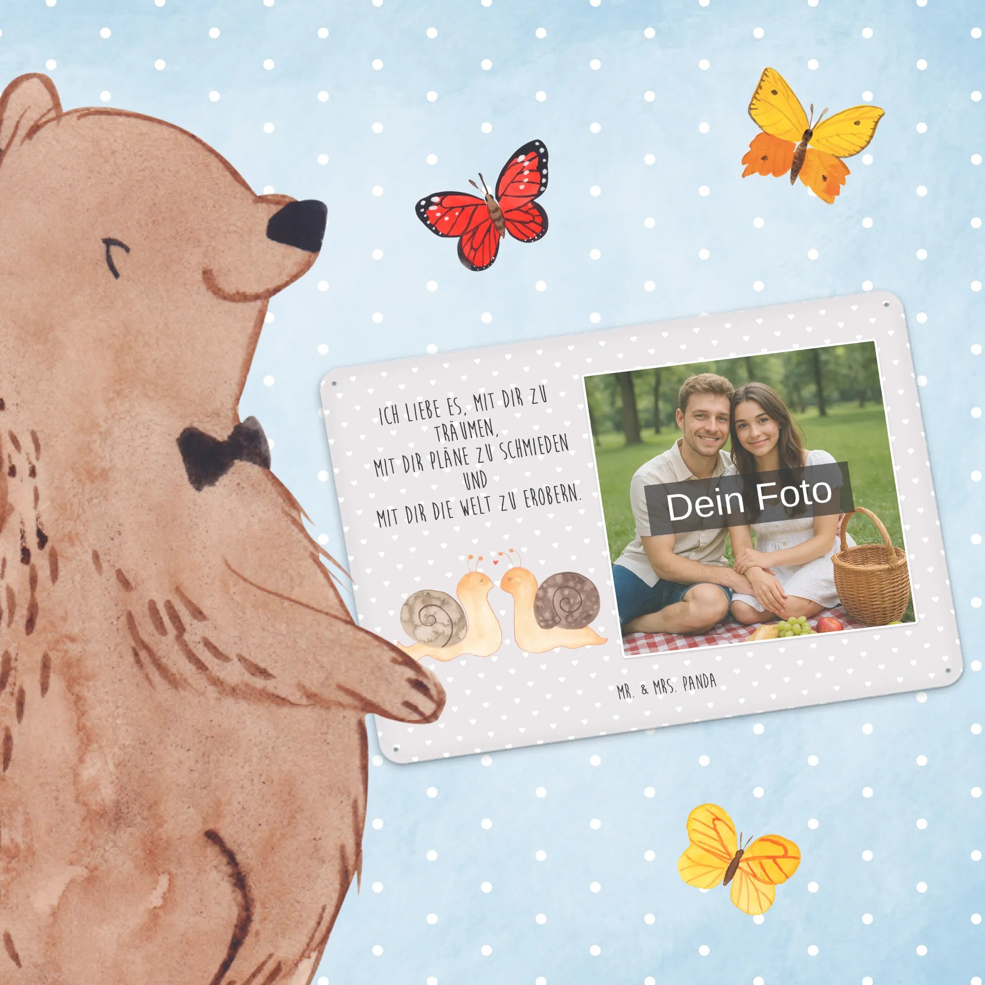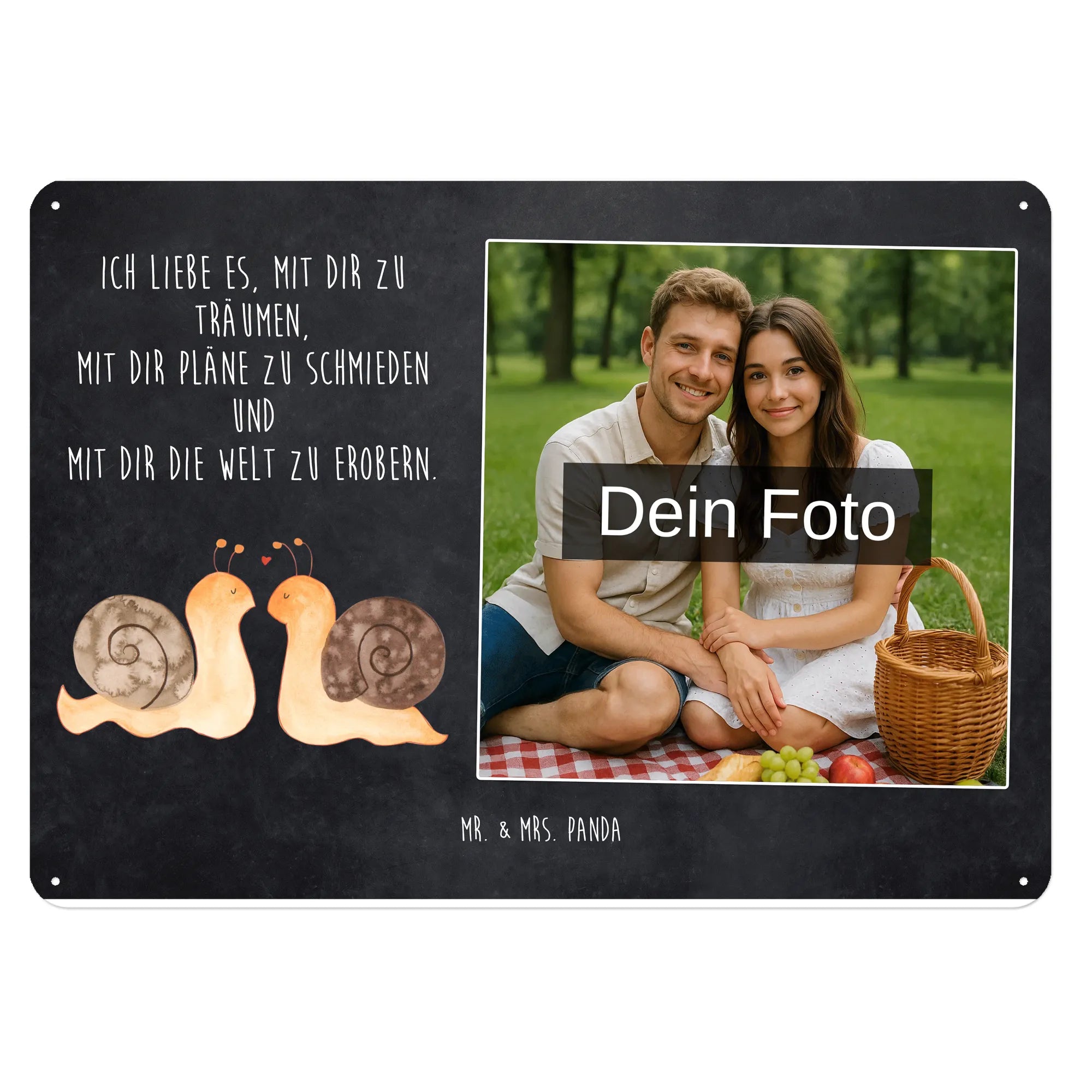 Personalized Photo Metal Sign Snails in love - DIN A6 - Pastel Gray