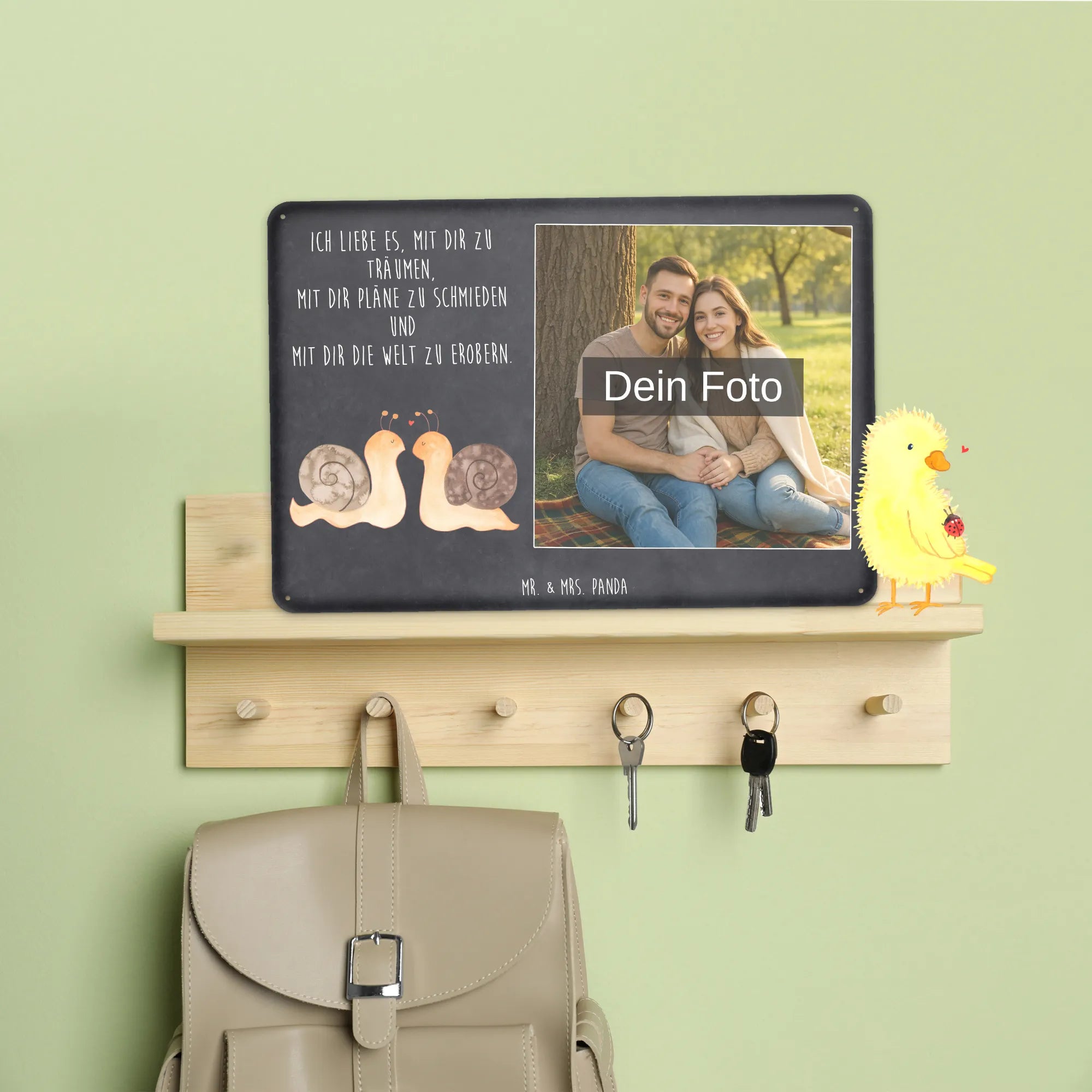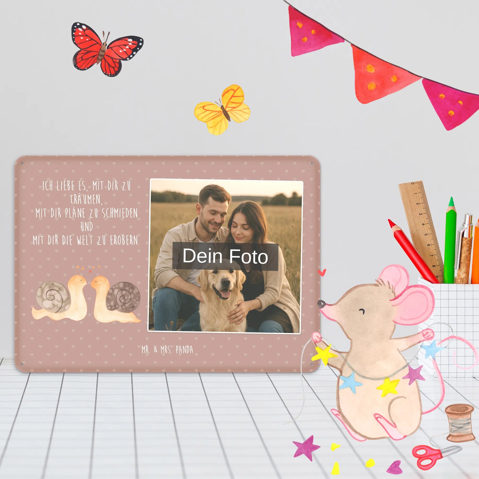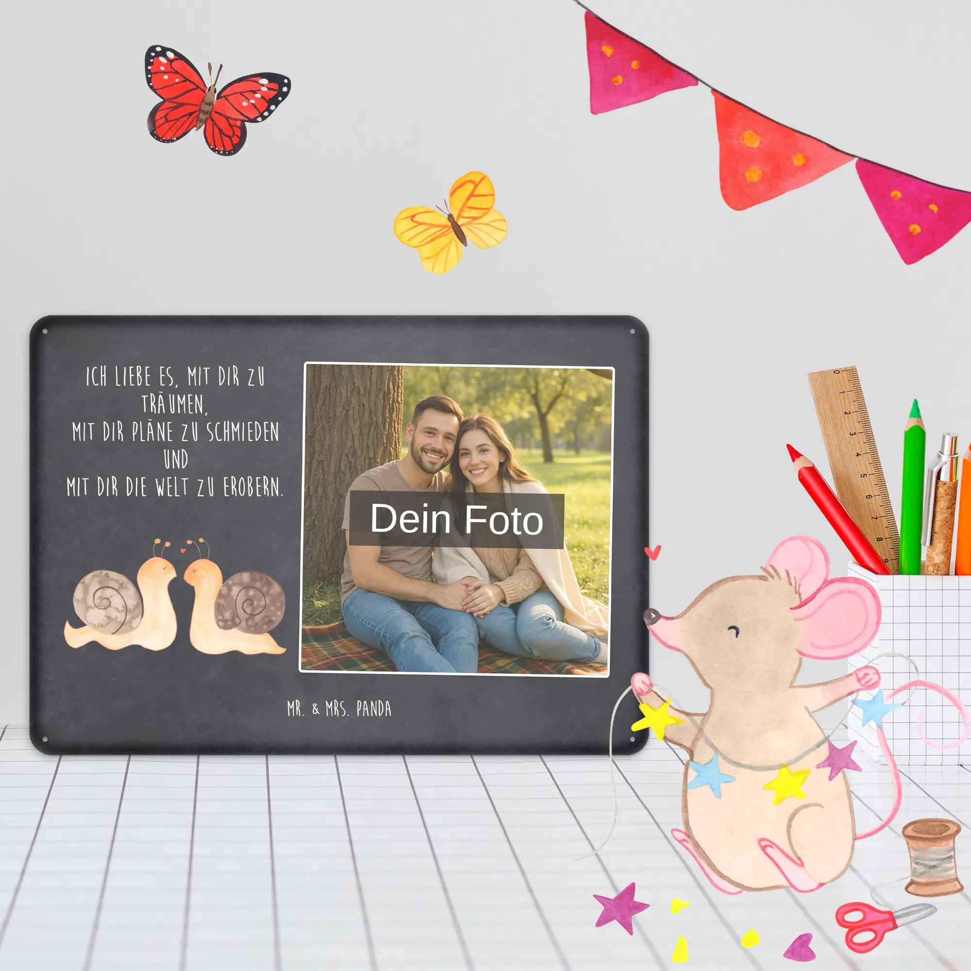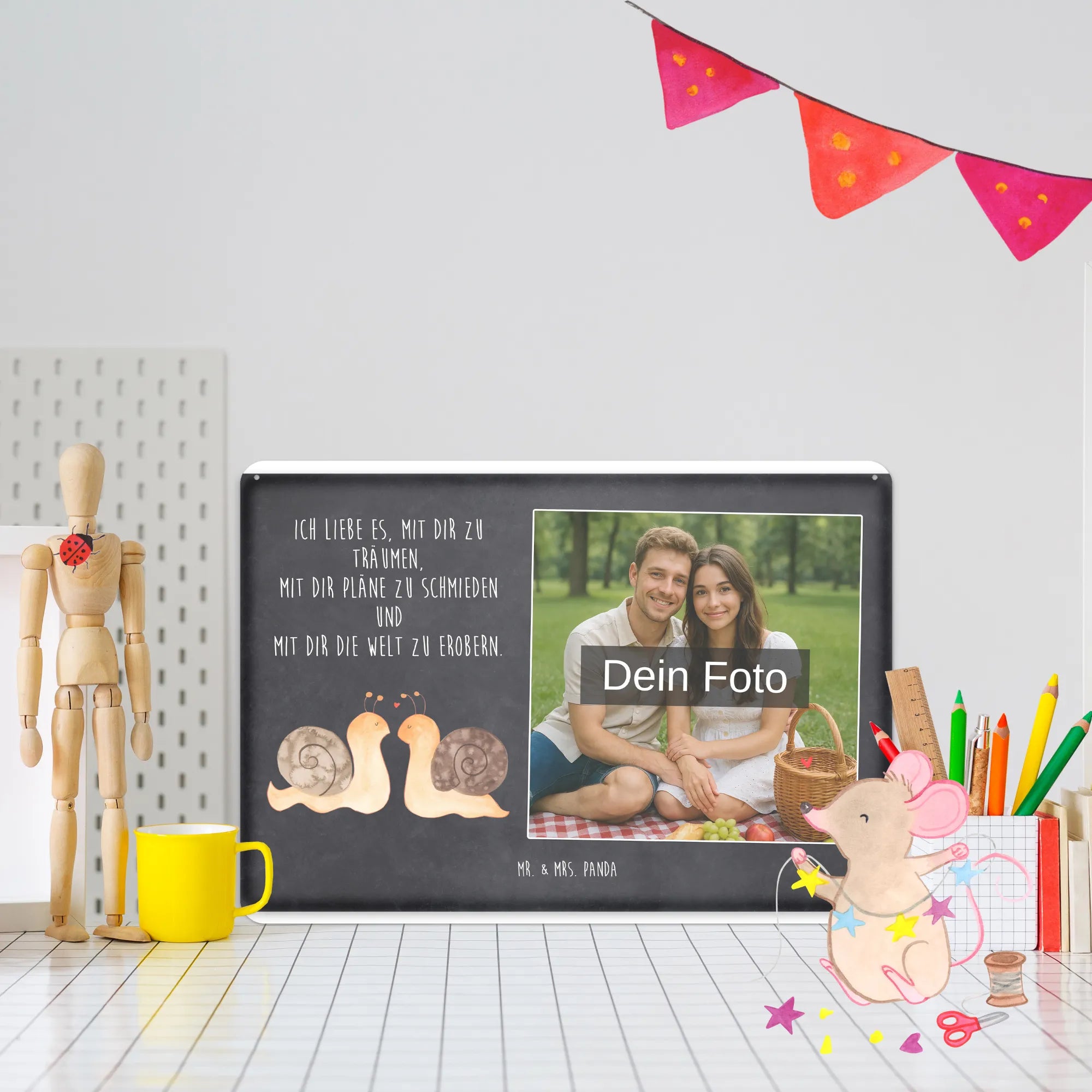 Personalized Photo Metal Sign Snails in love - DIN A6 - Pastel Gray