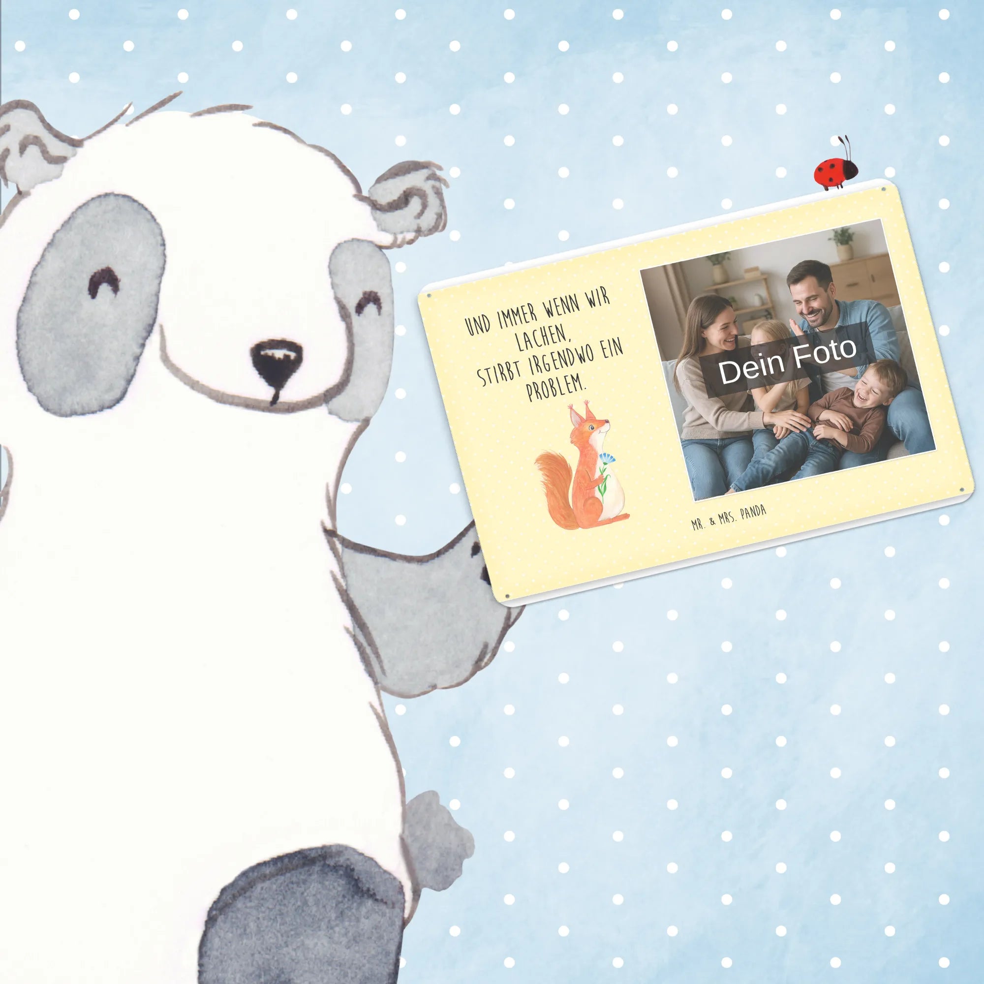 Personalized Photo Metal Sign Squirrel flower - DIN A6 - Pastel Yellow