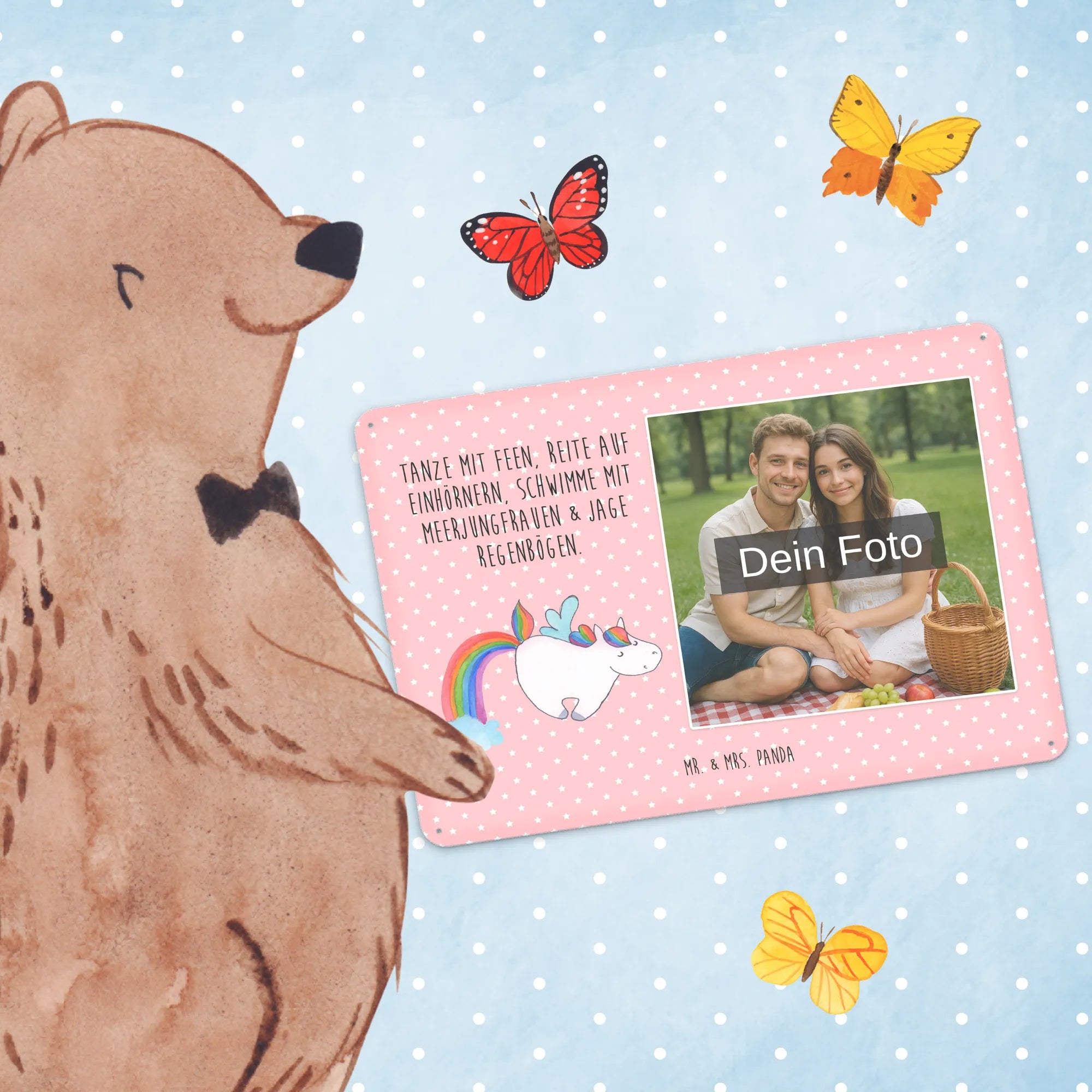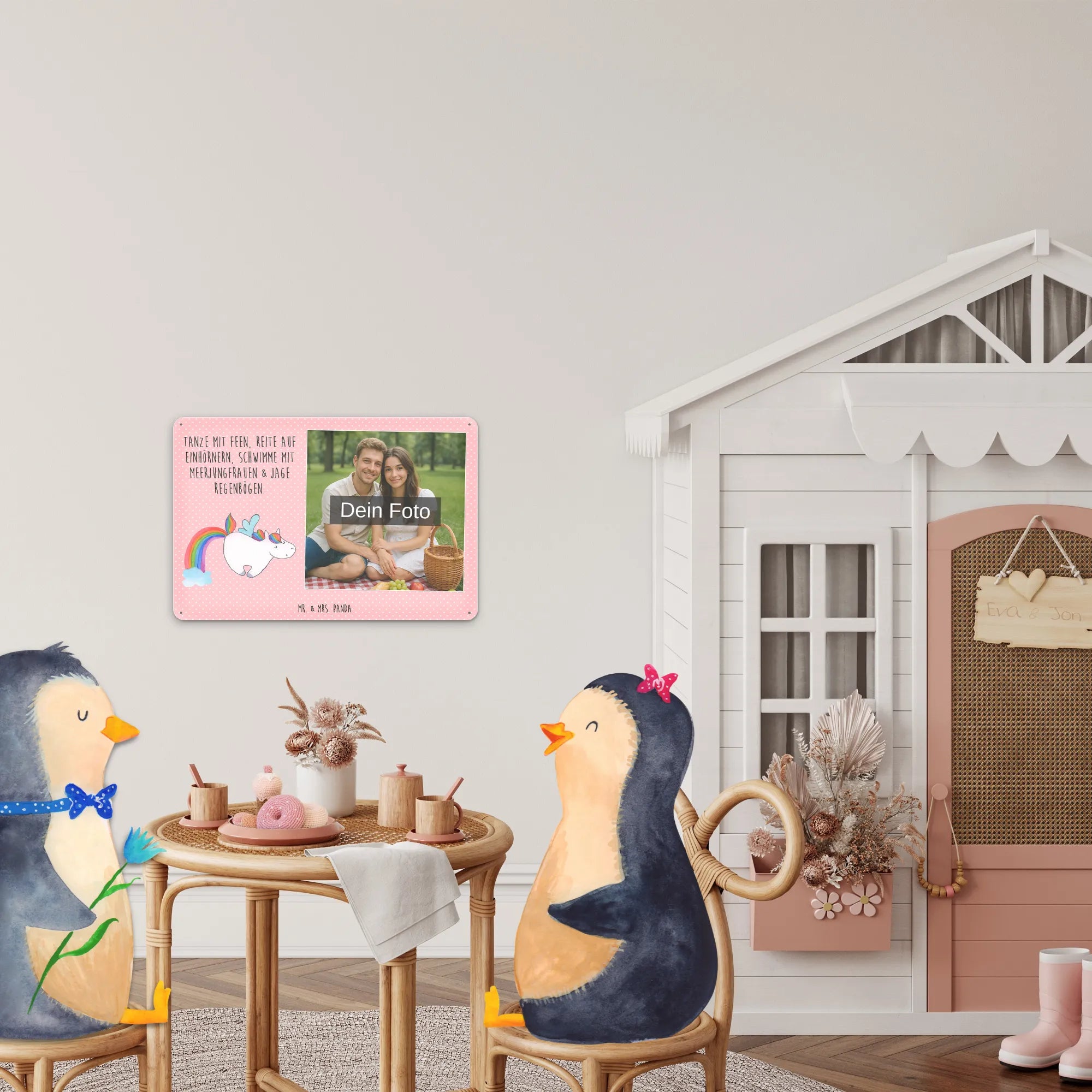 Verleihe deinen Wänden Persönlichkeit: Bestelle jetzt dein Foto Blechschild personalisiert mit Mr. & Mrs. Panda – einfach Foto hochladen und Freude schenken!