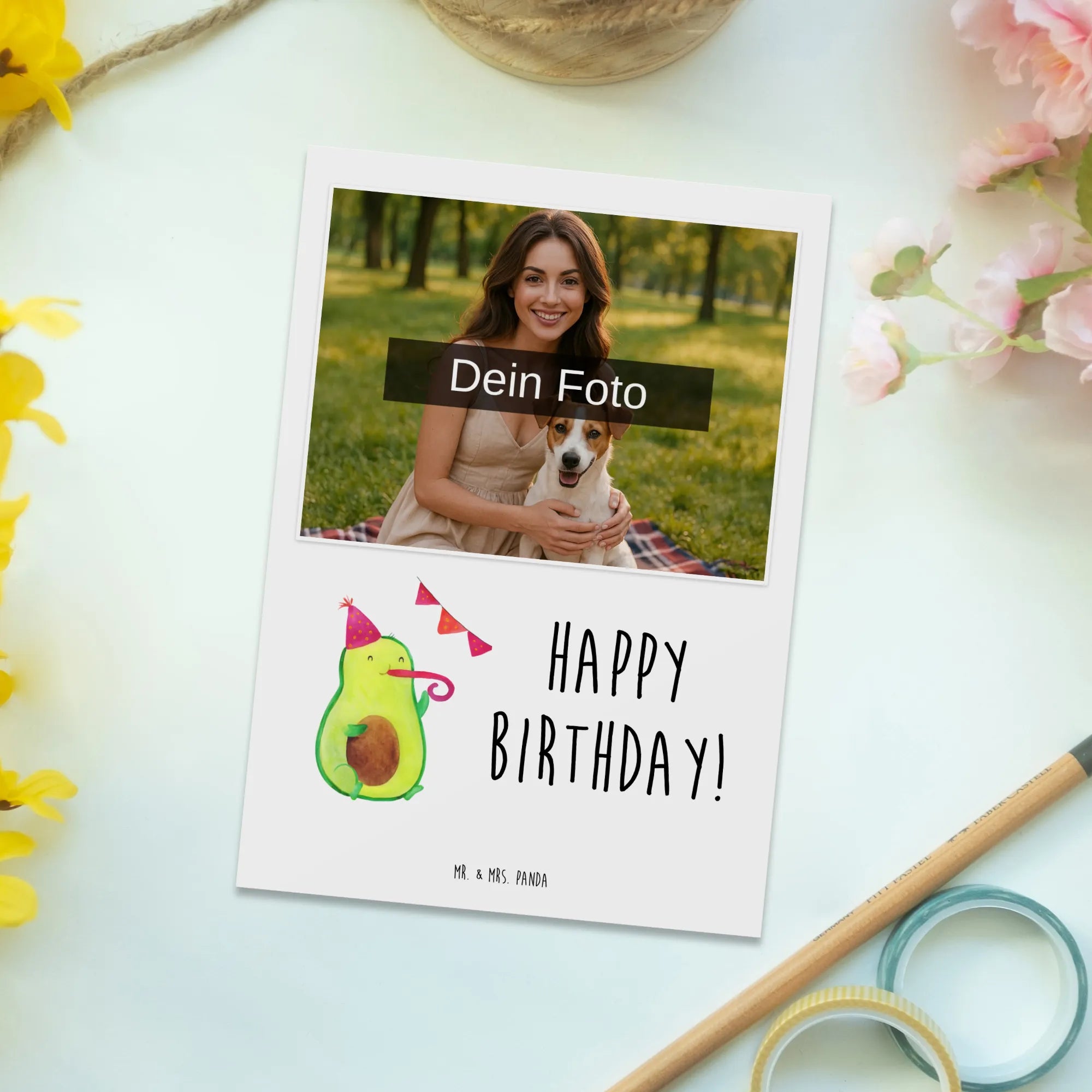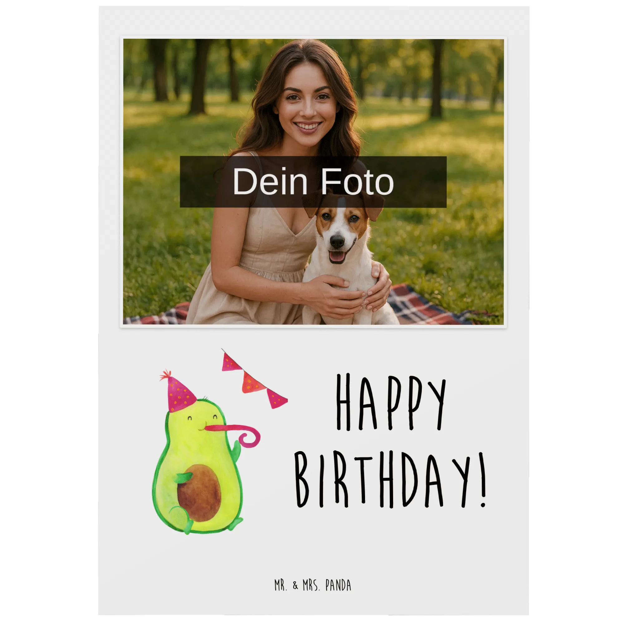 Personalized Photo Postcard avocado Birthday – Mr. & Mrs. Panda