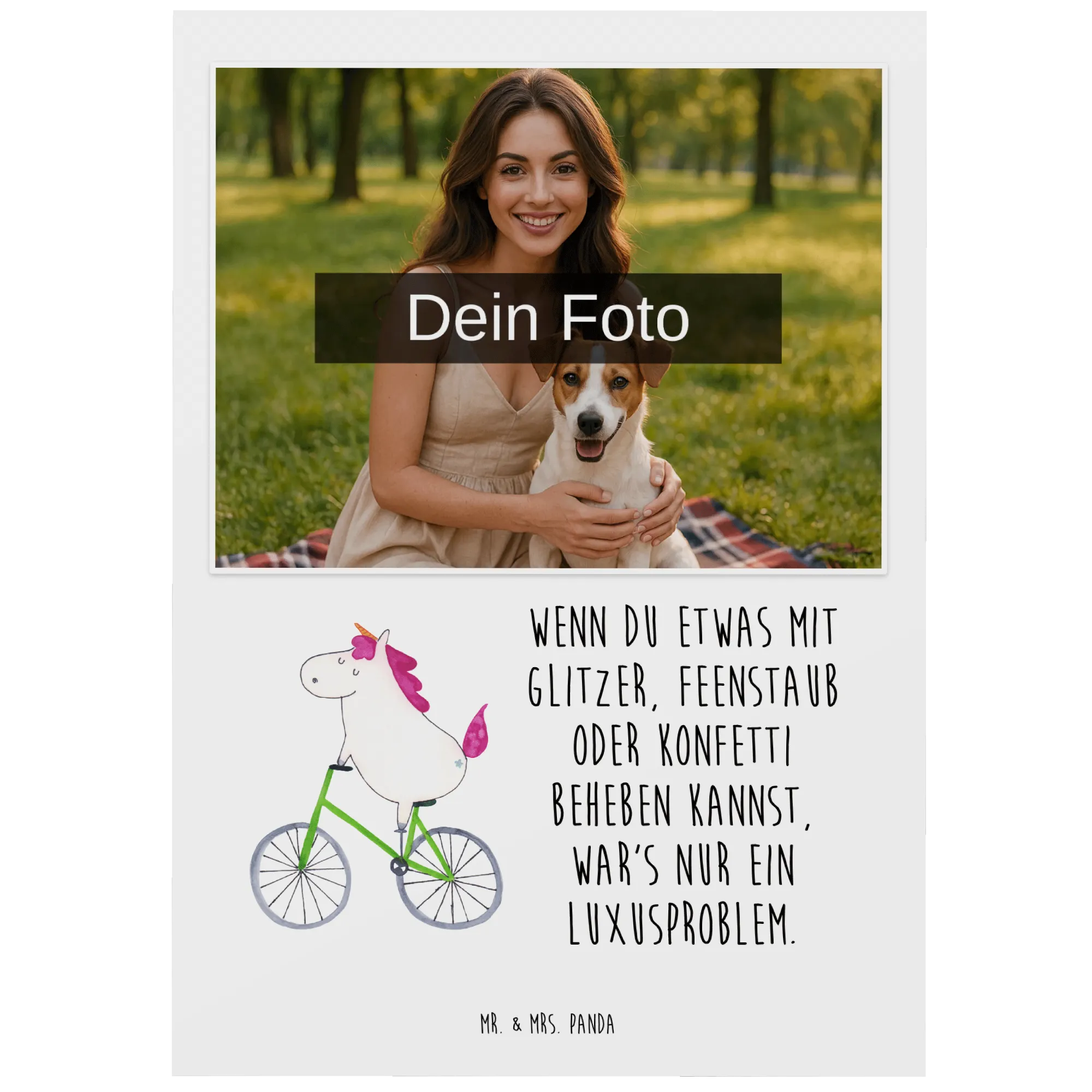 Personalized Photo Postcard unicorn cyclist Personalisierte Foto Postkarte, Einhorn, Einhörner, Einhorn Deko, Unicorn, Radfahren, Radfahrer, Rad, Bike, Feenstaub, Konfetti, Luxusproblem, Kummer, Liebeskummer