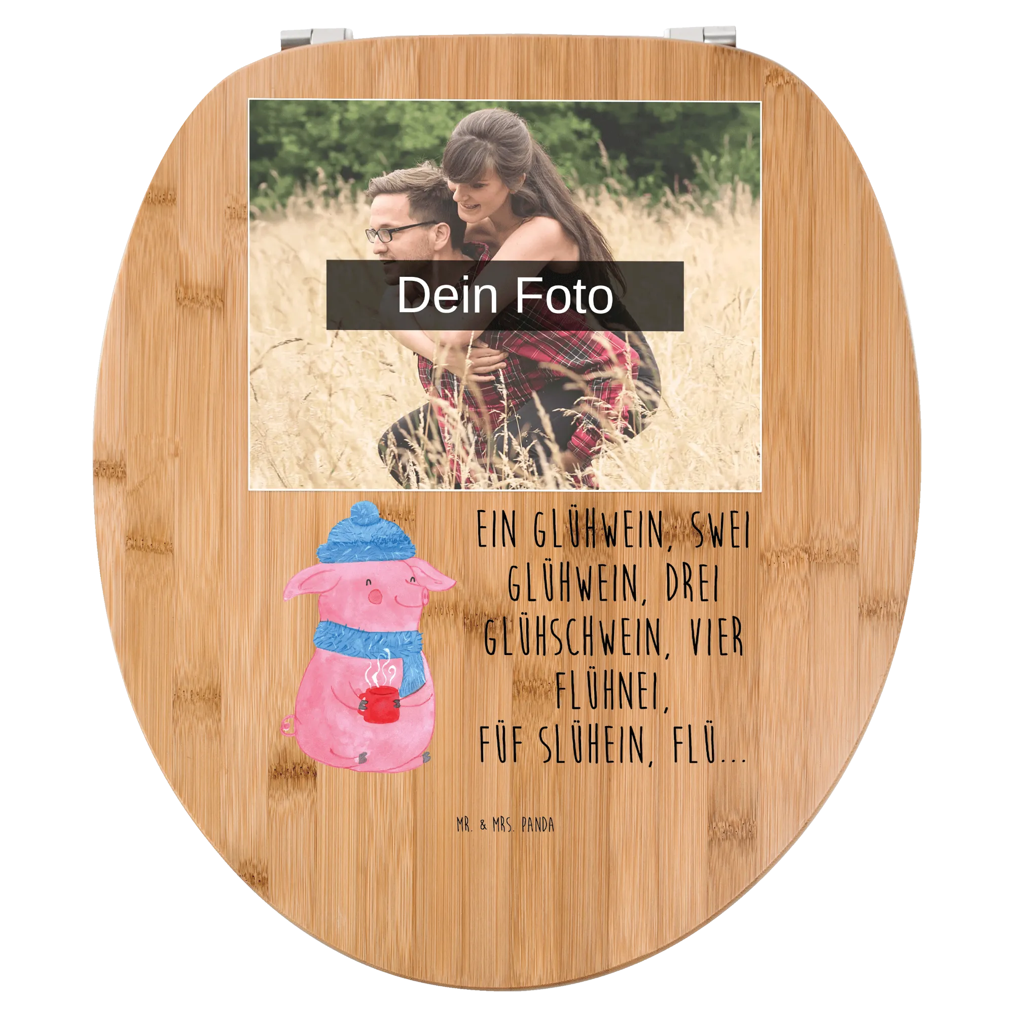 Personalized Photo Toilet Seat Motif piggy Mulled wine - Bamboo